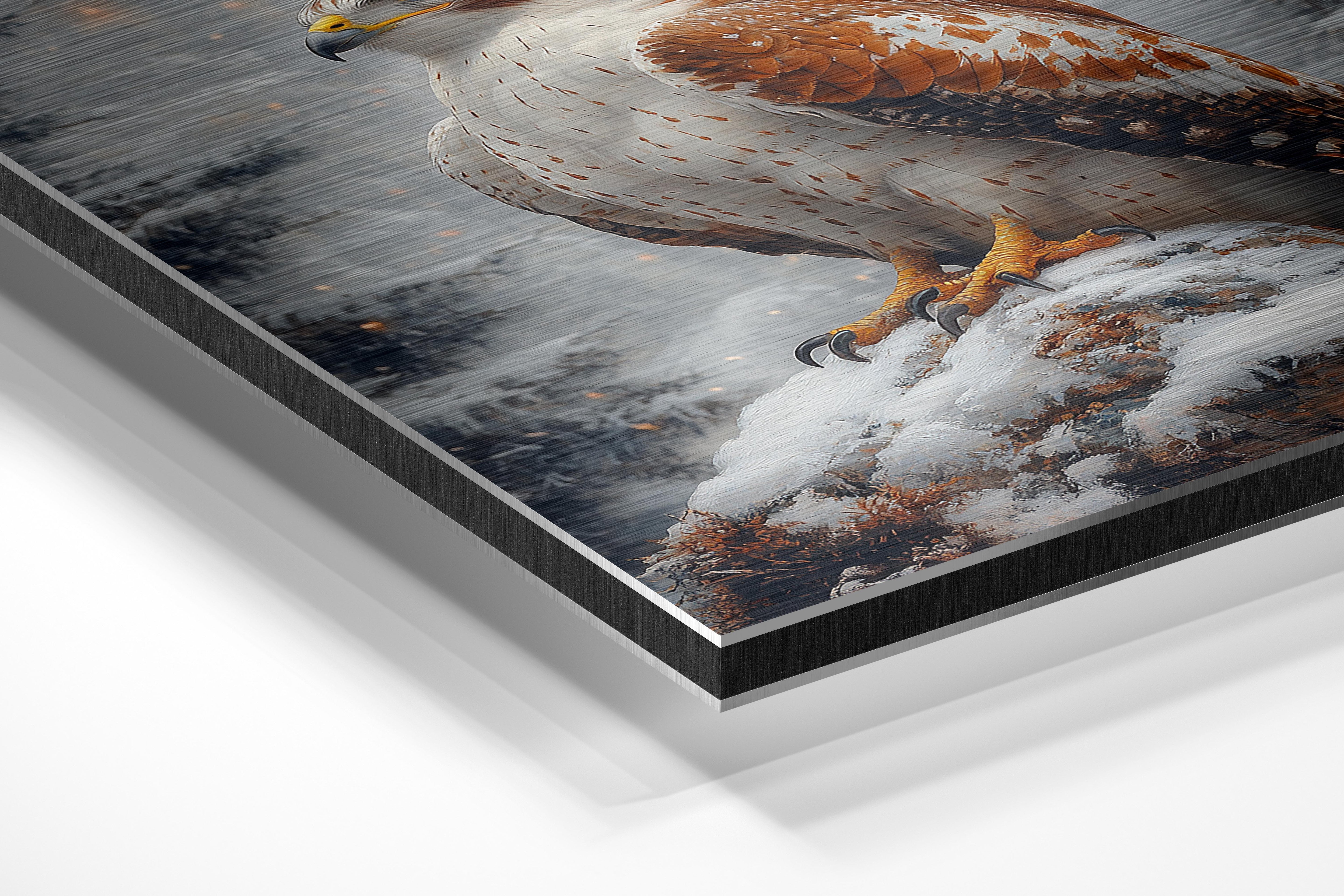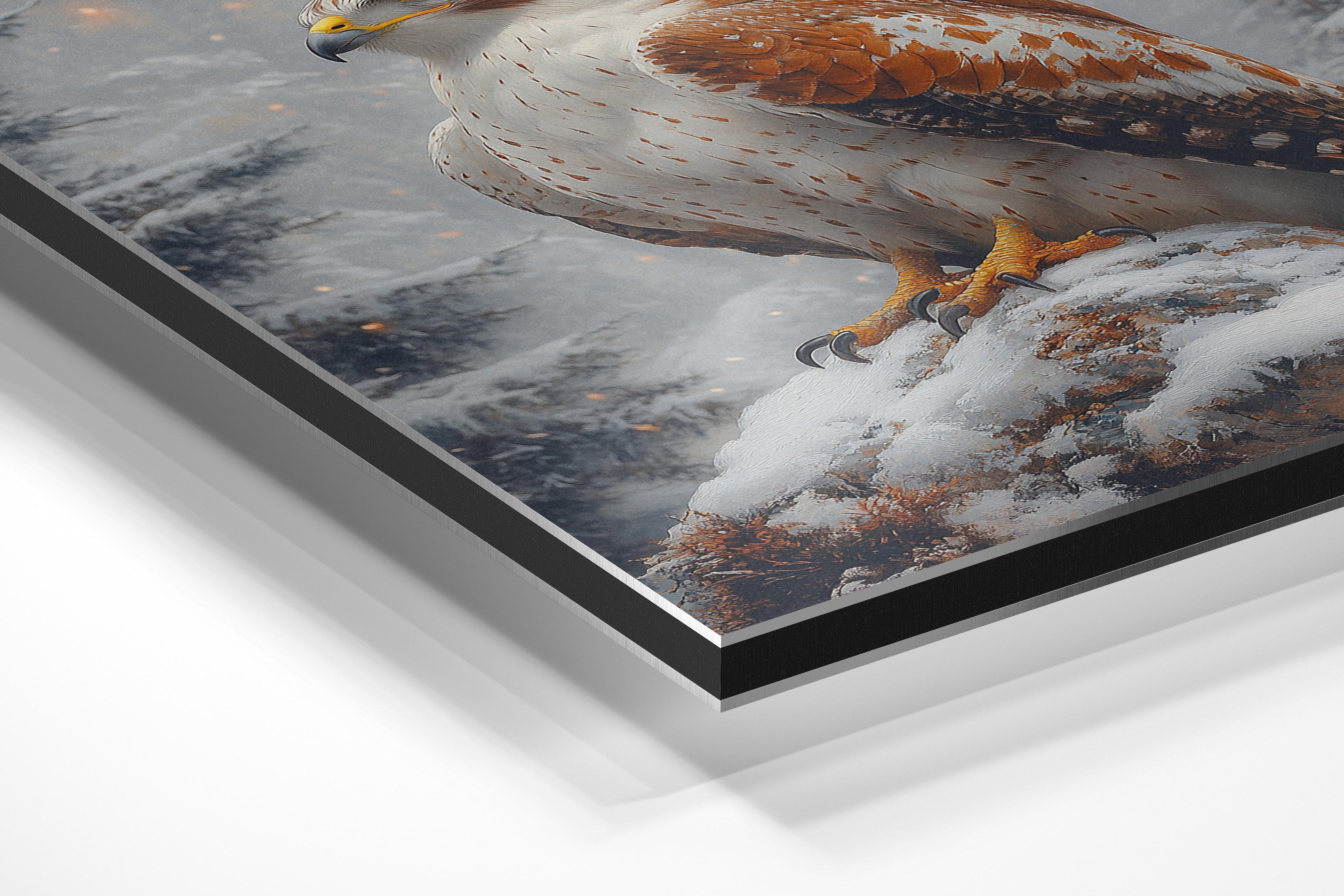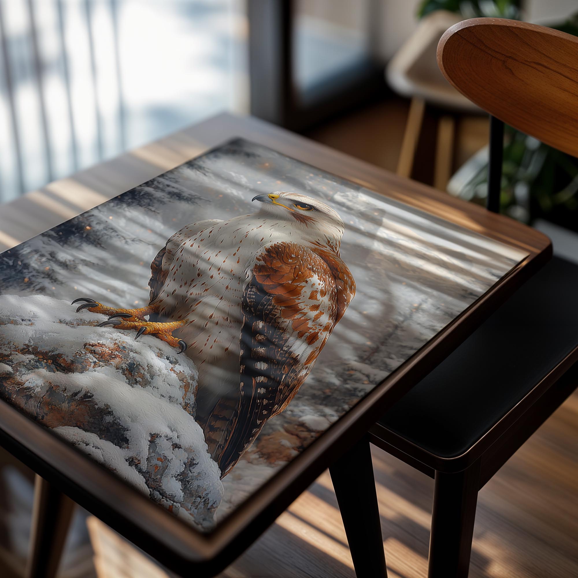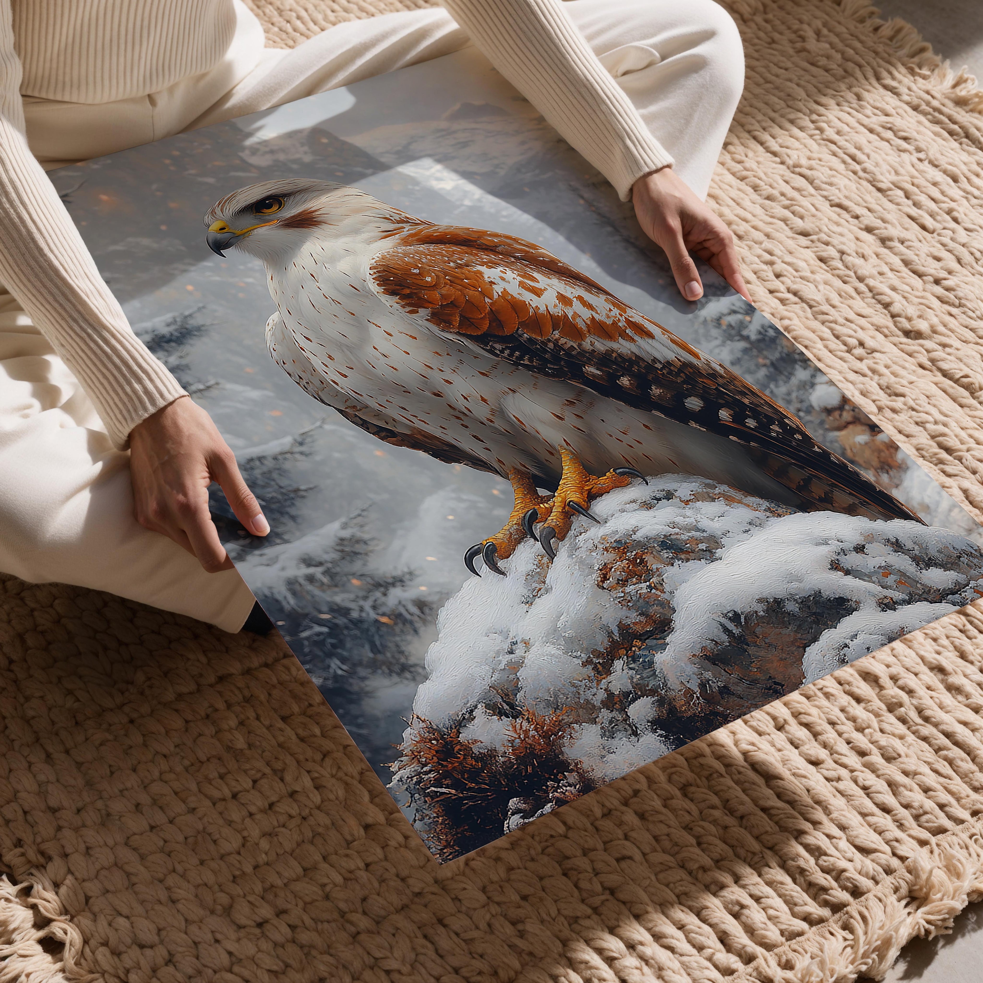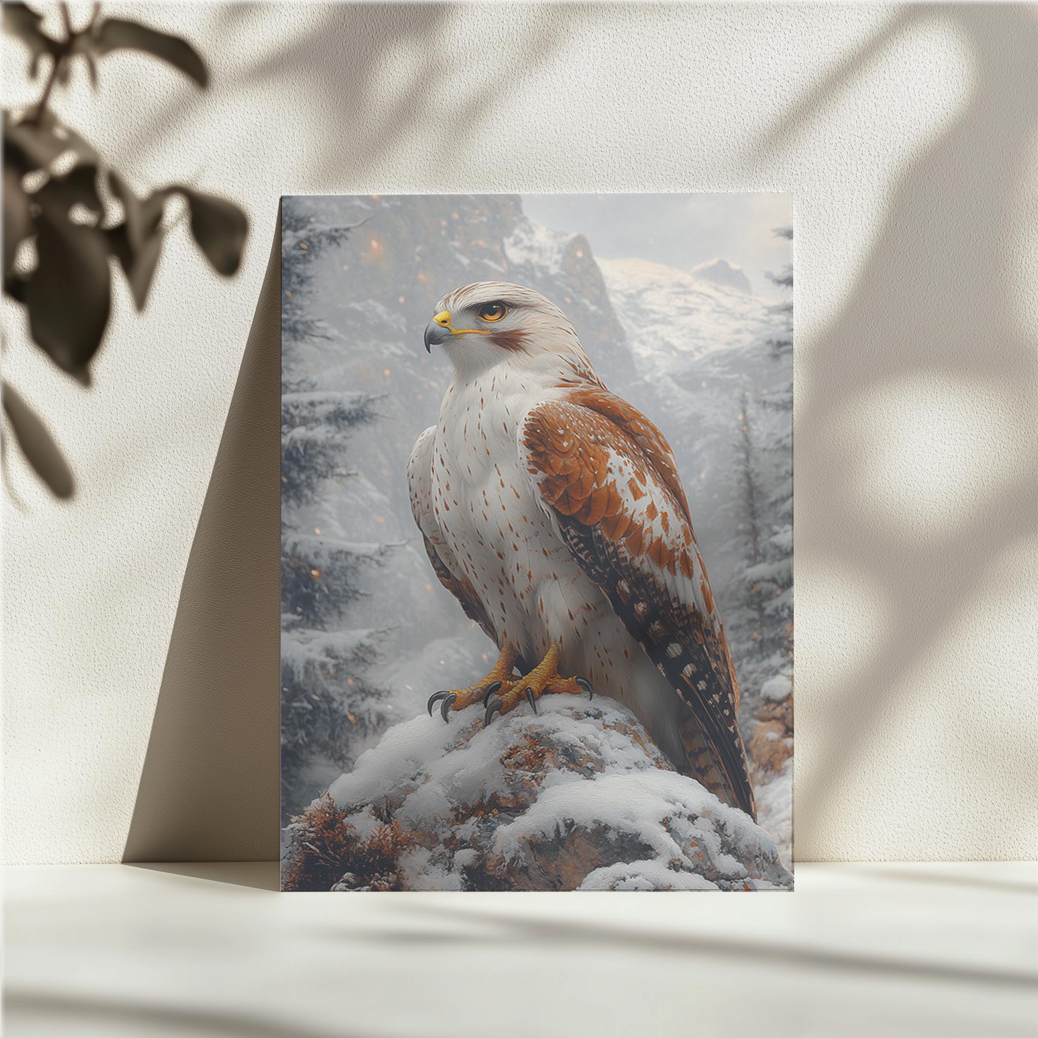 A striking image of a hawk in a snowy wilderness, this piece showcases the bird's adaptability and grace. The combination of the hawk's detailed plumage and the serene, snow-covered background creates a harmonious balance of strength and tranquility. Perfect for nature enthusiasts, this artwork evokes a sense of solitude and beauty. Ideal for creating a calming atmosphere, it serves as a reminder of the resilience and elegance found in the natural world.