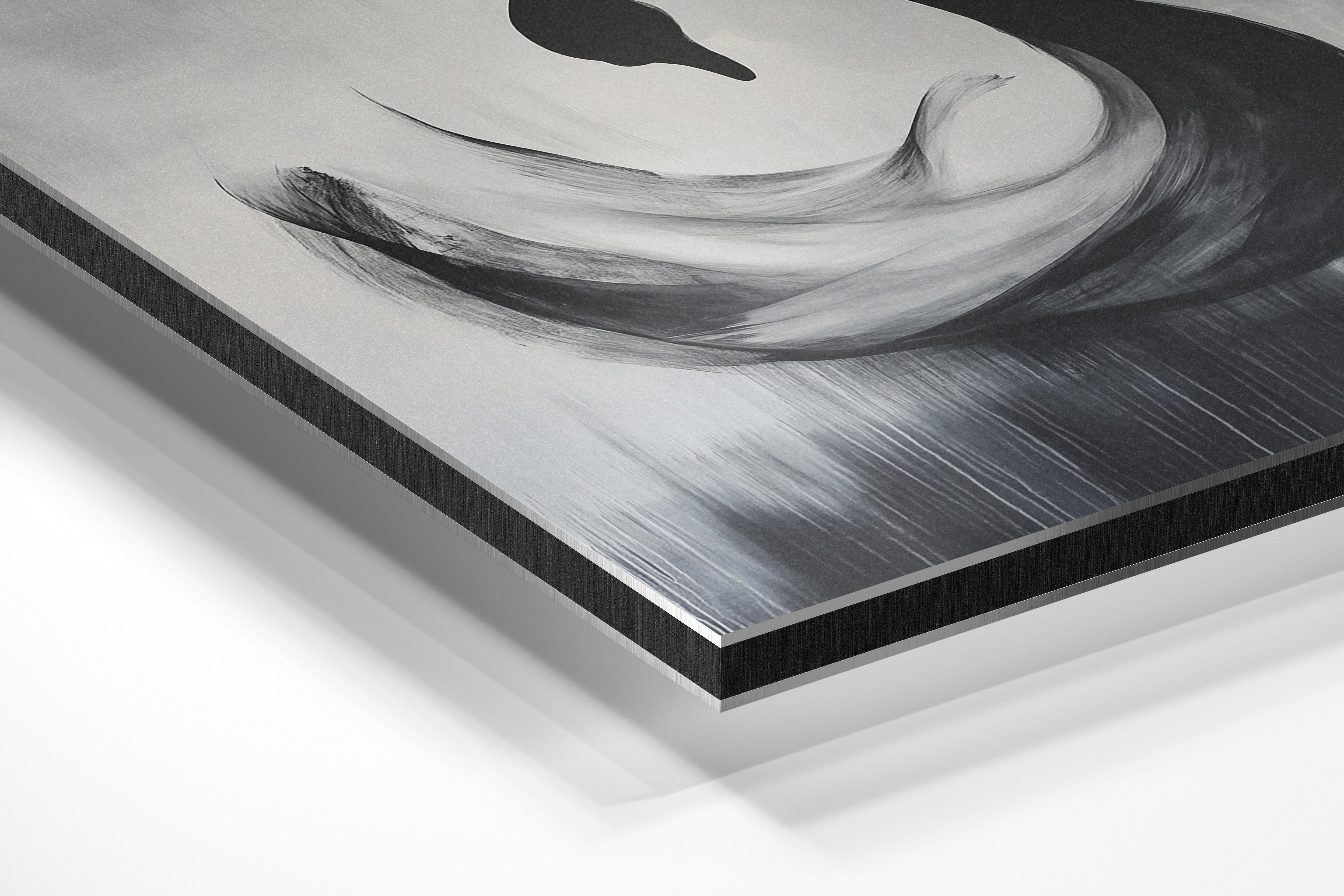 - Brushed Aluminum, on the other hand, features a raw metallic texture with visible brush strokes. Whites and highlights in your image let the silver surface show through, adding a dramatic, shimmering effect. Ideal for black-and-white images, minimalist designs, or abstract art, it creates a bold, industrial vibe with a modern edge.