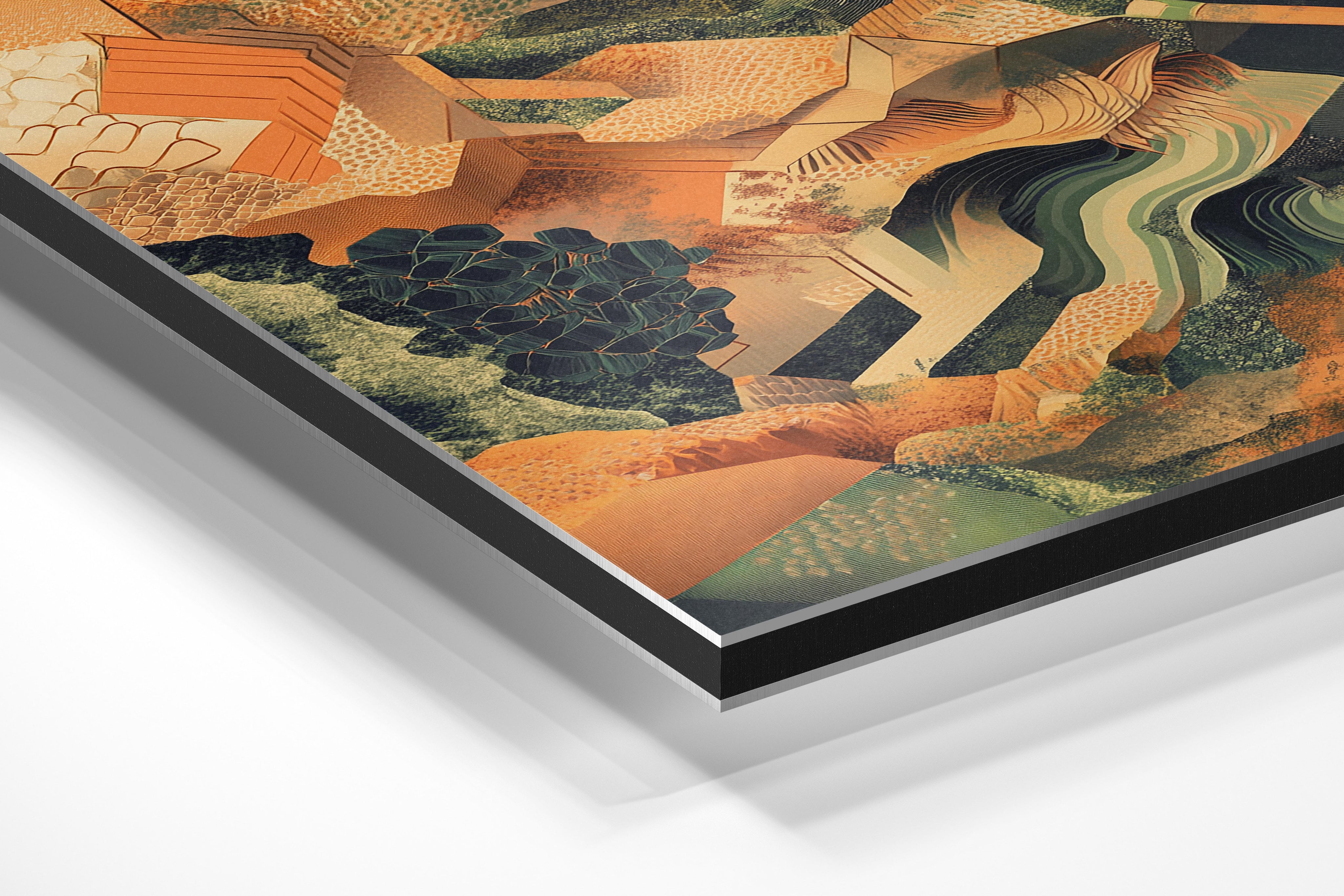 This textured abstract artwork combines warm and earthy tones with structured geometric patterns, evoking an impression of rugged landscapes and shifting terrains. The mix of organic forms and architectural elements creates an intriguing visual contrast, making it suitable for modern or rustic interiors. The play of depth and layered compositions gives the impression of movement within a still image. Perfect for an art gallery, a cozy reading nook, or a space that embraces earthy, organic aesthetics, this artwork balances complexity and harmony in an engaging way.