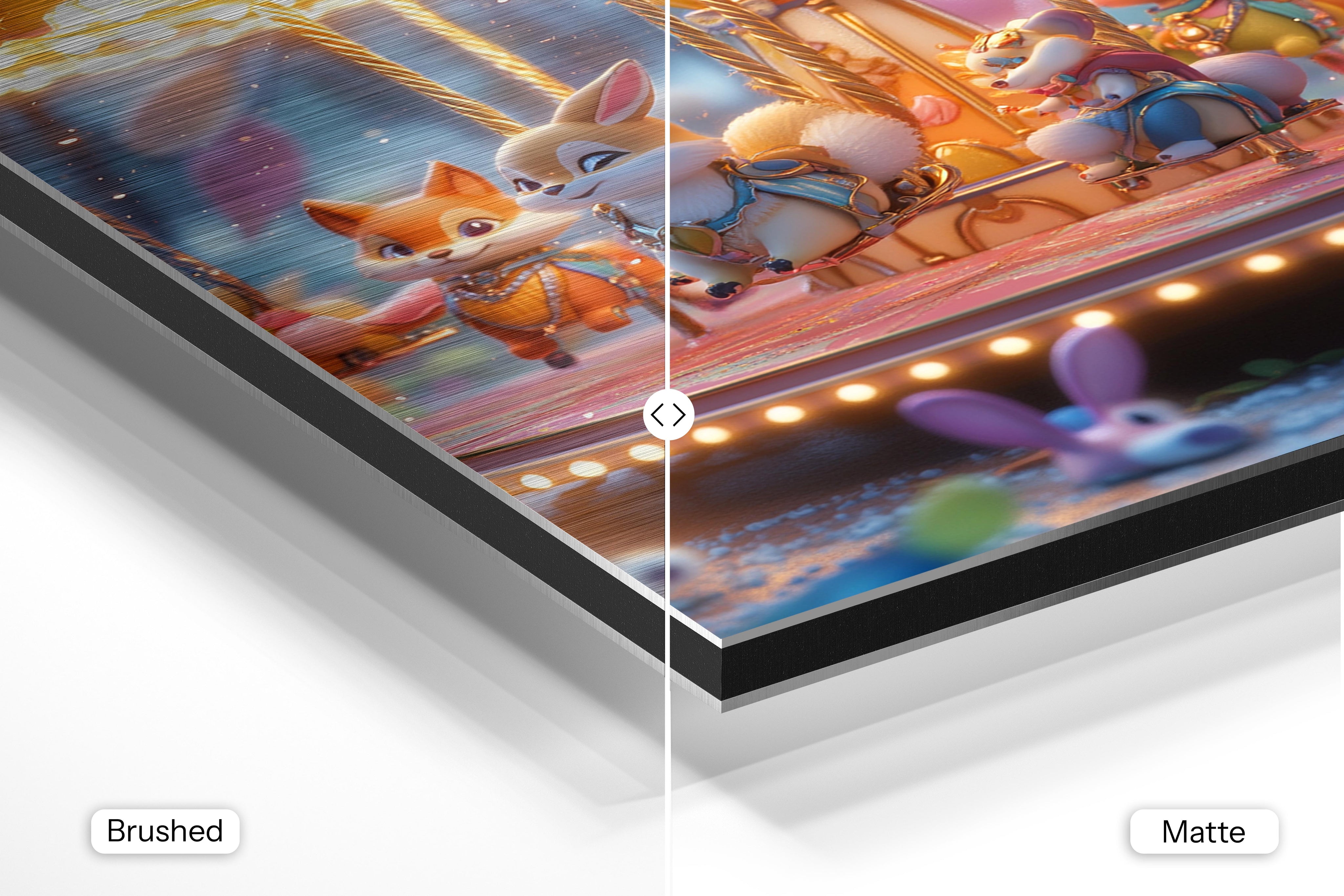 - Matte Aluminum offers a smooth, bright white surface that delivers crisp details and vibrant, true-to-life colors. With its non-reflective finish and subtle silky sheen, it’s perfect for photography, portraits, and colorful artwork—bringing a clean, polished look to any interior.