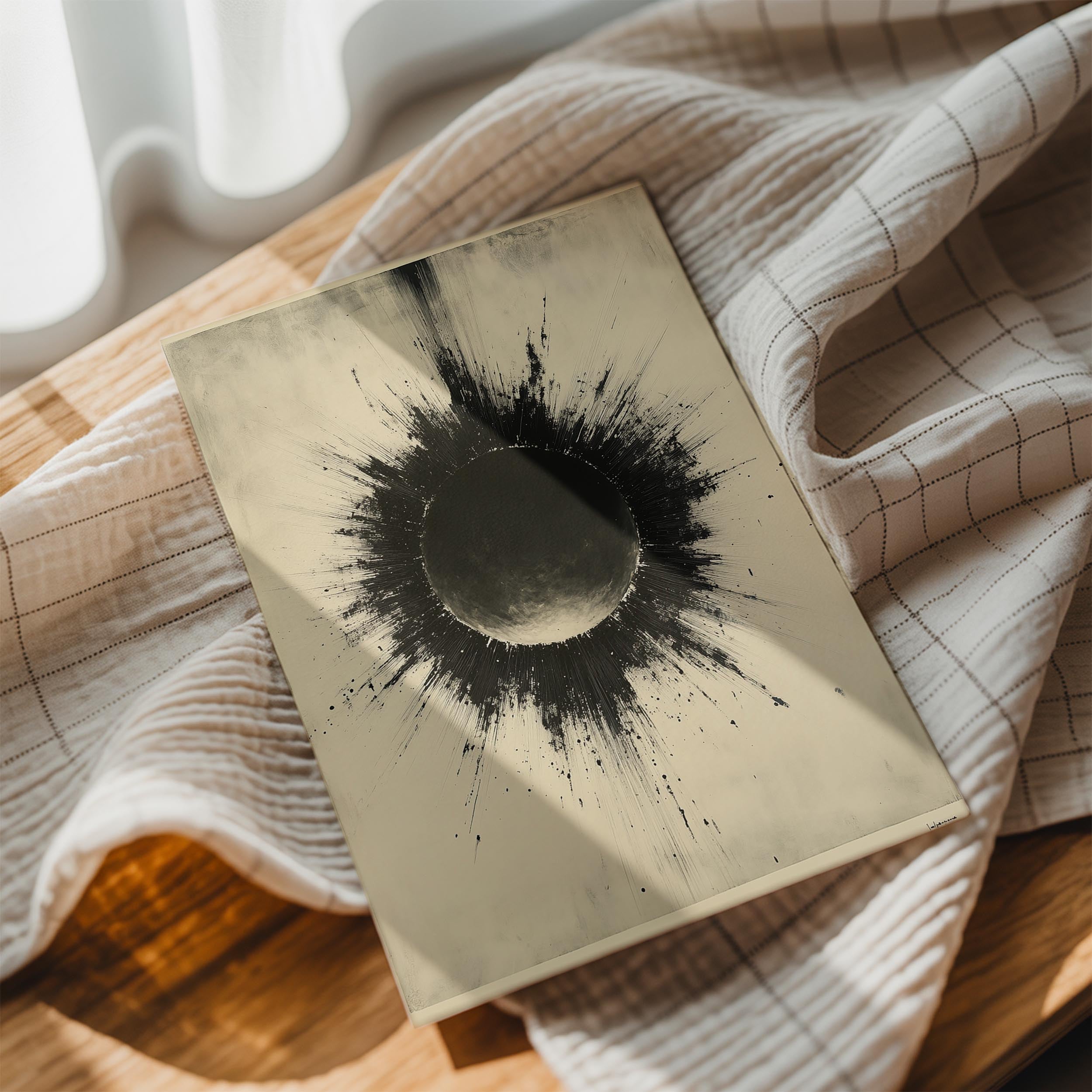 A dramatic depiction of a cosmic black hole with powerful radial bursts emanating outward. This monochrome piece is both enigmatic and visually compelling, symbolizing the vast mysteries of the universe. The sharp contrast between the dark void and the dynamic streaks of energy makes it a statement piece for modern or eclectic interiors. Ideal for science enthusiasts, contemporary spaces, or home offices, it sparks imagination and contemplation. The artwork’s intense visual energy creates an impactful centerpiece for any room.
