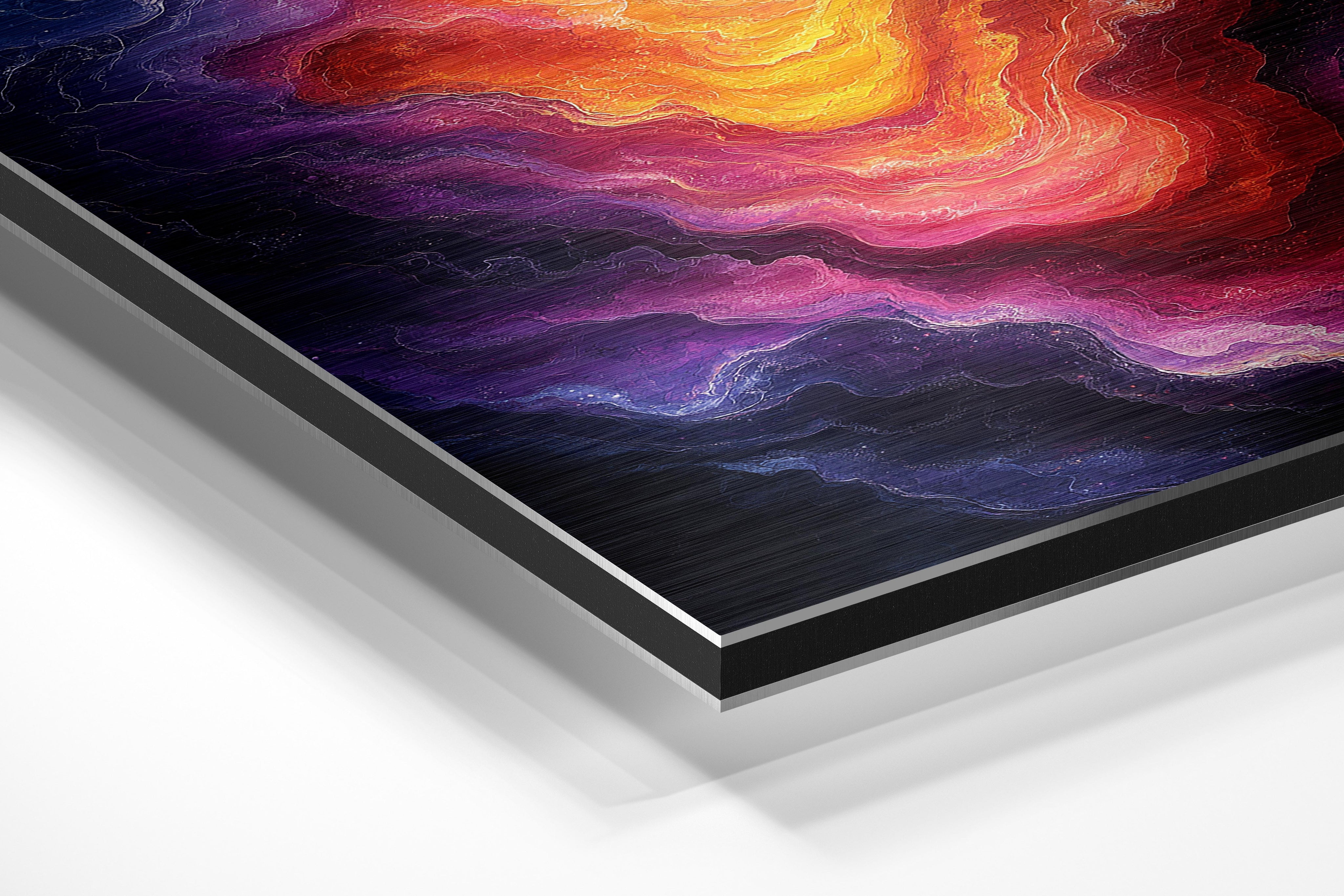 - Brushed Aluminum, on the other hand, features a raw metallic texture with visible brush strokes. Whites and highlights in your image let the silver surface show through, adding a dramatic, shimmering effect. Ideal for black-and-white images, minimalist designs, or abstract art, it creates a bold, industrial vibe with a modern edge.