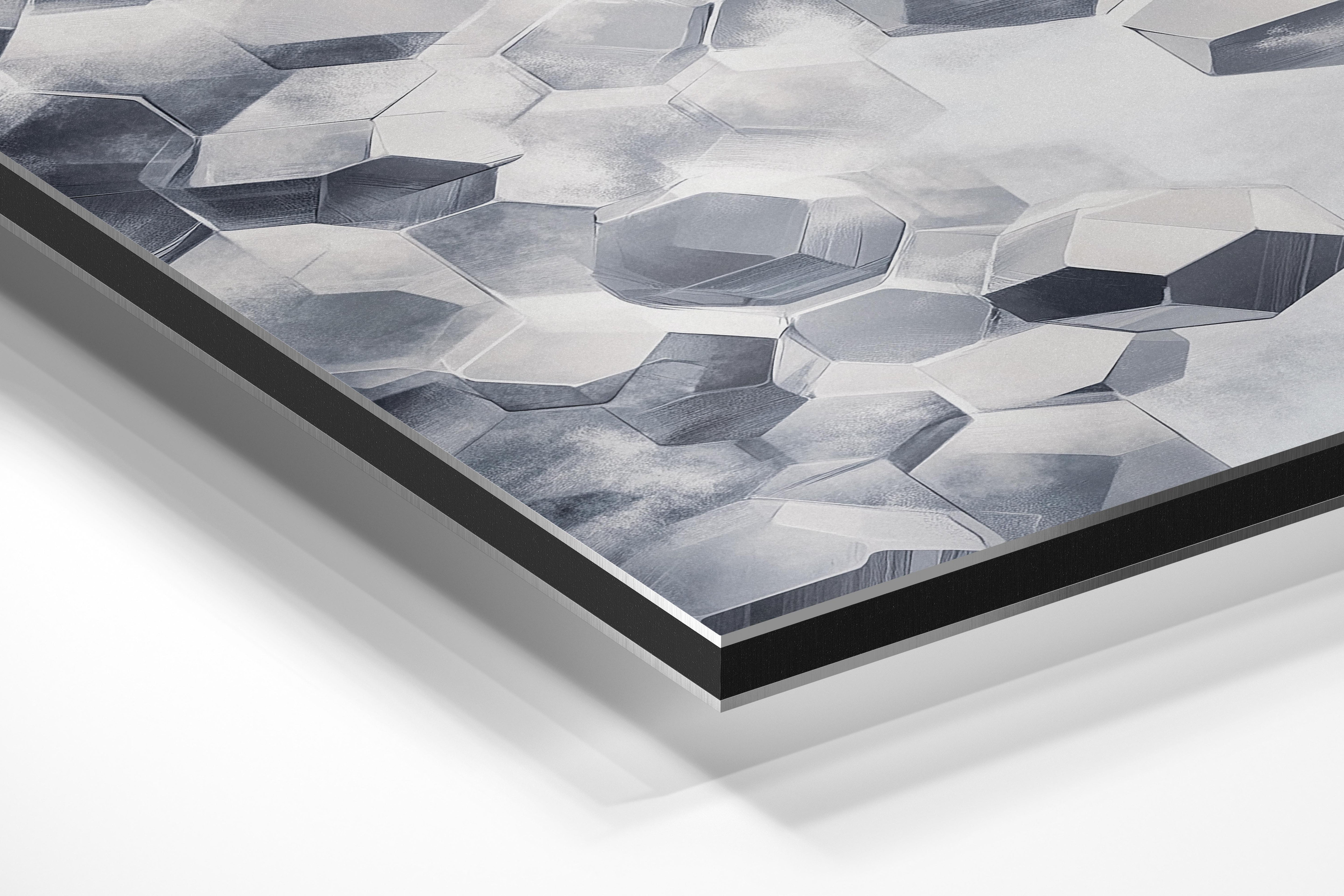 This artwork features a geometric arrangement of translucent, crystal-like hexagons, creating a clean and sophisticated aesthetic. The delicate interplay of light and shadow highlights the facets of each hexagon, giving it a futuristic yet natural feel. Ideal for modern interiors, this piece adds elegance to office spaces or contemporary living rooms. Its minimalist design pairs well with sleek, metallic, or glass furnishings.