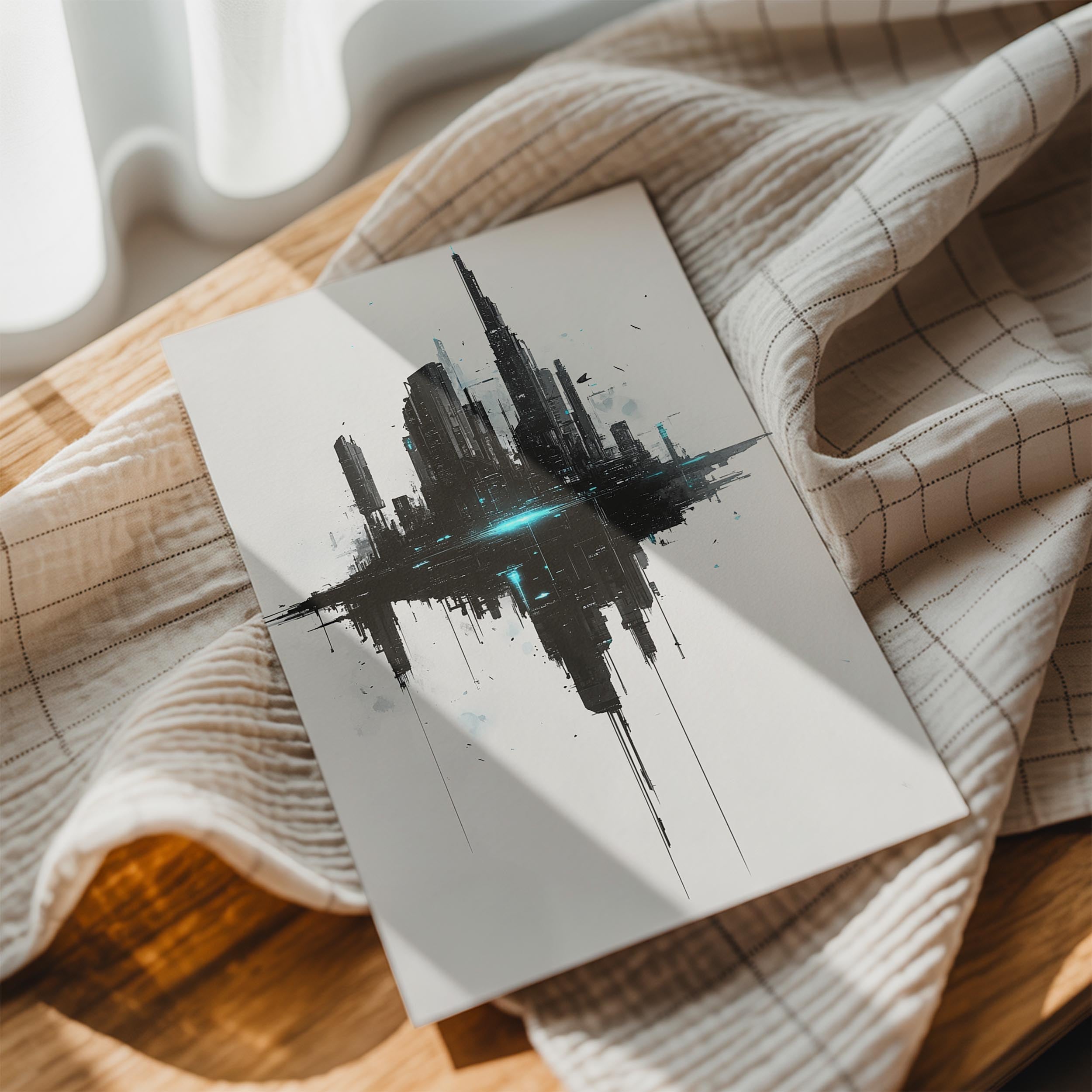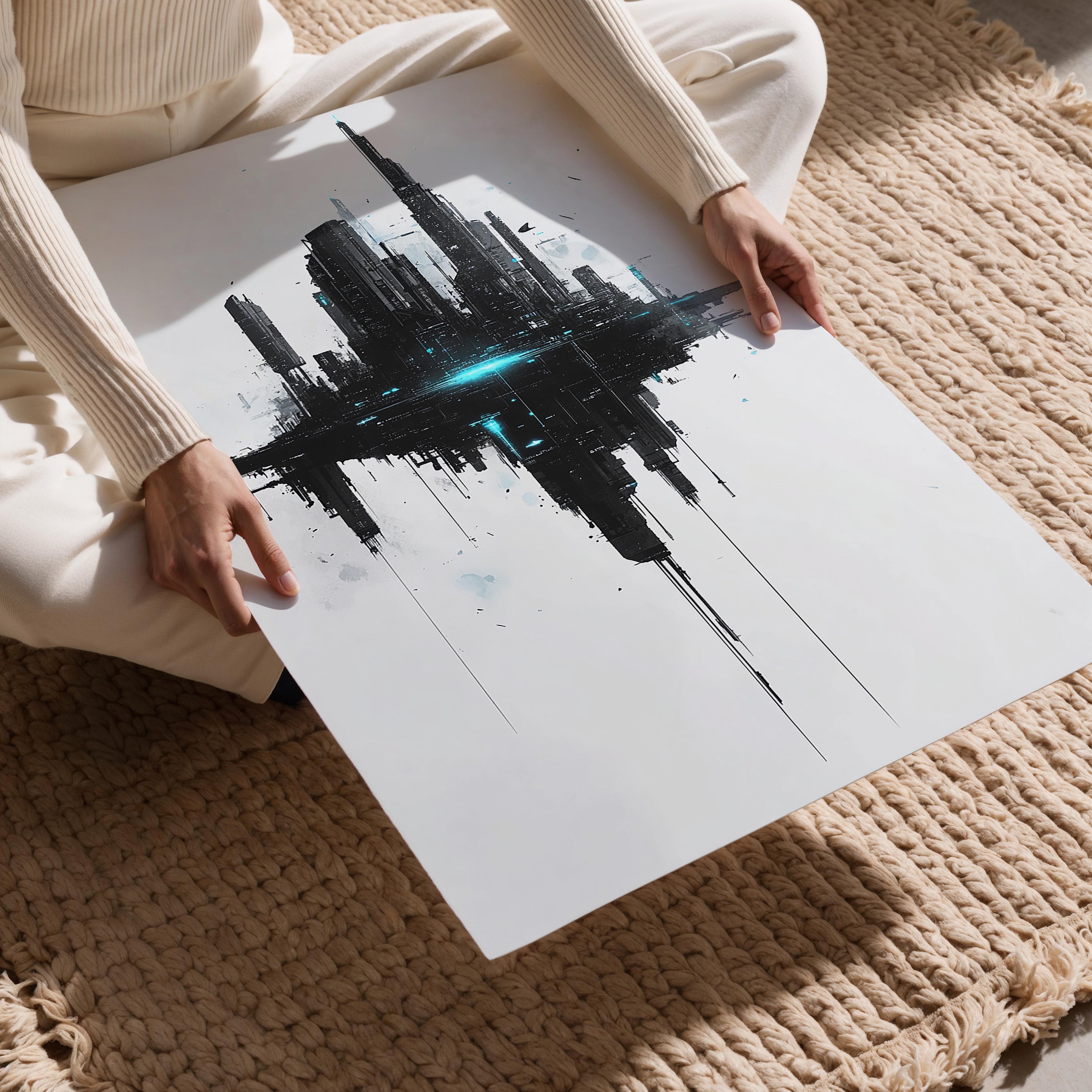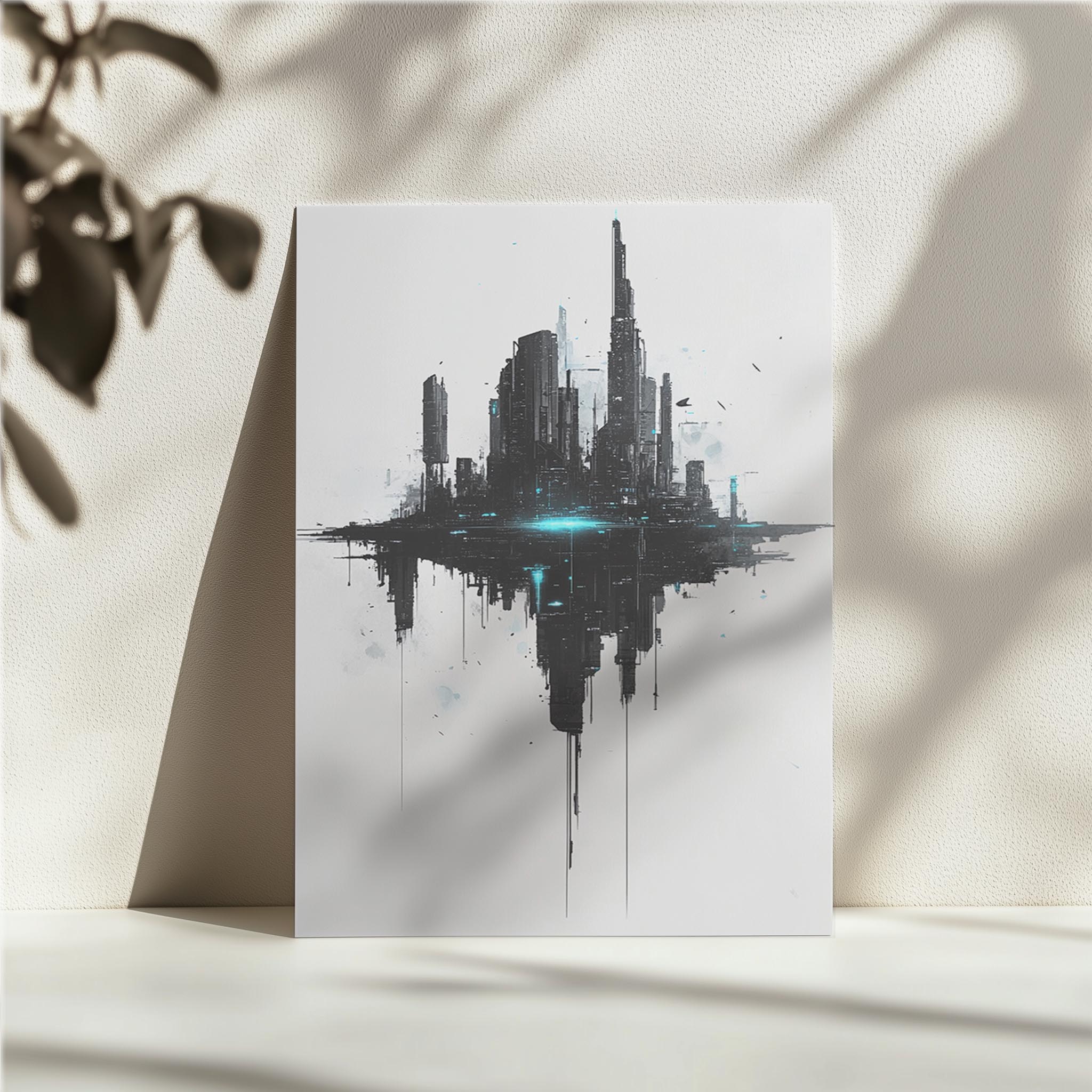 This artwork portrays a futuristic cityscape with a cyberpunk edge, featuring a vibrant interplay of lights and towering skyscrapers. The symmetrical design adds balance, while the use of neon tones against a dark background creates an intense, dramatic atmosphere. Perfect for modern apartments or offices, this piece resonates with fans of sci-fi, technology, and urban art. The vibrant glow of the city lights suggests energy and innovation, making it a dynamic addition to spaces that seek to inspire creativity and forward-thinking.