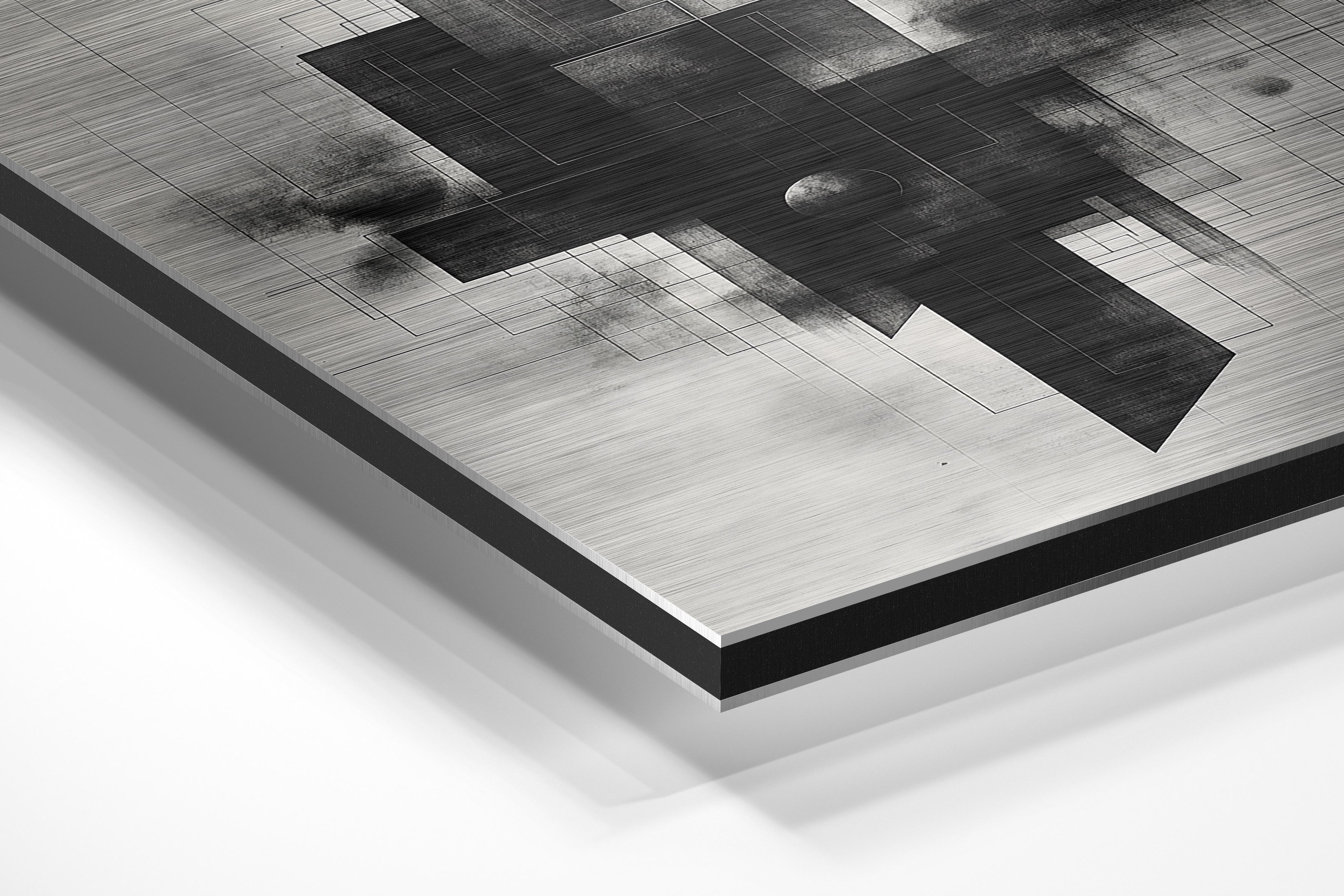 - Brushed Aluminum, on the other hand, features a raw metallic texture with visible brush strokes. Whites and highlights in your image let the silver surface show through, adding a dramatic, shimmering effect. Ideal for black-and-white images, minimalist designs, or abstract art, it creates a bold, industrial vibe with a modern edge.