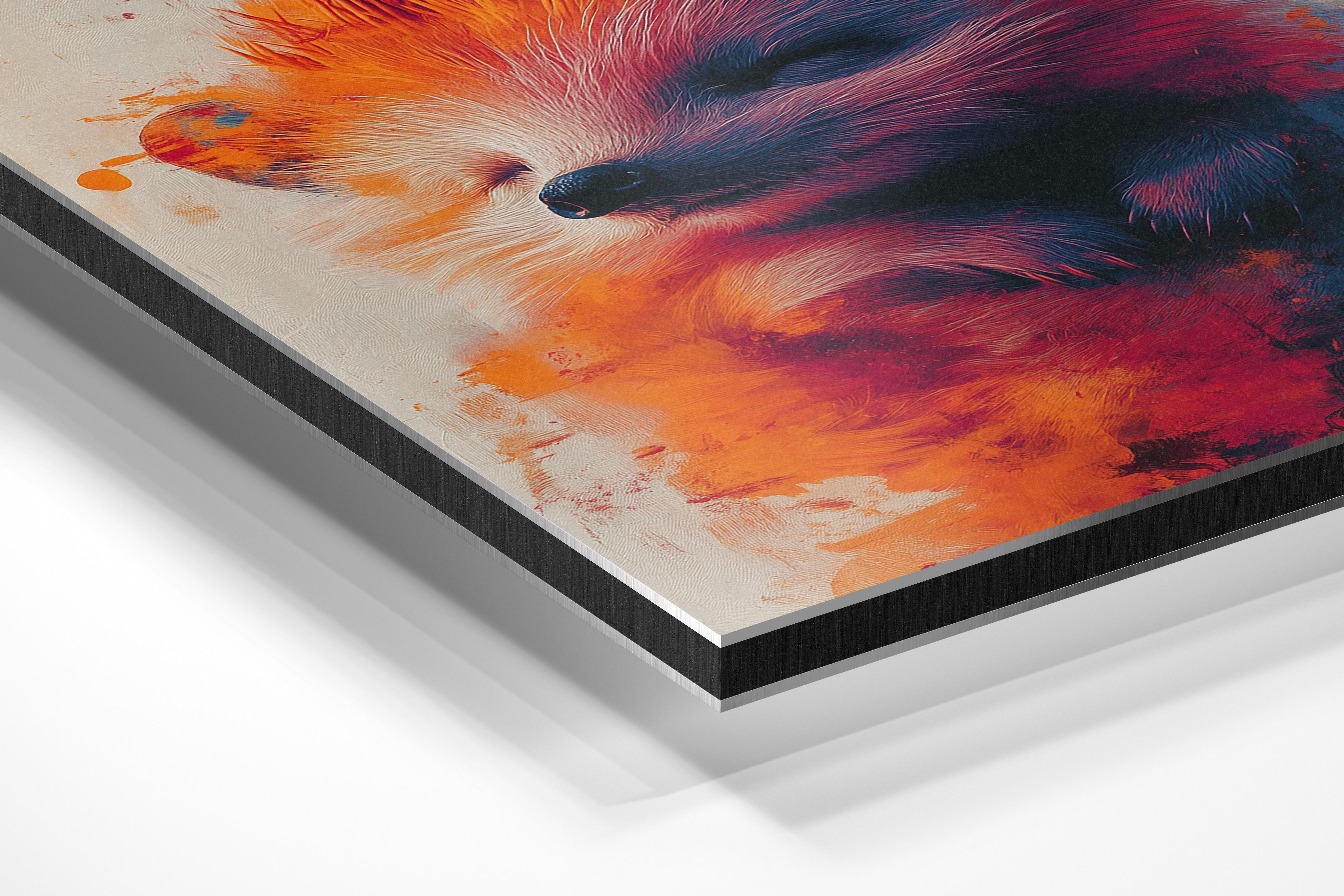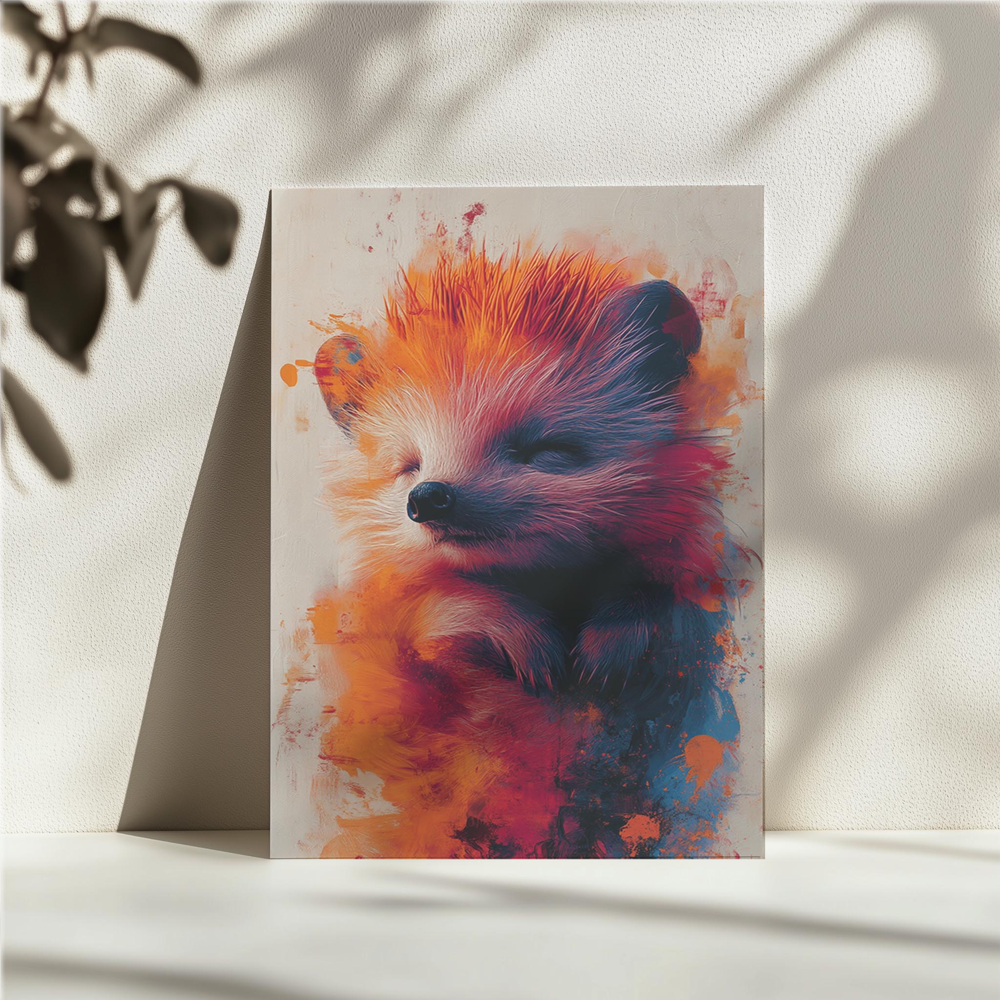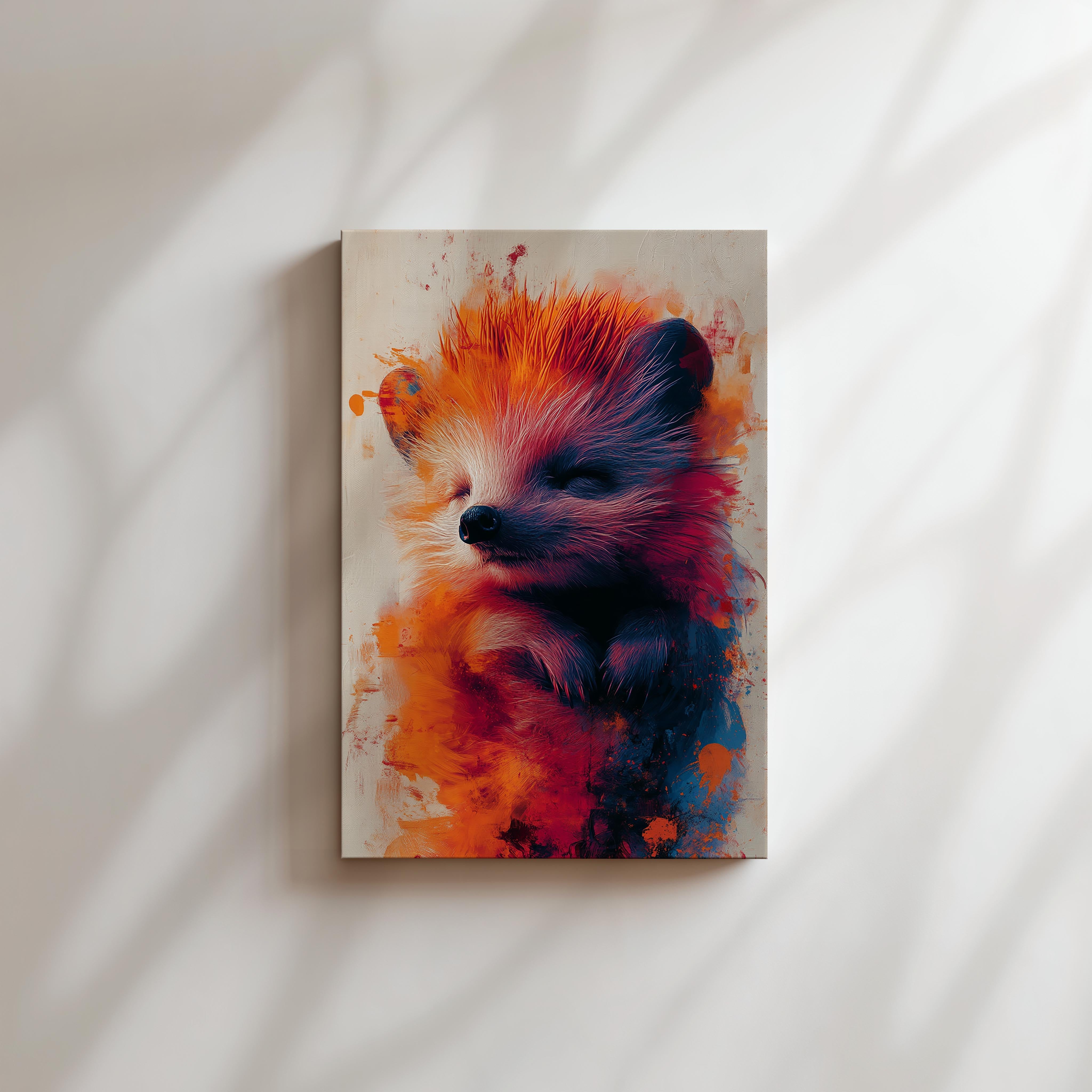 A stunning, artistic rendering of a hedgehog with an abstract blend of colors and textures, giving it a dreamlike appearance. The vibrant orange and blue hues, combined with soft brushstrokes, create a mesmerizing effect, as if the hedgehog is floating in a surreal world. This piece brings a unique mix of warmth and energy, making it a great conversation starter for modern and creative spaces. Ideal for those who appreciate imaginative and expressive wildlife art, this painting can add a whimsical yet sophisticated touch to any room.