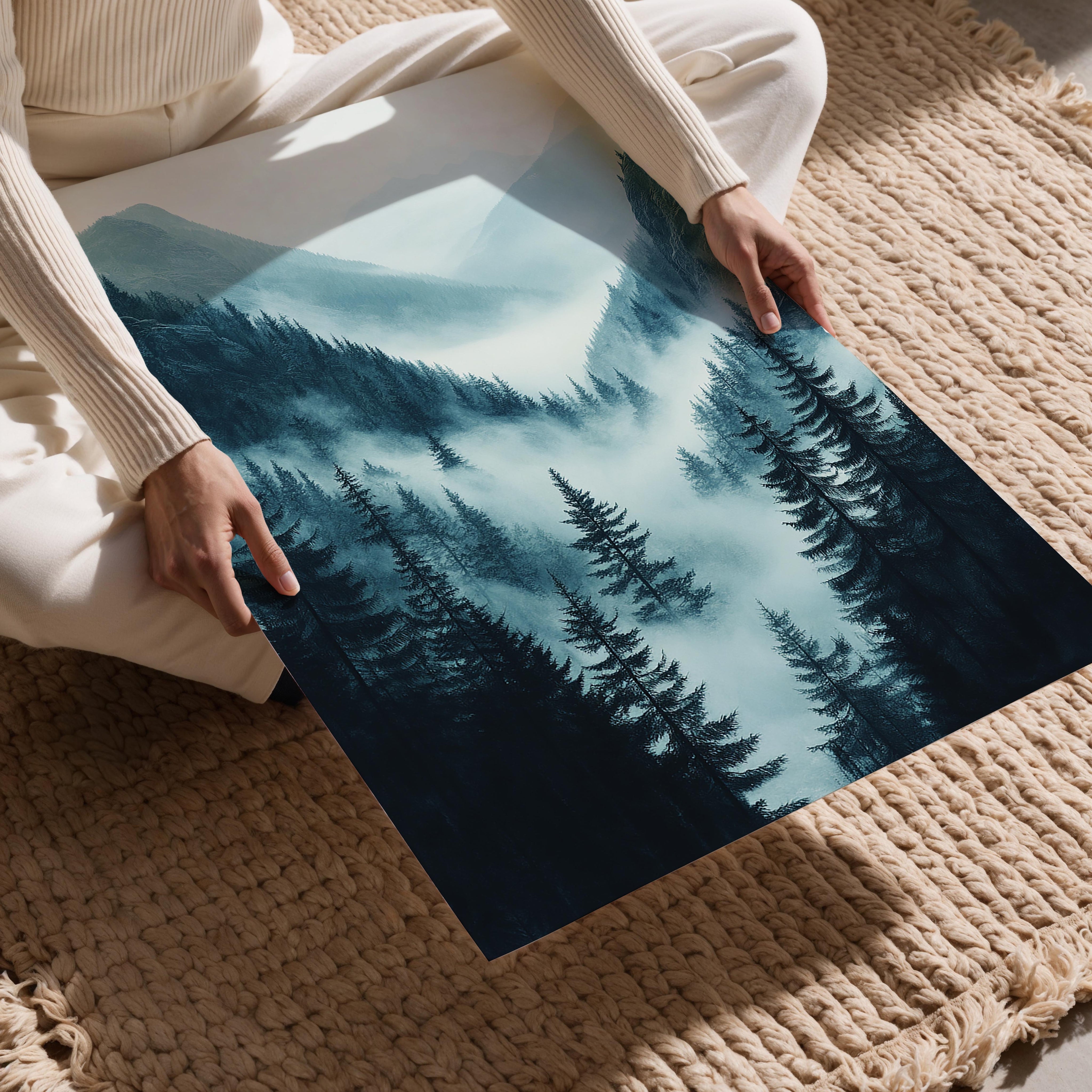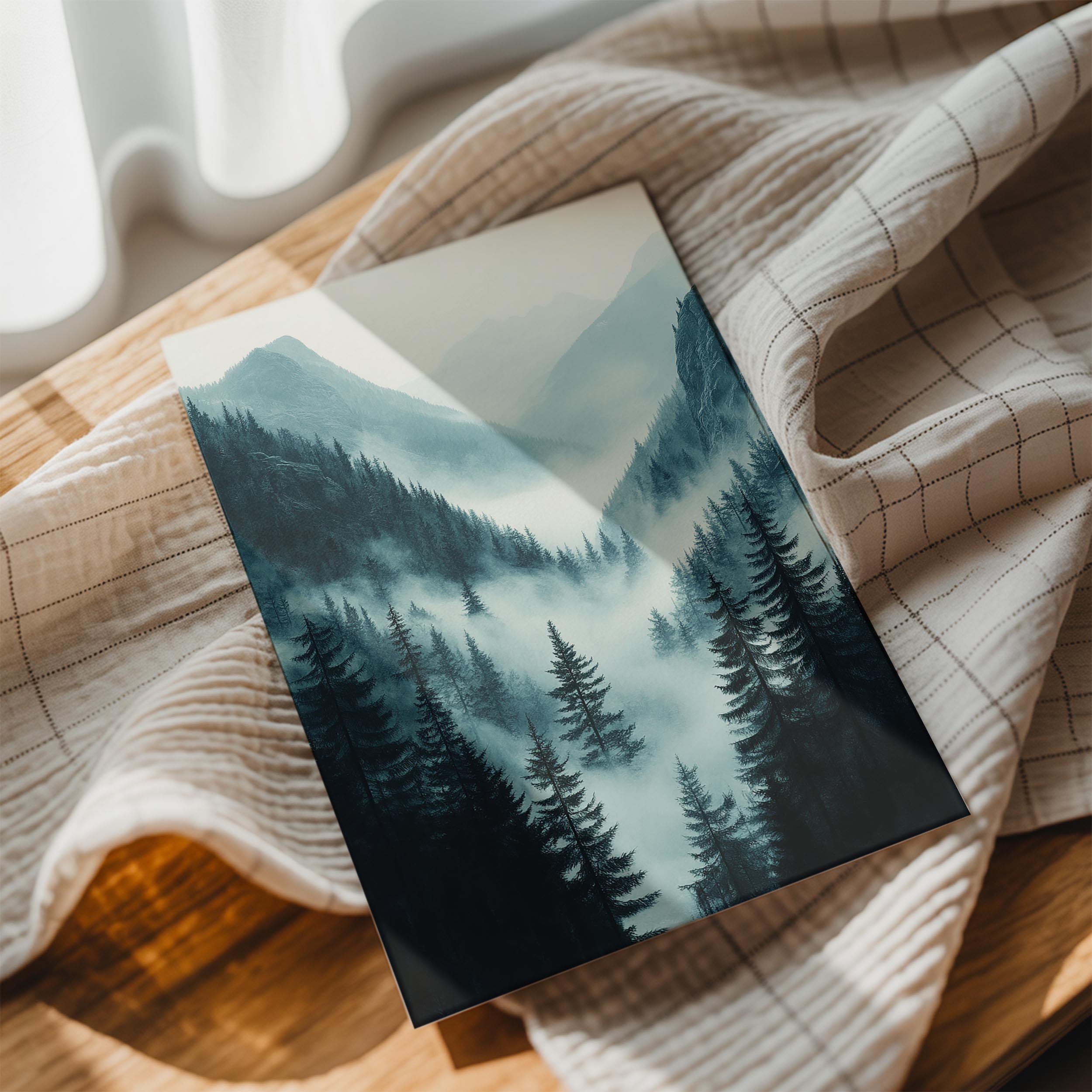 This captivating image showcases forested mountain slopes enveloped in a mystical mist, evoking a sense of magic and wonder. The interplay of light and shadow adds depth and drama to the composition, making it a compelling choice for designs seeking to inspire imagination and curiosity. Perfect for fantasy themes, eco-tourism campaigns, or artistic endeavors, this image captures the enchantment of nature at its most serene and mysterious.