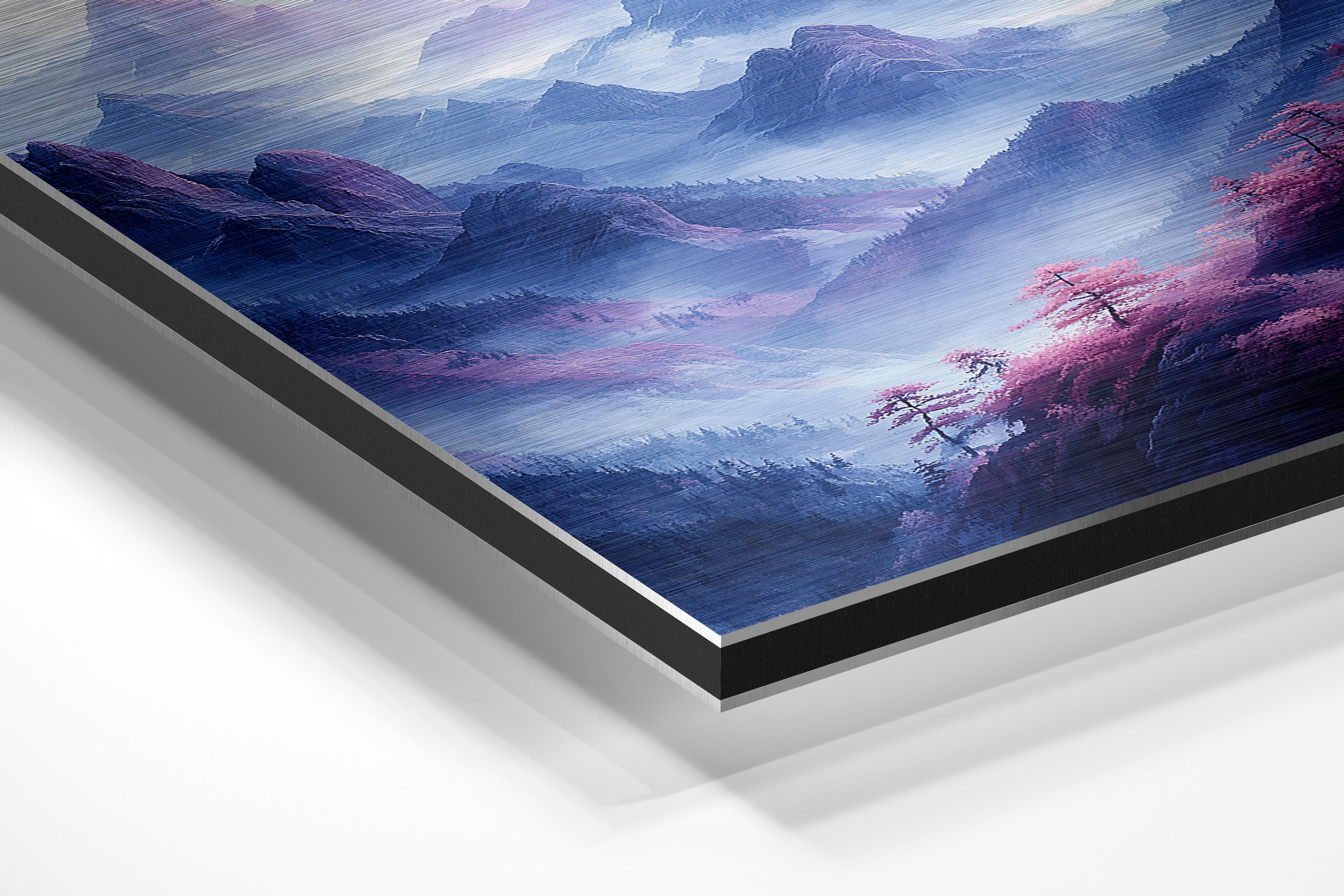 - Brushed Aluminum, on the other hand, features a raw metallic texture with visible brush strokes. Whites and highlights in your image let the silver surface show through, adding a dramatic, shimmering effect. Ideal for black-and-white images, minimalist designs, or abstract art, it creates a bold, industrial vibe with a modern edge.