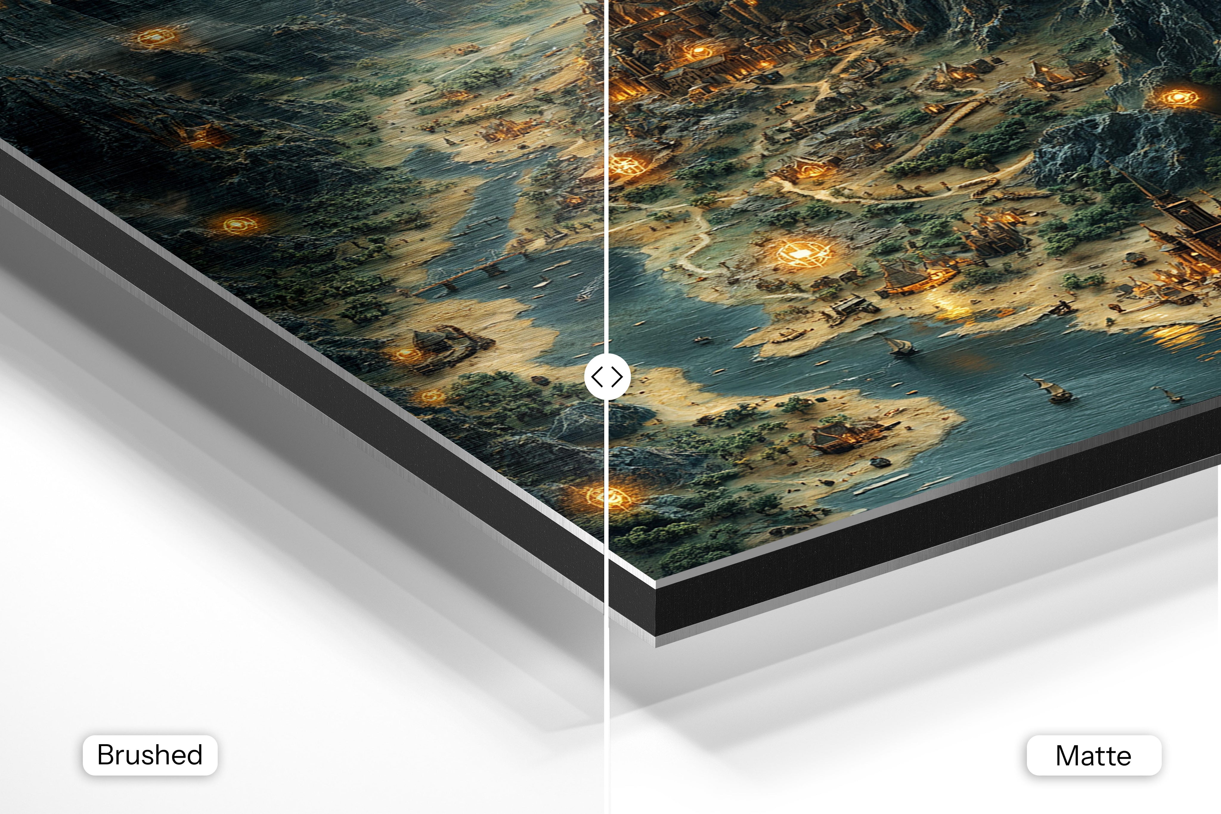 - Matte Aluminum offers a smooth, bright white surface that delivers crisp details and vibrant, true-to-life colors. With its non-reflective finish and subtle silky sheen, it’s perfect for photography, portraits, and colorful artwork—bringing a clean, polished look to any interior.