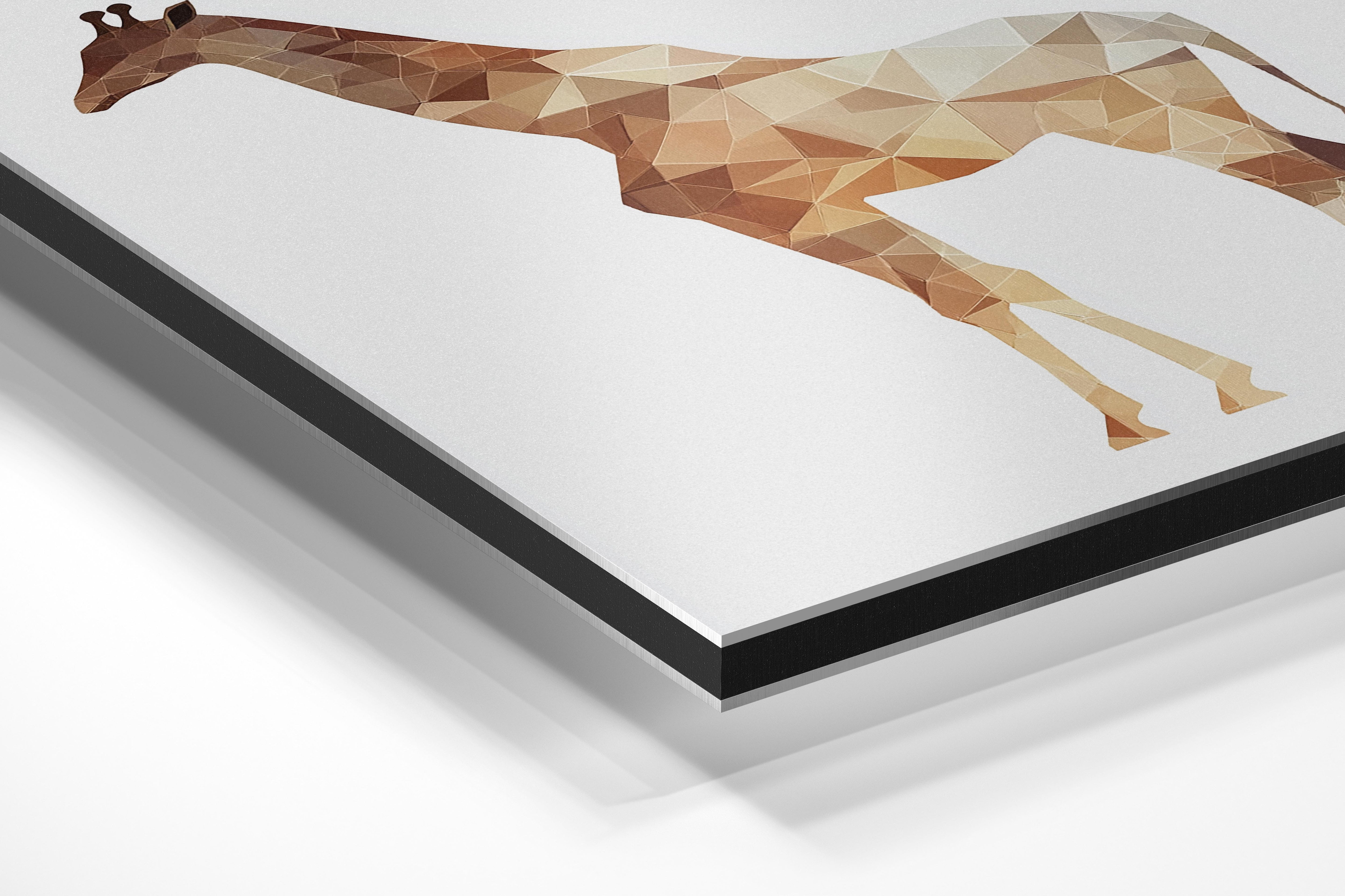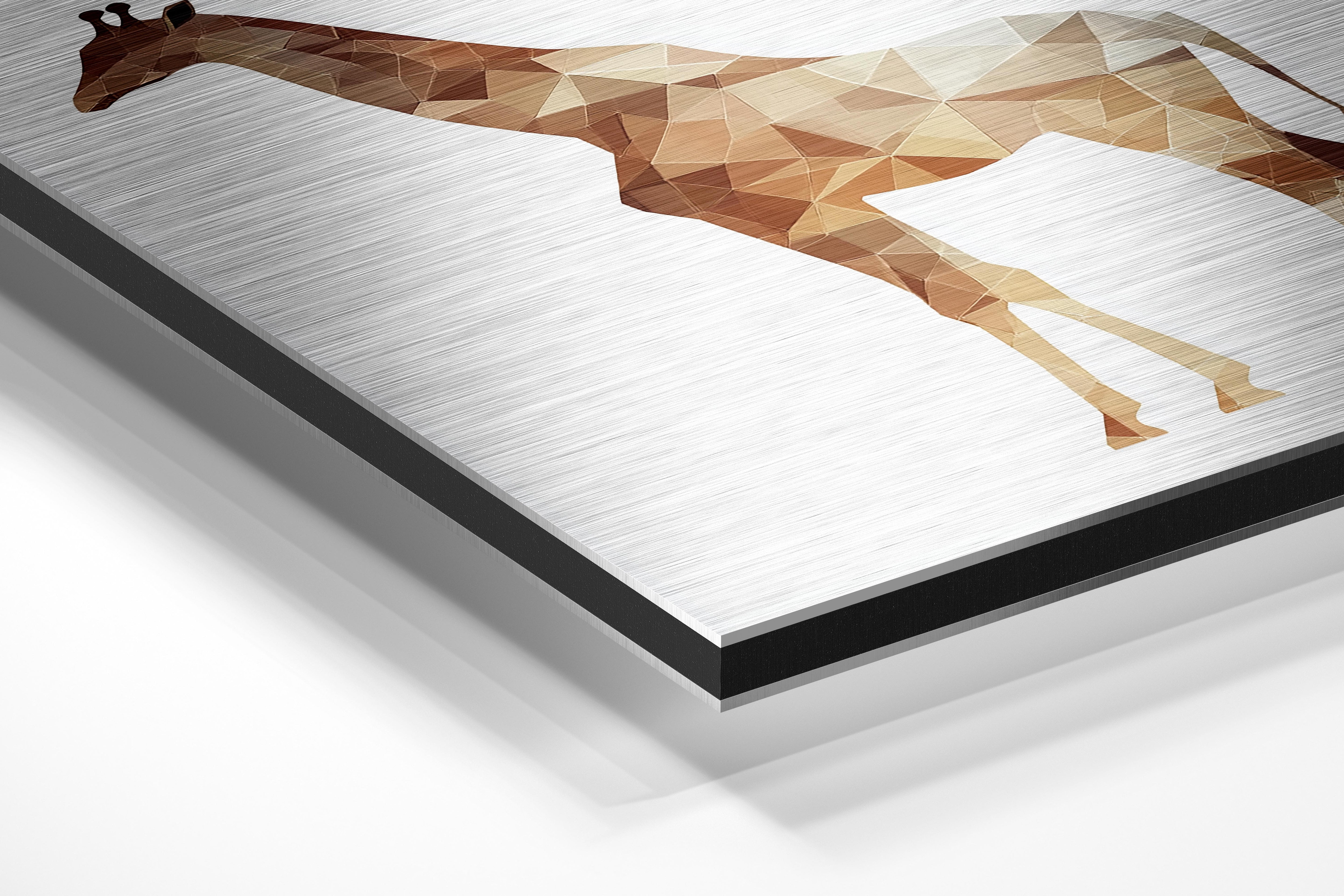 A stunning digital illustration of a giraffe using a geometric low-poly design. The warm, earthy tones of brown and beige give it a natural yet modern aesthetic, making it an eye-catching piece for contemporary interiors. The structured yet organic appearance of the giraffe adds a dynamic and intellectual element to the artwork, making it well-suited for spaces that embrace modern design principles. Whether displayed in a living room, office, or hallway, this piece brings an element of African wildlife to an urban setting in a unique and stylish manner.