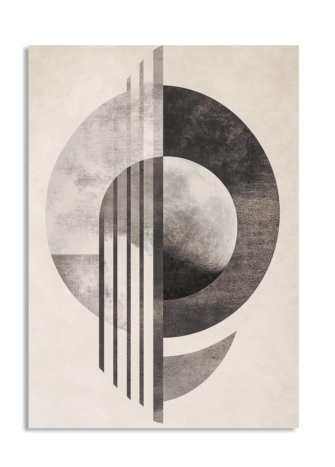 A sophisticated composition blending geometric forms with a textured lunar aesthetic. The contrast between sharp lines and soft celestial elements creates a sense of balance and intrigue. The grayscale palette enhances its timeless, minimalist appeal, making it suitable for modern interiors. The juxtaposition of organic and structural components reflects the harmony between nature and design. This piece resonates well with modern interiors, particularly in monochrome or minimalist setups. Its abstract yet cosmic influence makes it a great choice for intellectual spaces, libraries, or homes with a refined artistic taste, offering a seamless fusion of science, art, and philosophy.