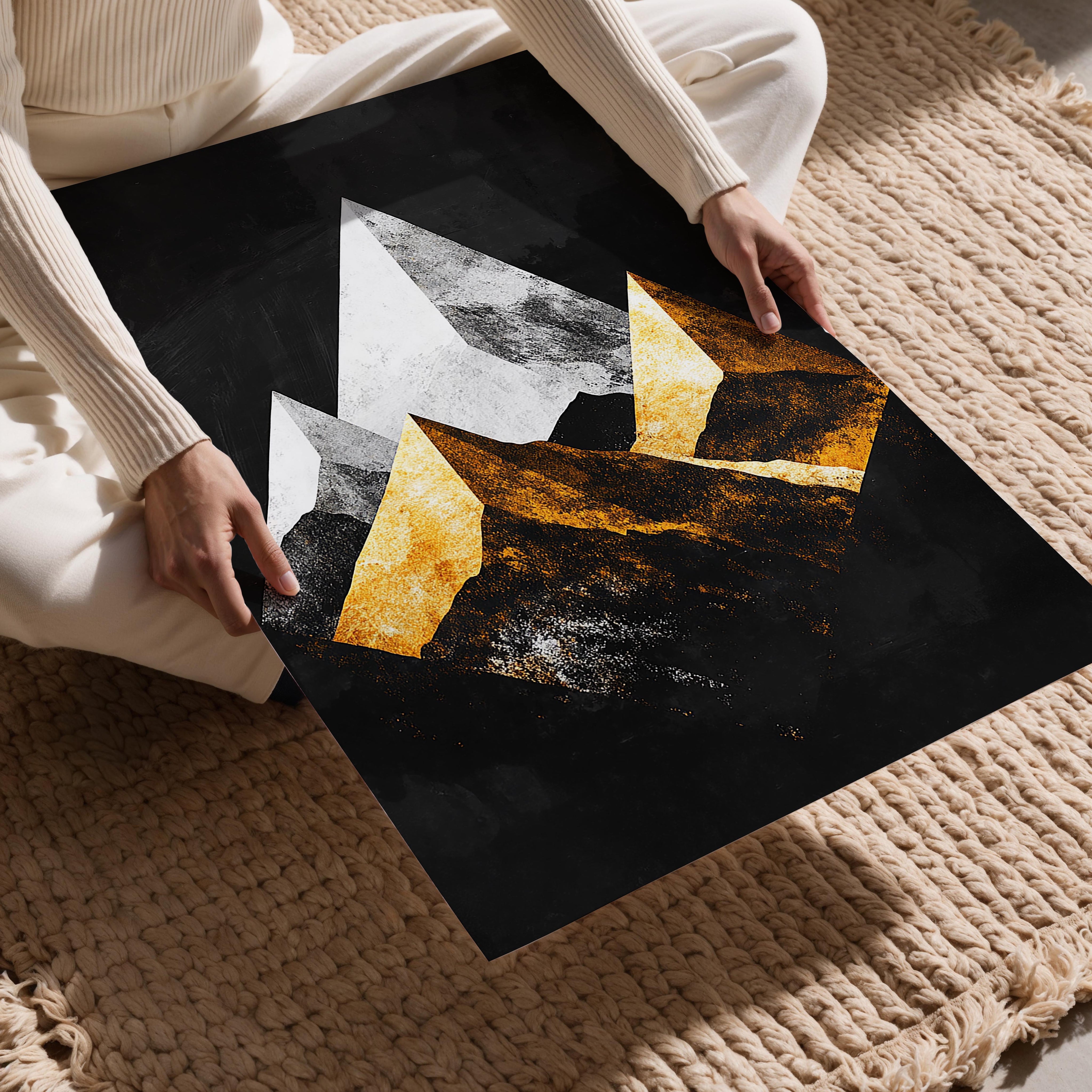An artistic composition of a mountain landscape wrapped in golden light, blending dreamy tones of warmth and softness. This piece exudes a sense of calm and inspiration, making it a perfect fit for bedrooms, meditation areas, or any space in need of a serene and uplifting ambiance.