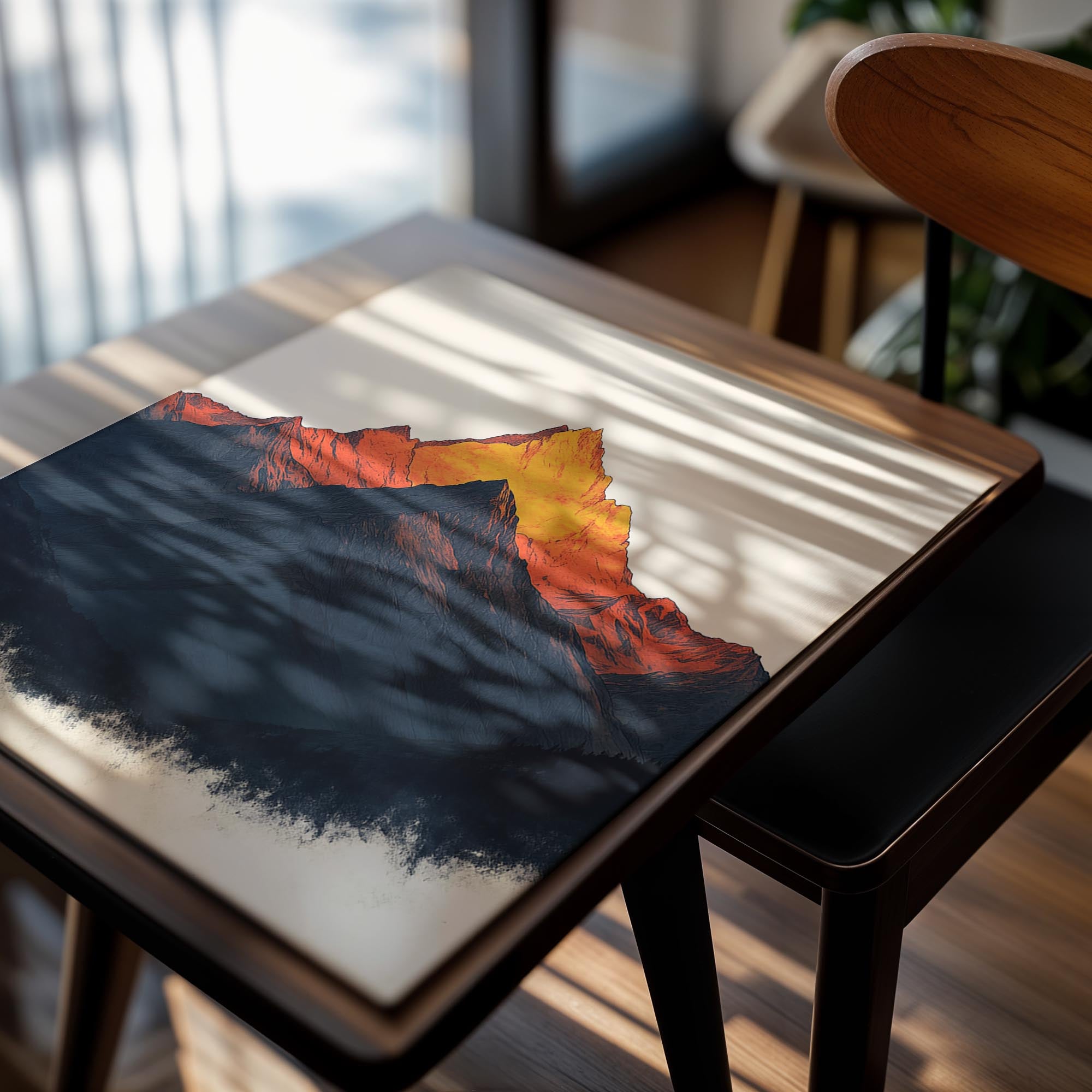 Golden light illuminates the rugged peaks of a mountain range, creating a mesmerizing interplay of shadows and highlights. This image beautifully captures the grandeur of the mountains, making it a timeless depiction of nature's majesty.