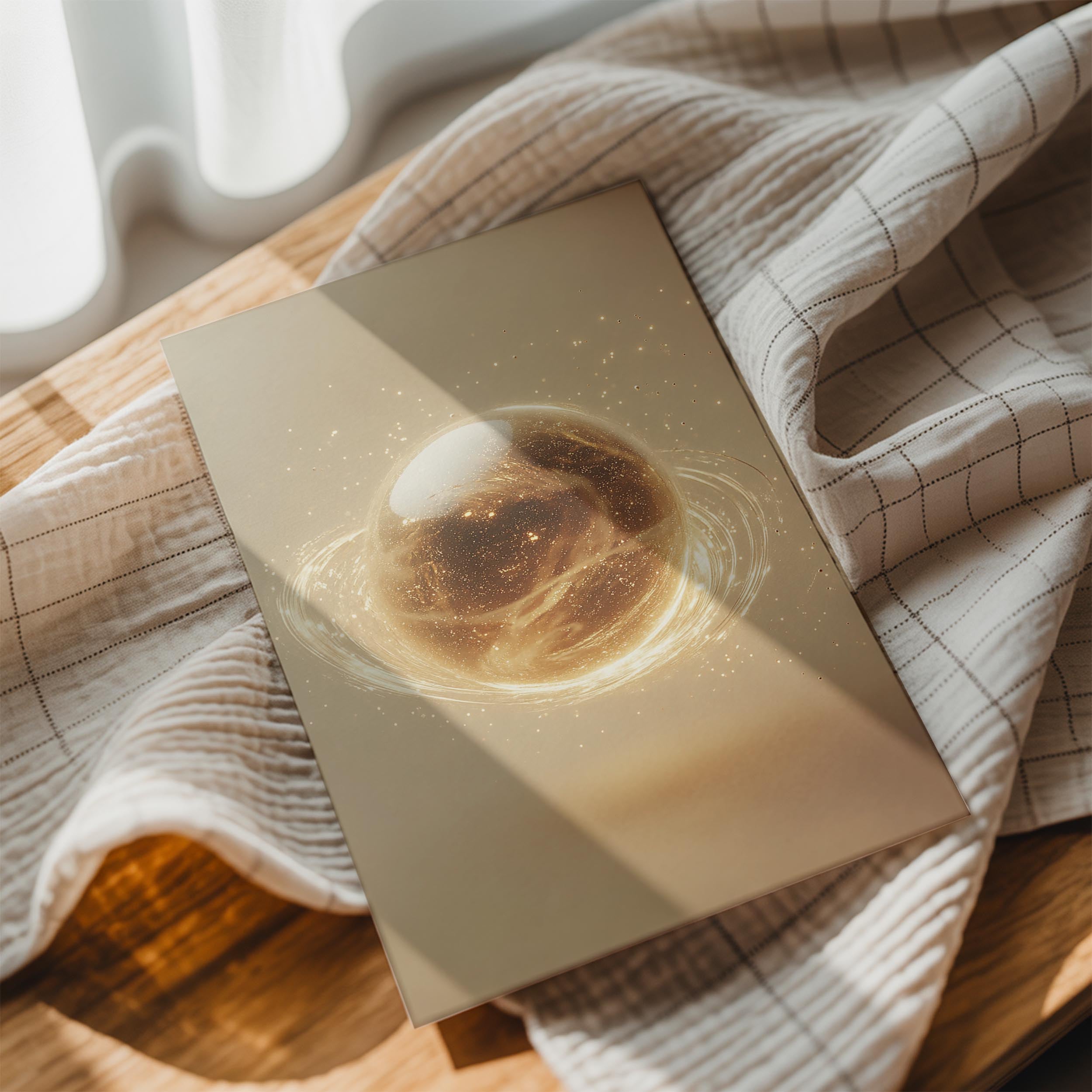 A glowing golden orb with radiant energy trails, showcasing a captivating stellar phenomenon. The golden tones evoke warmth and vitality, while the surrounding swirls suggest dynamic movement and celestial harmony. This orb can represent a star, a powerful cosmic artifact, or the embodiment of universal energy. The soft, radiant glow contrasts against a neutral backdrop, emphasizing its importance and unique characteristics. This image is perfect for illustrating themes of cosmic power, stellar beauty, and the mysteries of the universe.