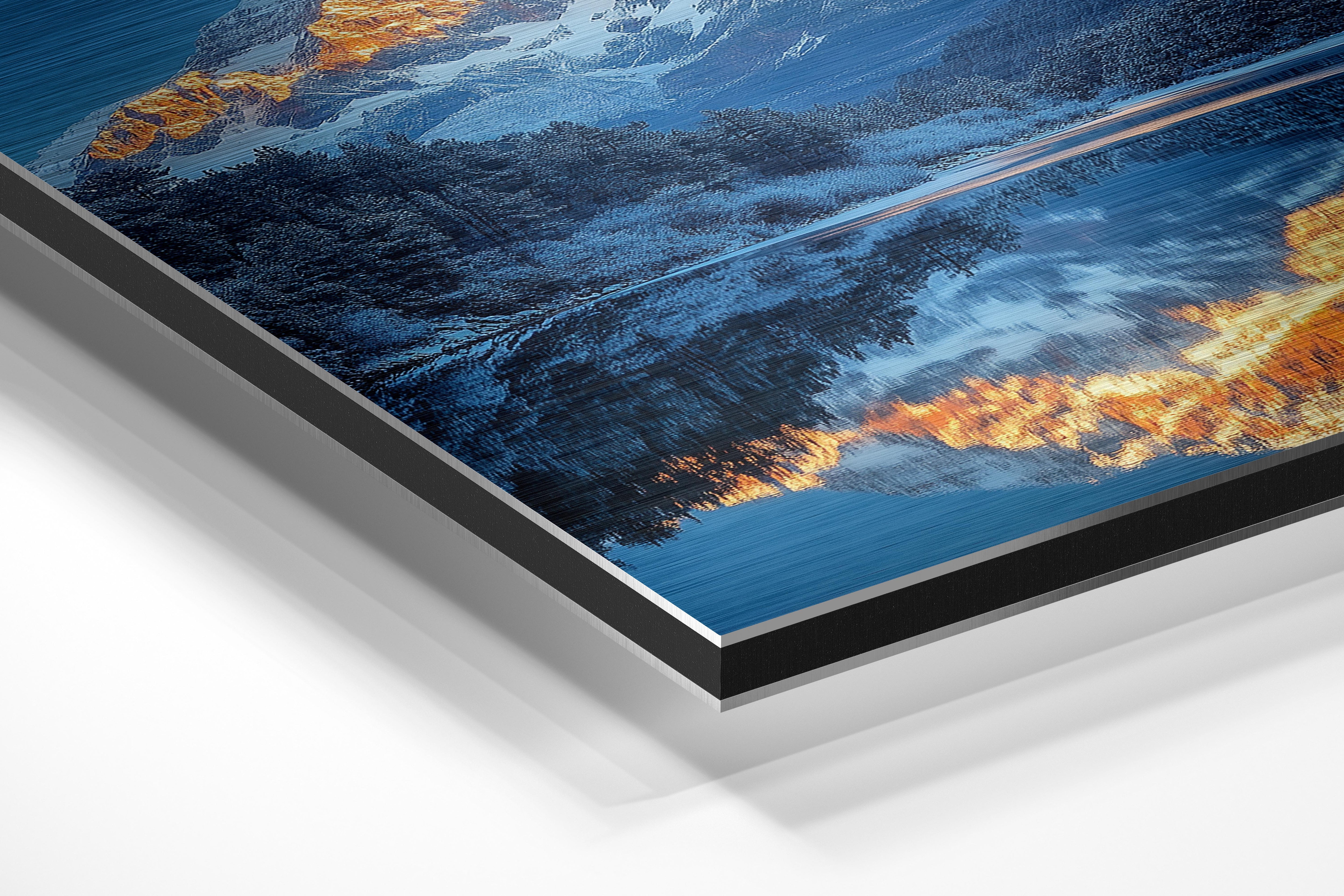 - Brushed Aluminum, on the other hand, features a raw metallic texture with visible brush strokes. Whites and highlights in your image let the silver surface show through, adding a dramatic, shimmering effect. Ideal for black-and-white images, minimalist designs, or abstract art, it creates a bold, industrial vibe with a modern edge.