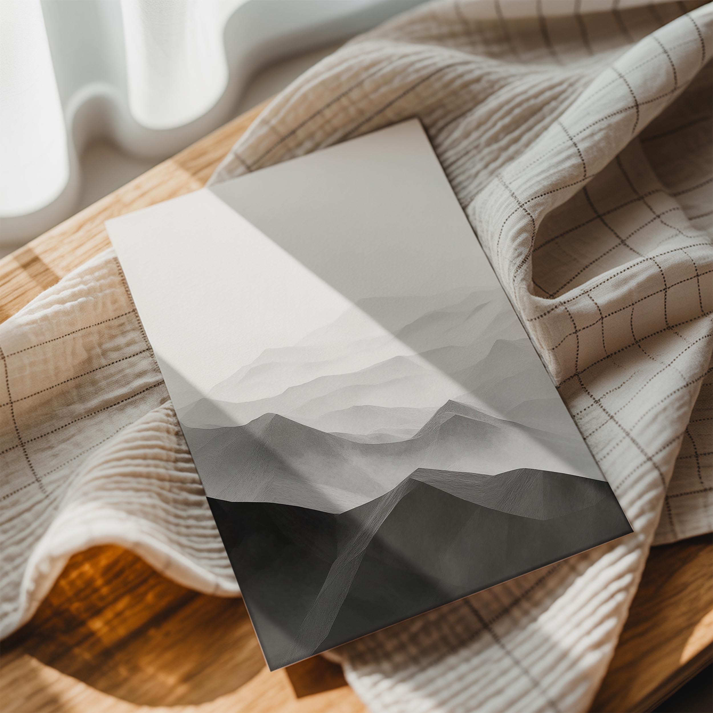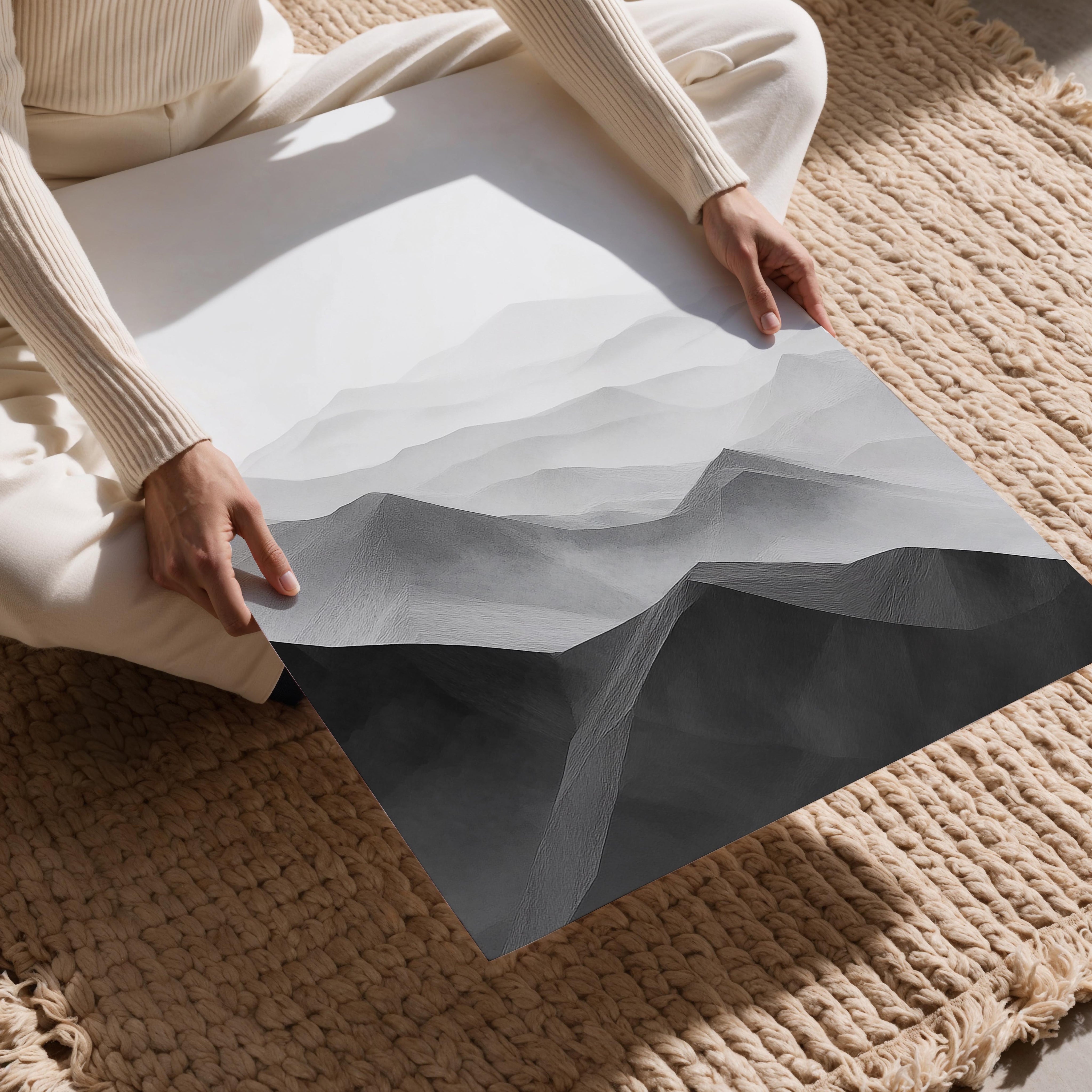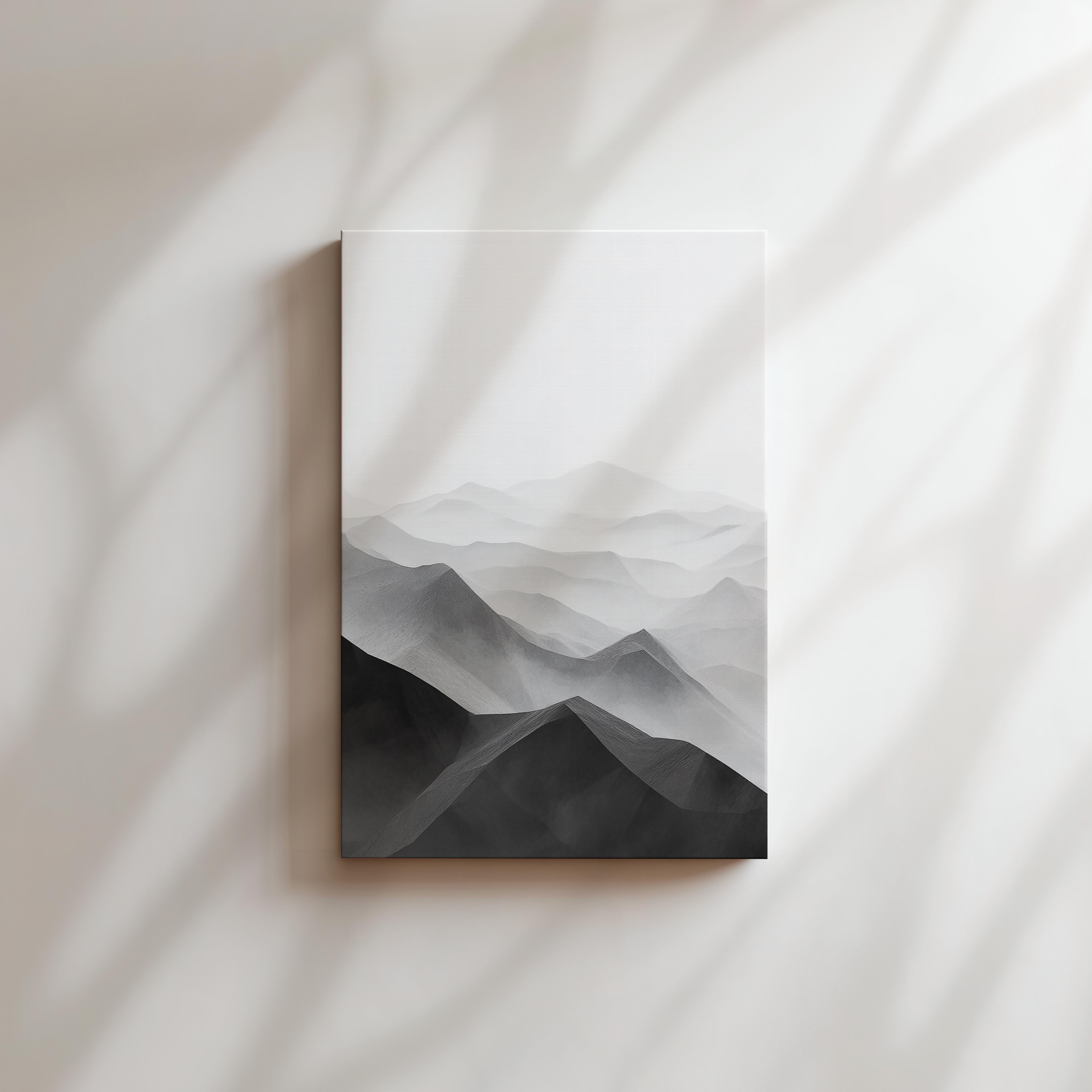 A stunning grayscale portrayal of mountainous landscapes, this artwork highlights the elegance of simplicity. Layers of peaks and valleys stretch into the horizon, exuding a sense of calm and timeless beauty. The monochromatic palette adds versatility, making it suitable for various decor styles. Perfect for bedrooms, offices, or living spaces, it provides a meditative ambiance and a touch of sophistication. This piece resonates with nature lovers and those who appreciate minimalistic yet impactful design. It's a timeless representation of the majestic allure of mountains.