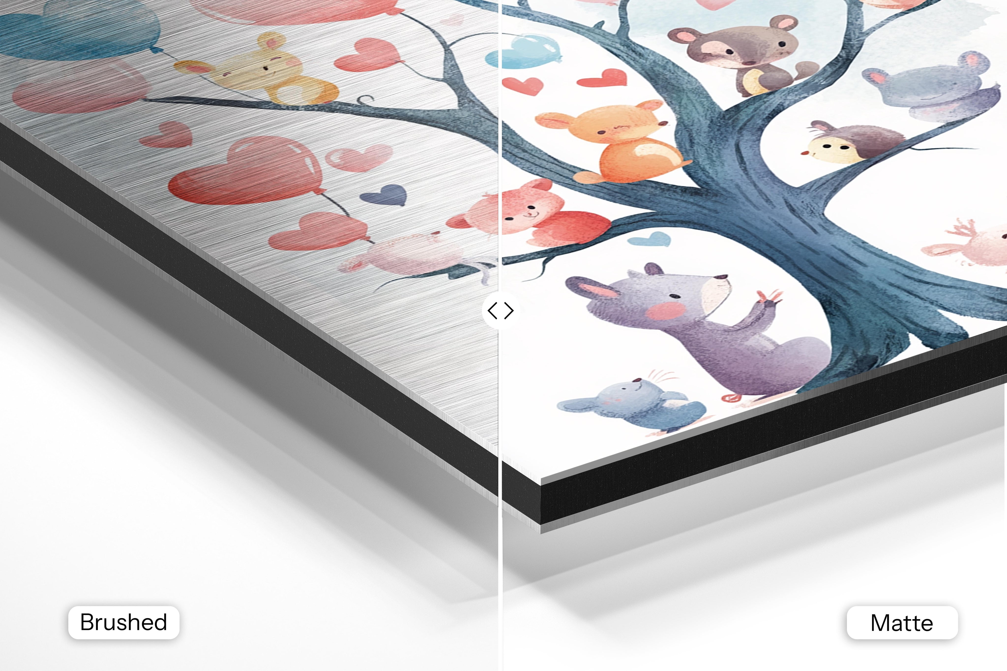 - Matte Aluminum offers a smooth, bright white surface that delivers crisp details and vibrant, true-to-life colors. With its non-reflective finish and subtle silky sheen, it’s perfect for photography, portraits, and colorful artwork—bringing a clean, polished look to any interior.