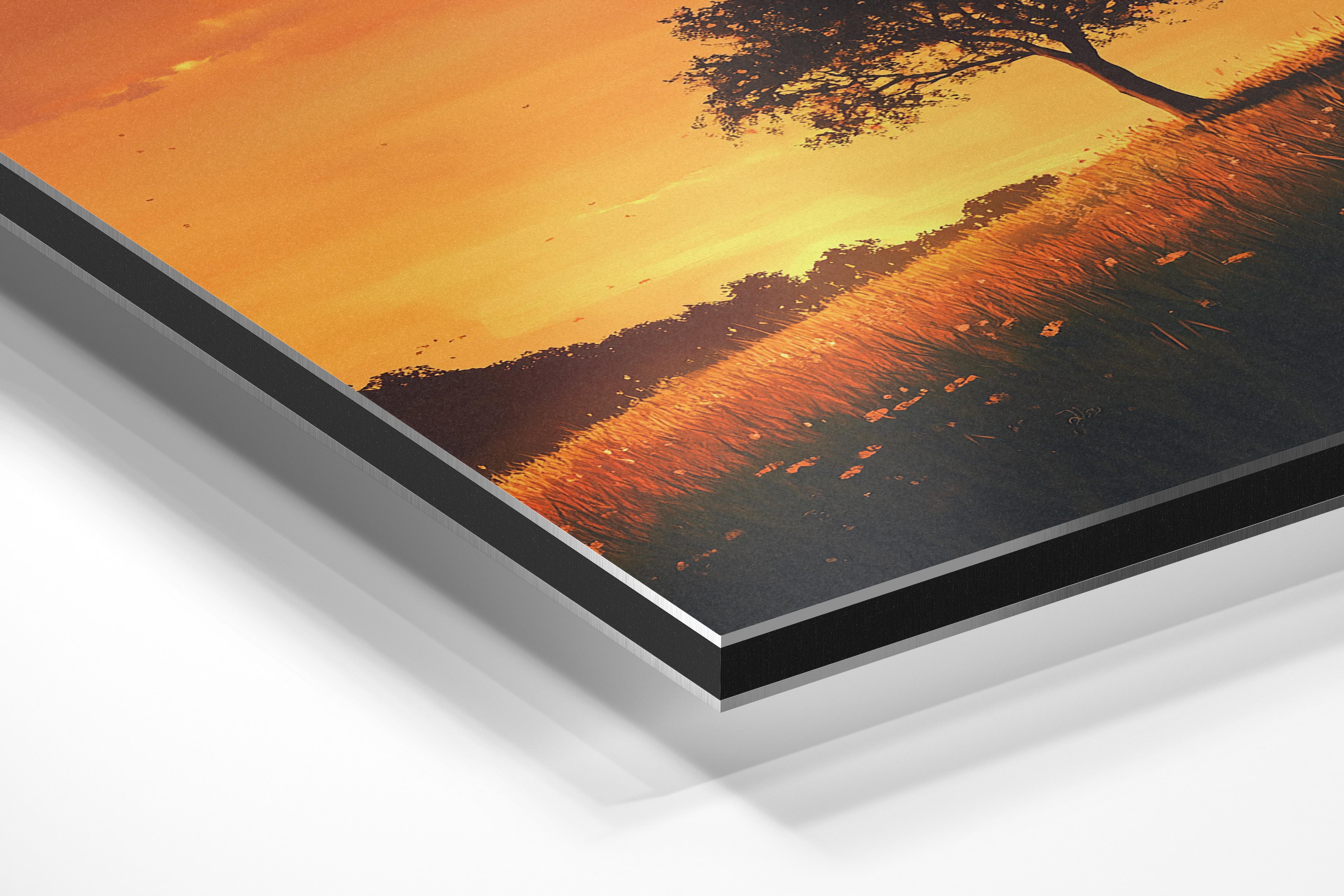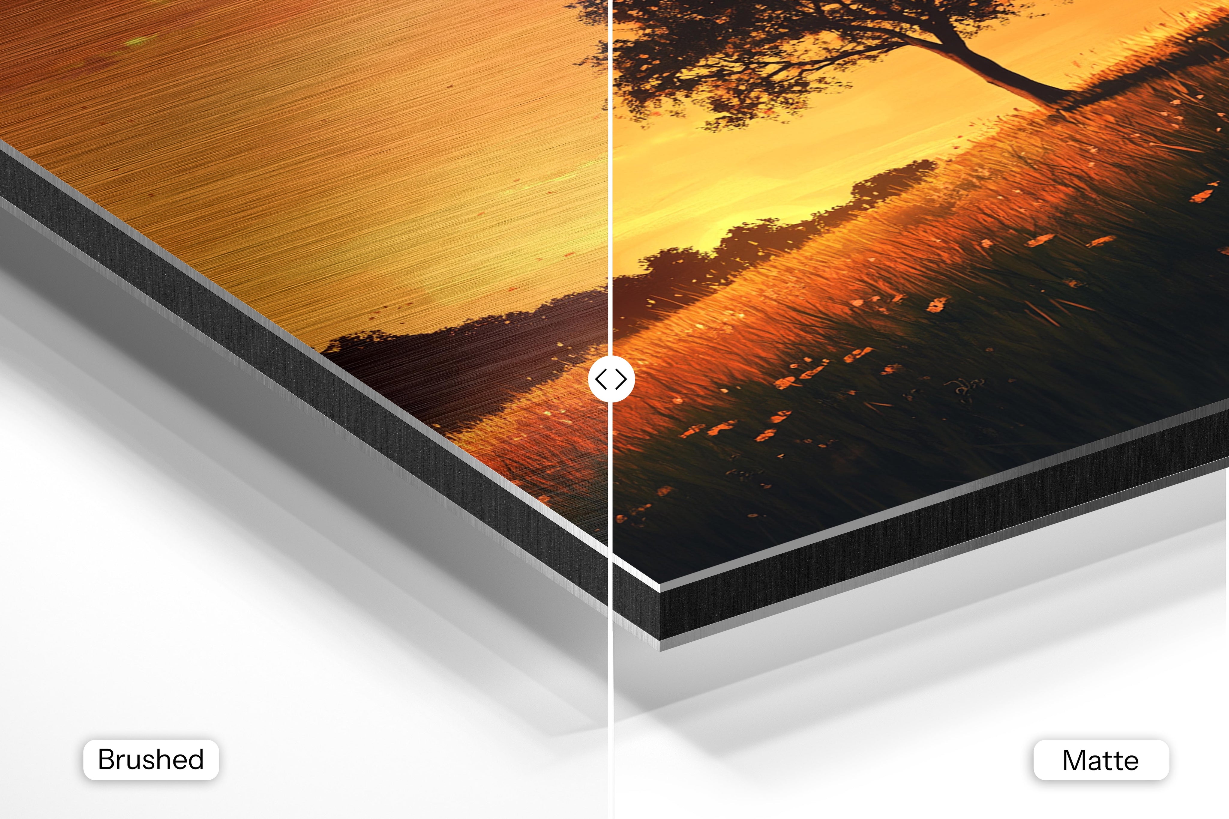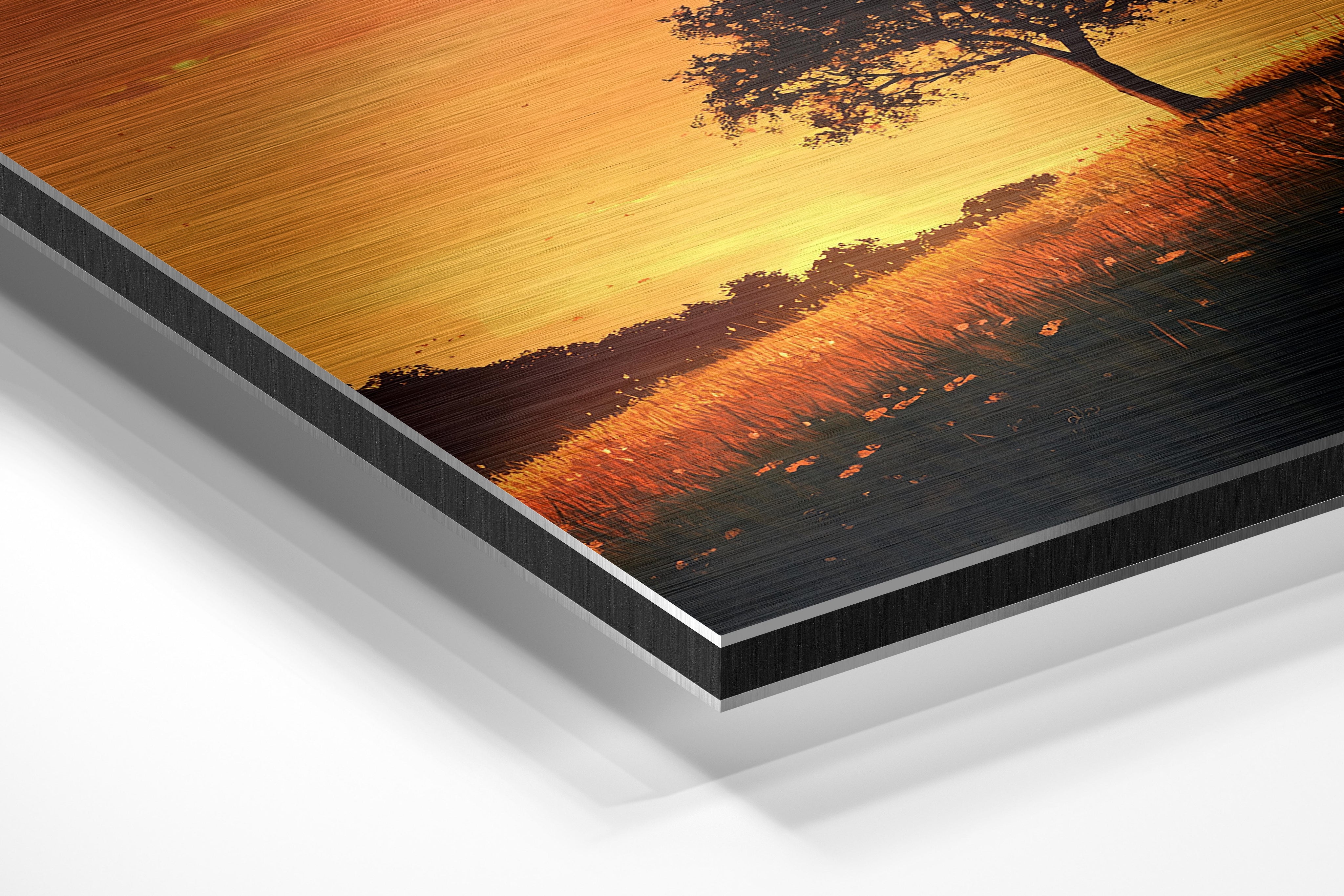 - Brushed Aluminum, on the other hand, features a raw metallic texture with visible brush strokes. Whites and highlights in your image let the silver surface show through, adding a dramatic, shimmering effect. Ideal for black-and-white images, minimalist designs, or abstract art, it creates a bold, industrial vibe with a modern edge.