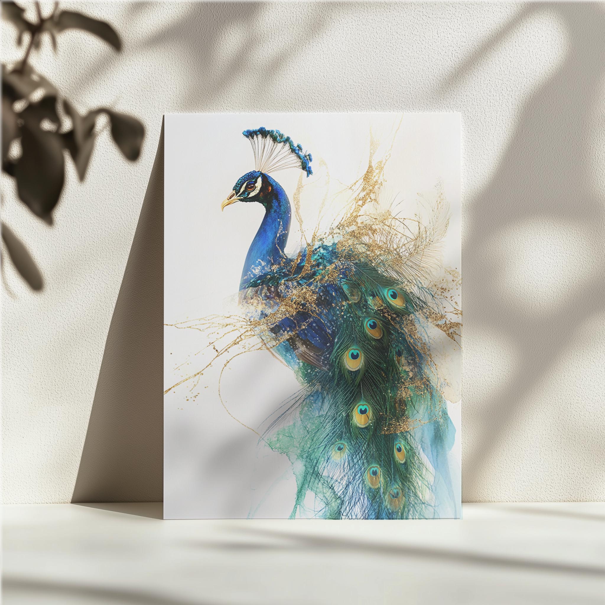 This breathtaking digital painting of a peacock combines realism with an ethereal, artistic flair. The vibrant blues and greens of the peacock’s feathers blend seamlessly with gold splashes, creating an almost magical effect. The soft, flowing textures add to the elegance, making this artwork an exquisite addition to luxurious or nature-inspired interiors. Perfect for those who appreciate beauty, grace, and regal aesthetics in art.