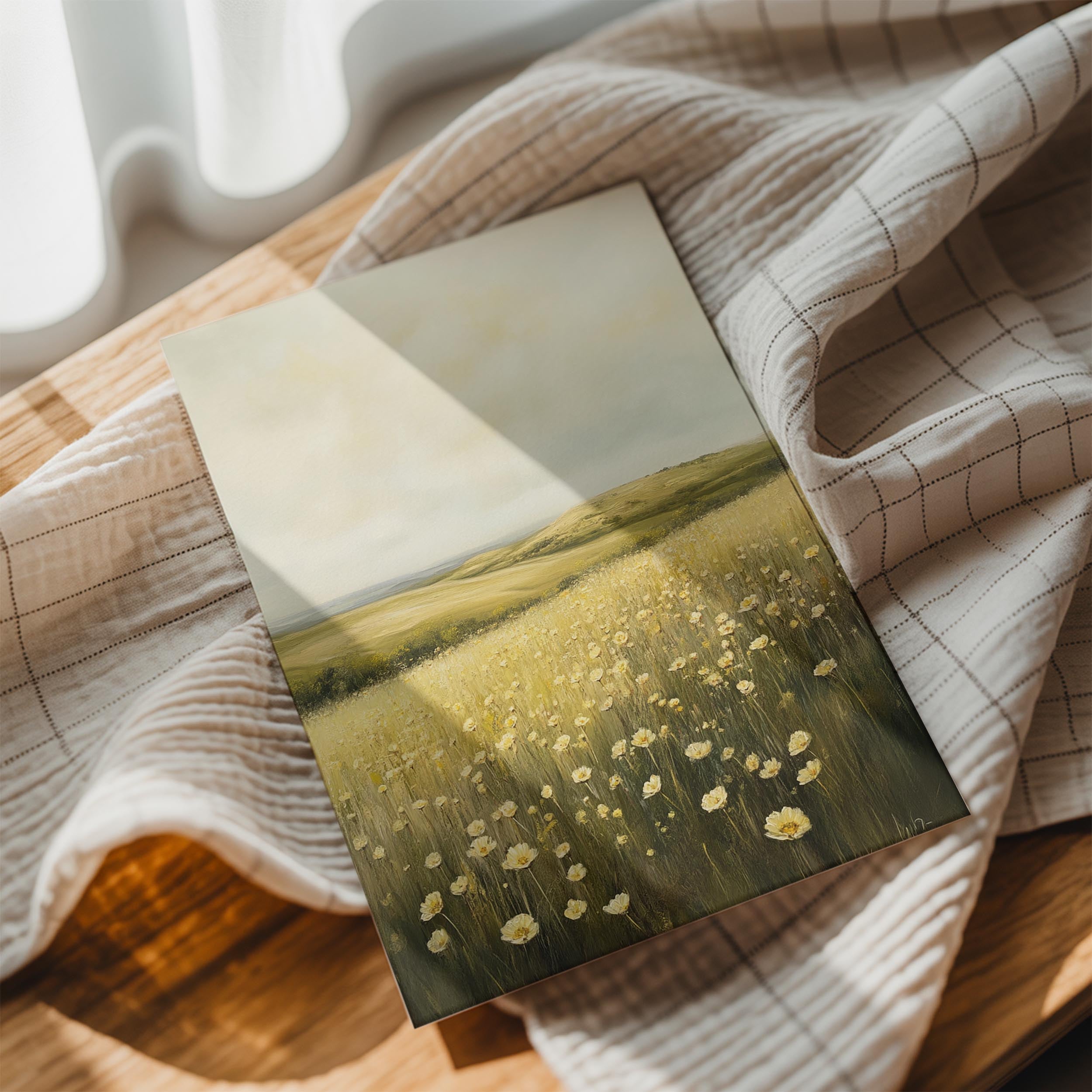 An expansive meadow filled with vibrant wildflowers stretches into the distance under a soft, cloudy sky. The image captures the diversity and beauty of nature, with the delicate flowers swaying in the gentle breeze, exuding a sense of vitality and serenity.