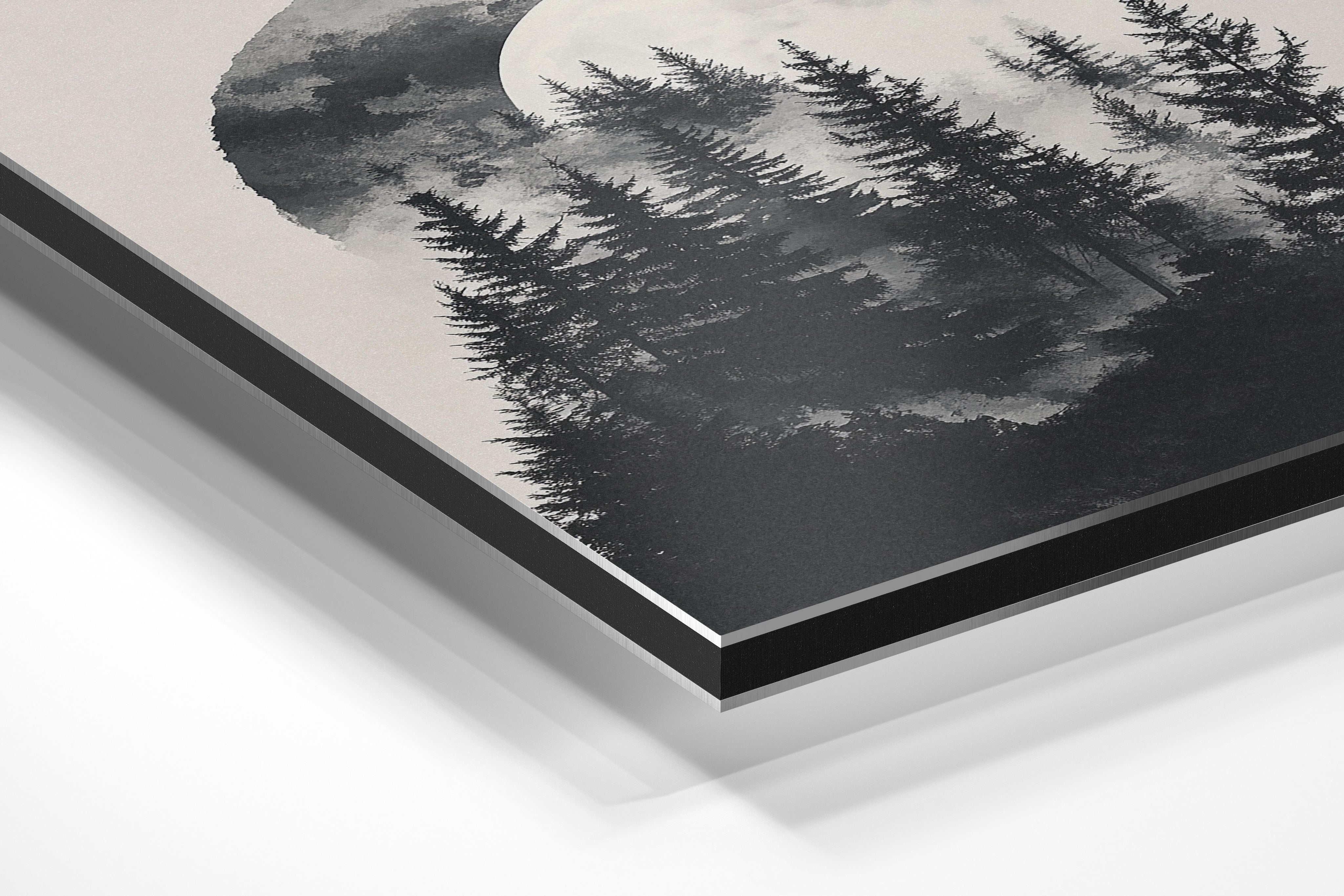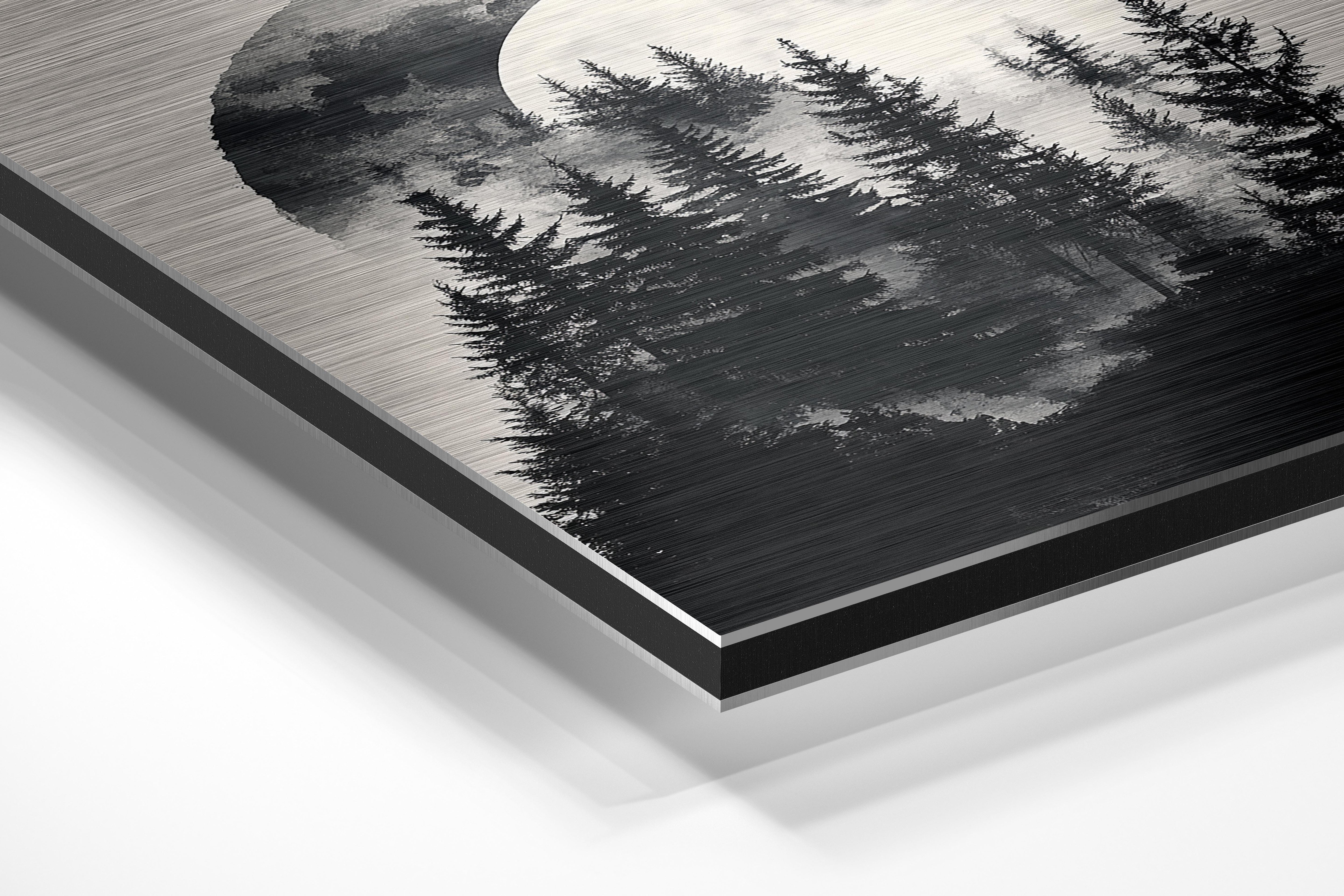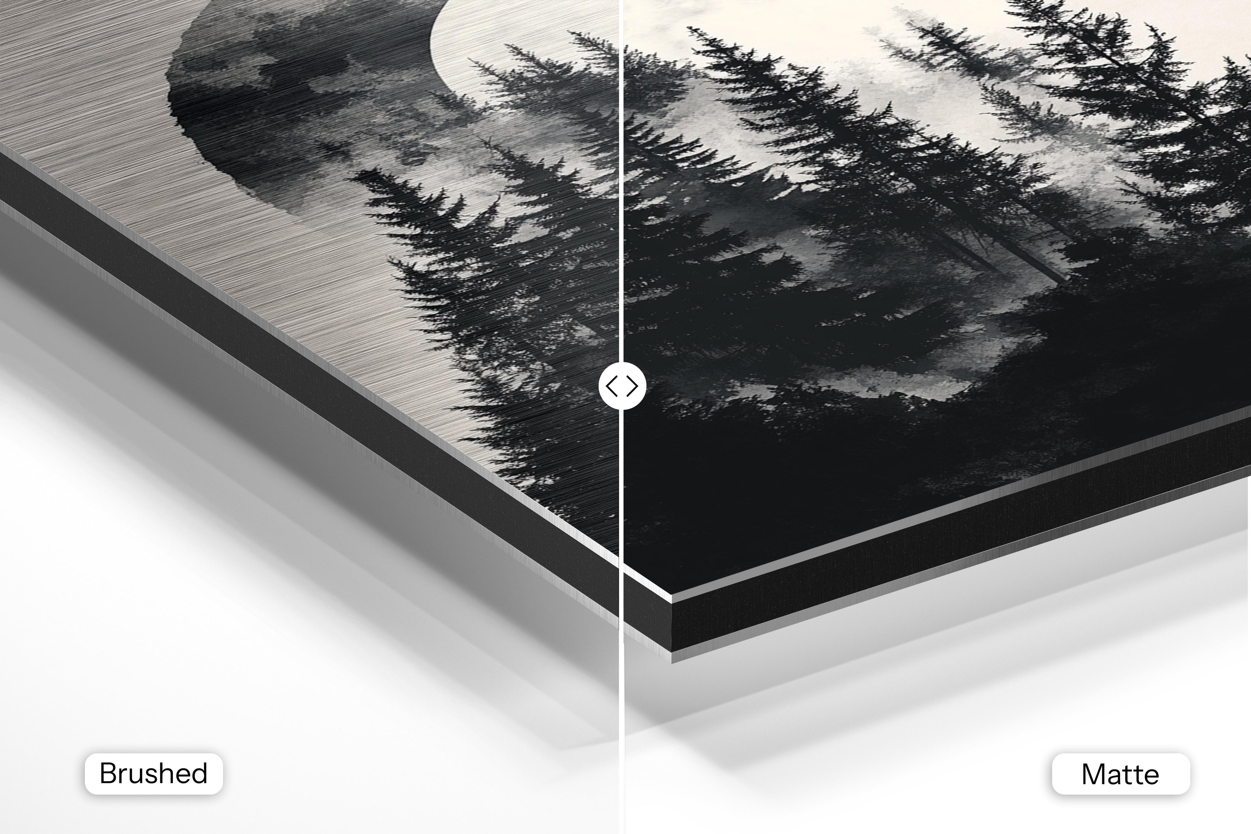 - Brushed Aluminum, on the other hand, features a raw metallic texture with visible brush strokes. Whites and highlights in your image let the silver surface show through, adding a dramatic, shimmering effect. Ideal for black-and-white images, minimalist designs, or abstract art, it creates a bold, industrial vibe with a modern edge.