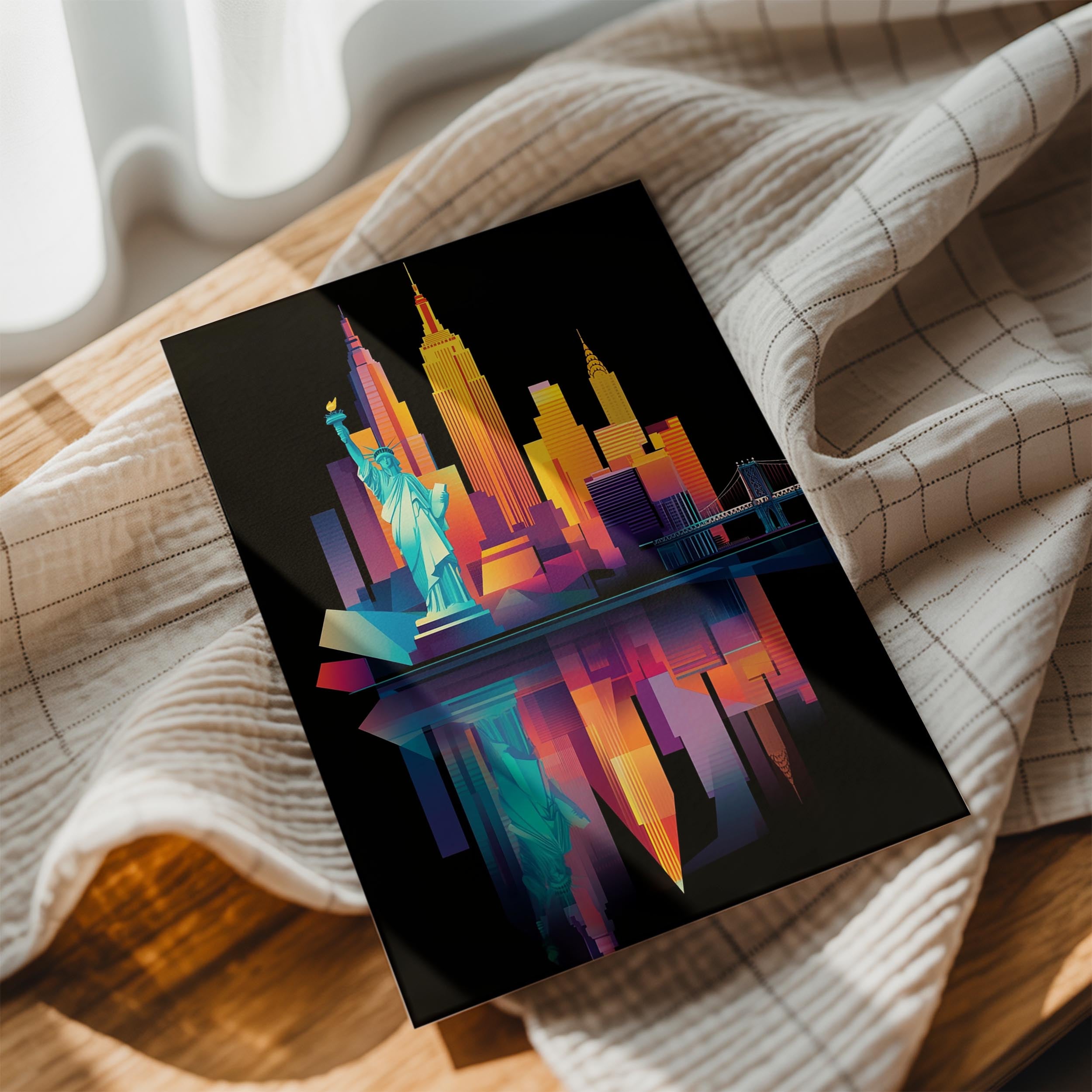 A vibrant and modern artistic interpretation of New York City, this pop-art-inspired piece showcases the skyline in bold, dynamic colors. Featuring the Statue of Liberty and iconic skyscrapers, the energetic hues create a contemporary urban aesthetic. This artwork is perfect for those who appreciate cityscapes with a modern artistic twist. It makes a great centerpiece for a stylish loft, creative workspace, or anywhere that calls for a splash of color and urban energy.
