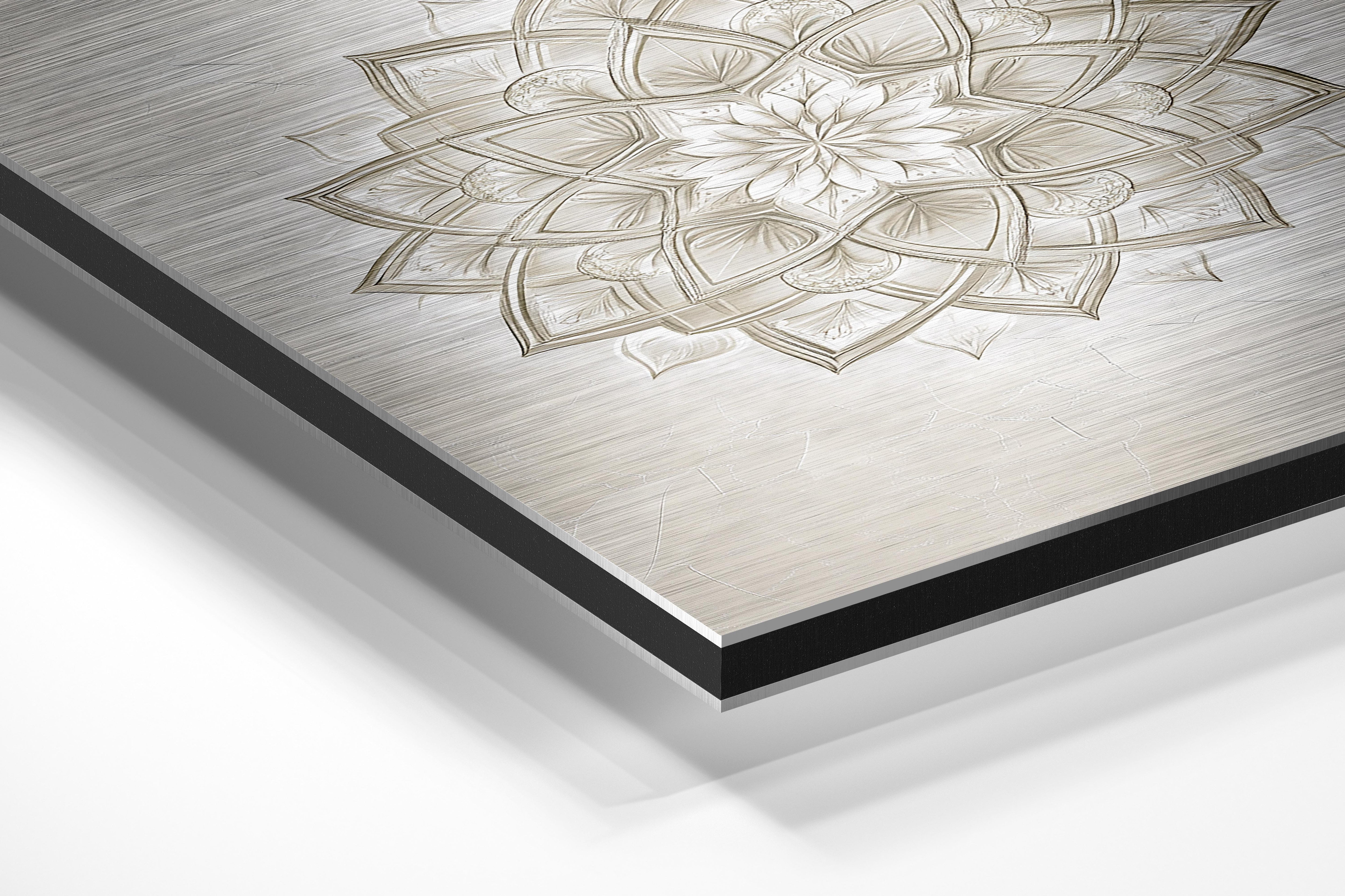 - Brushed Aluminum, on the other hand, features a raw metallic texture with visible brush strokes. Whites and highlights in your image let the silver surface show through, adding a dramatic, shimmering effect. Ideal for black-and-white images, minimalist designs, or abstract art, it creates a bold, industrial vibe with a modern edge.