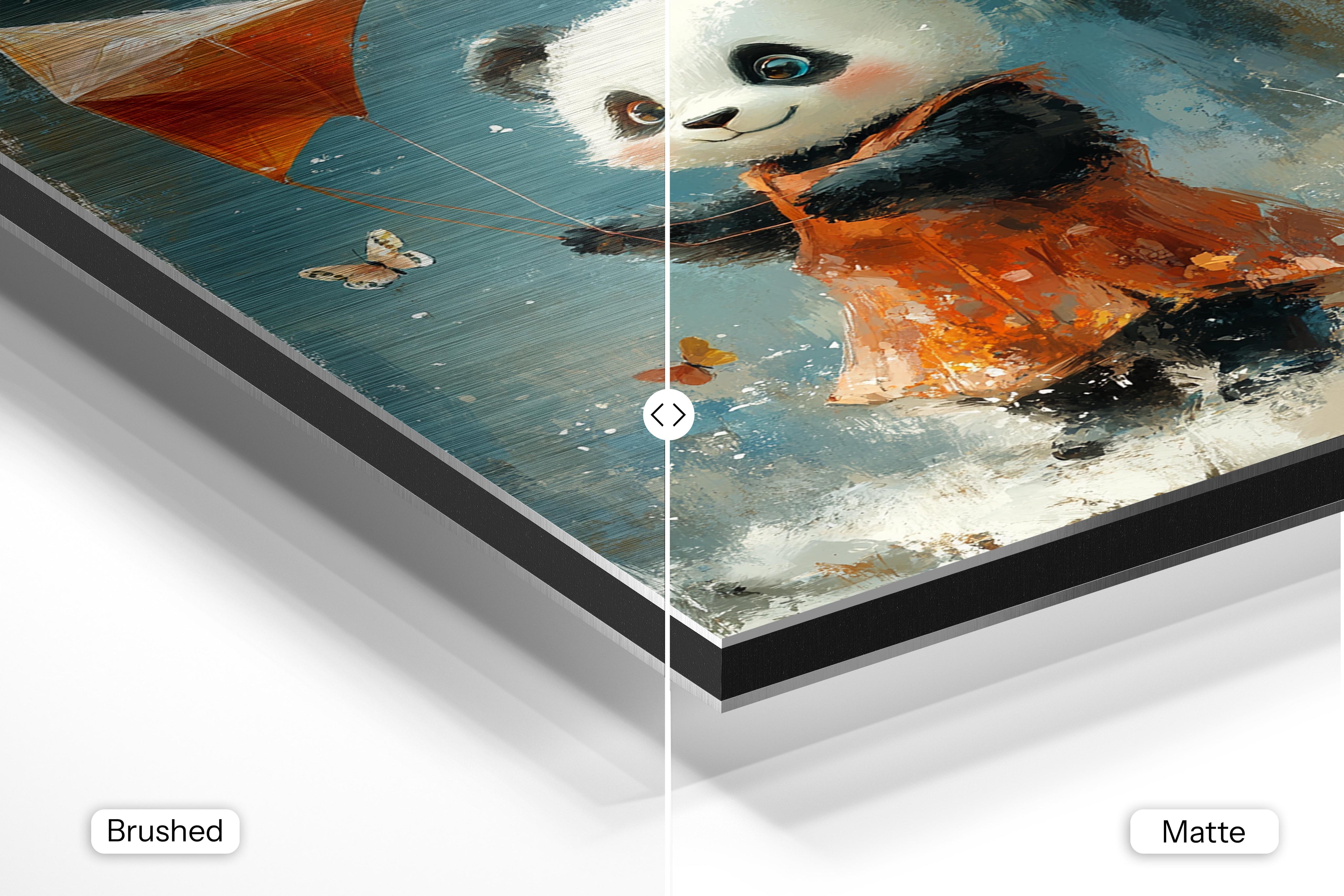 - Matte Aluminum offers a smooth, bright white surface that delivers crisp details and vibrant, true-to-life colors. With its non-reflective finish and subtle silky sheen, it’s perfect for photography, portraits, and colorful artwork—bringing a clean, polished look to any interior.