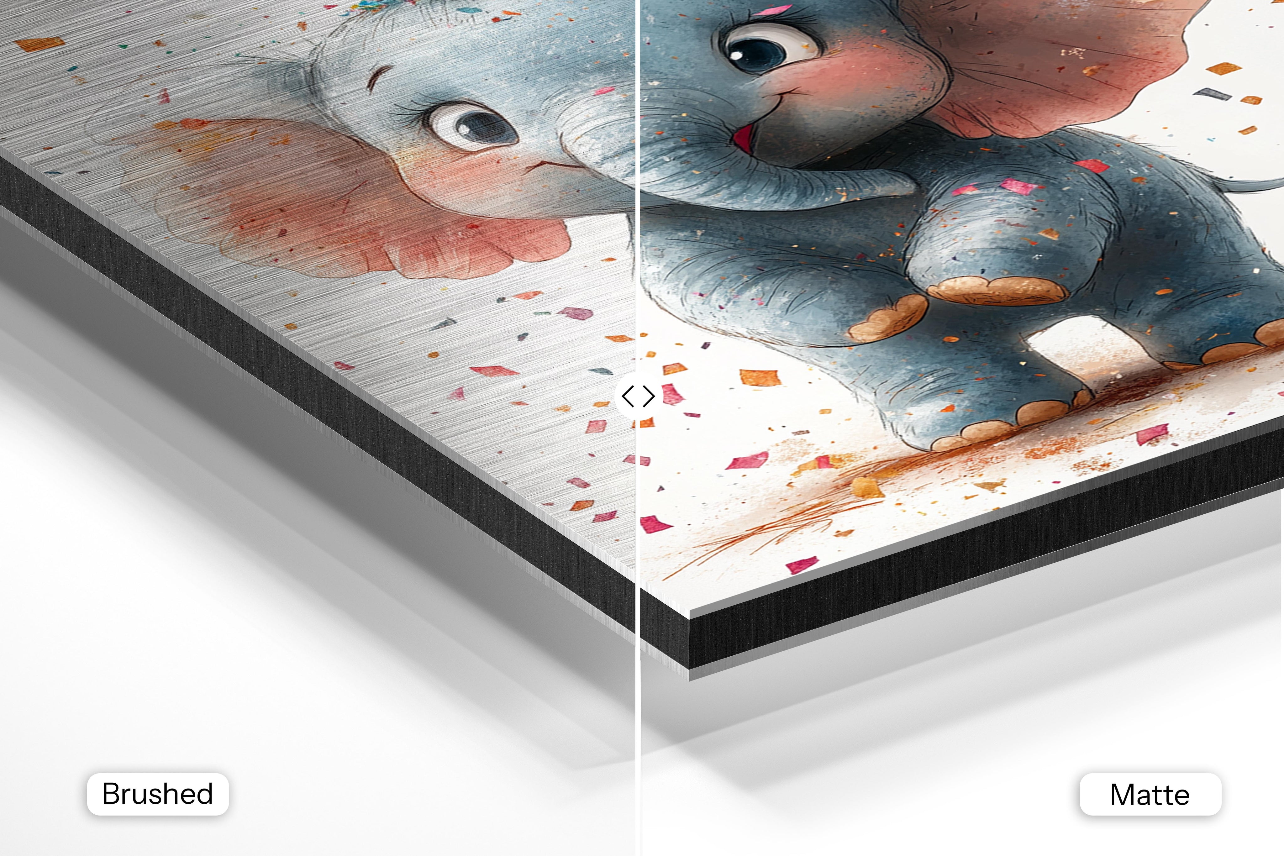 - Brushed Aluminum, on the other hand, features a raw metallic texture with visible brush strokes. Whites and highlights in your image let the silver surface show through, adding a dramatic, shimmering effect. Ideal for black-and-white images, minimalist designs, or abstract art, it creates a bold, industrial vibe with a modern edge.