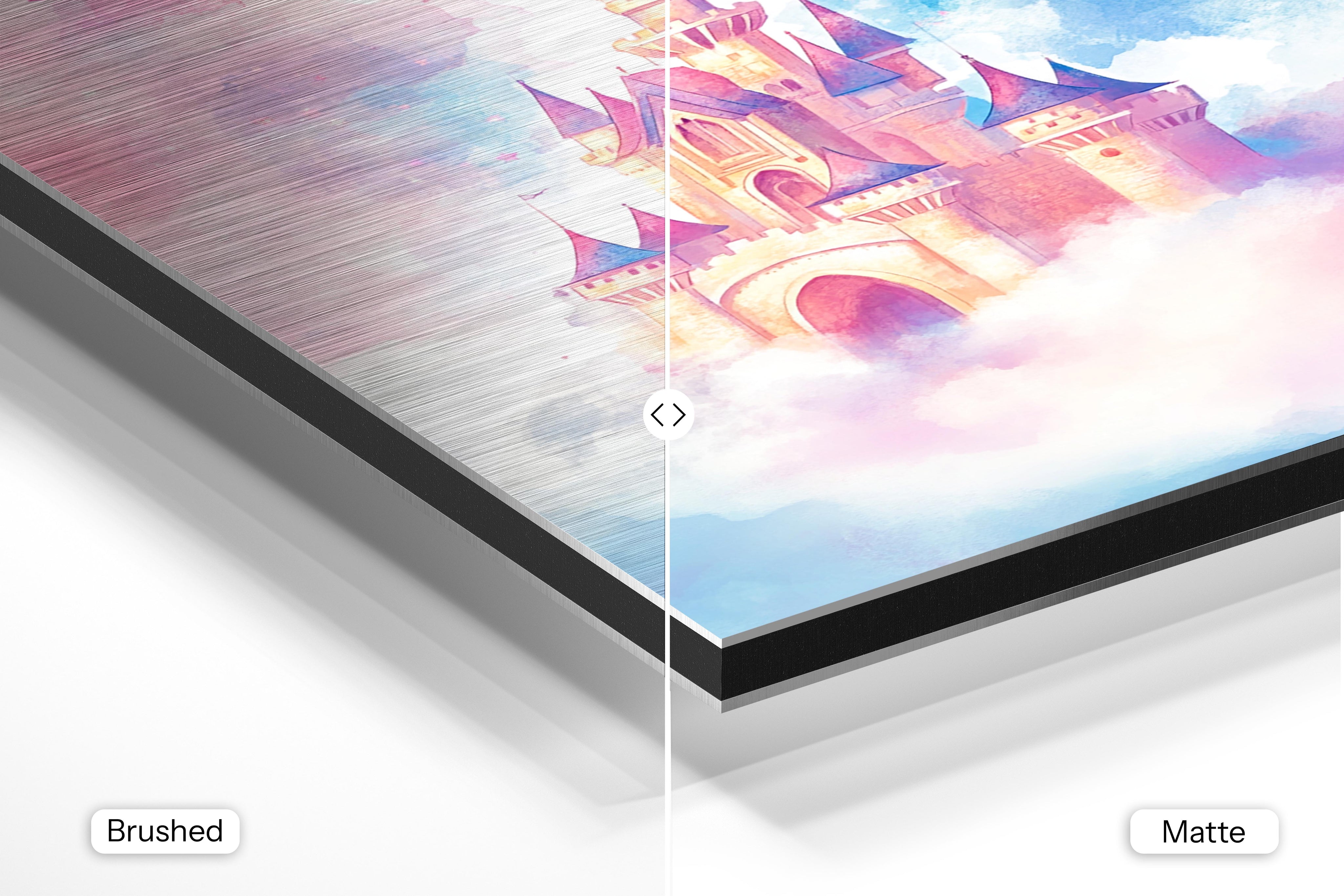 - Matte Aluminum offers a smooth, bright white surface that delivers crisp details and vibrant, true-to-life colors. With its non-reflective finish and subtle silky sheen, it’s perfect for photography, portraits, and colorful artwork—bringing a clean, polished look to any interior.