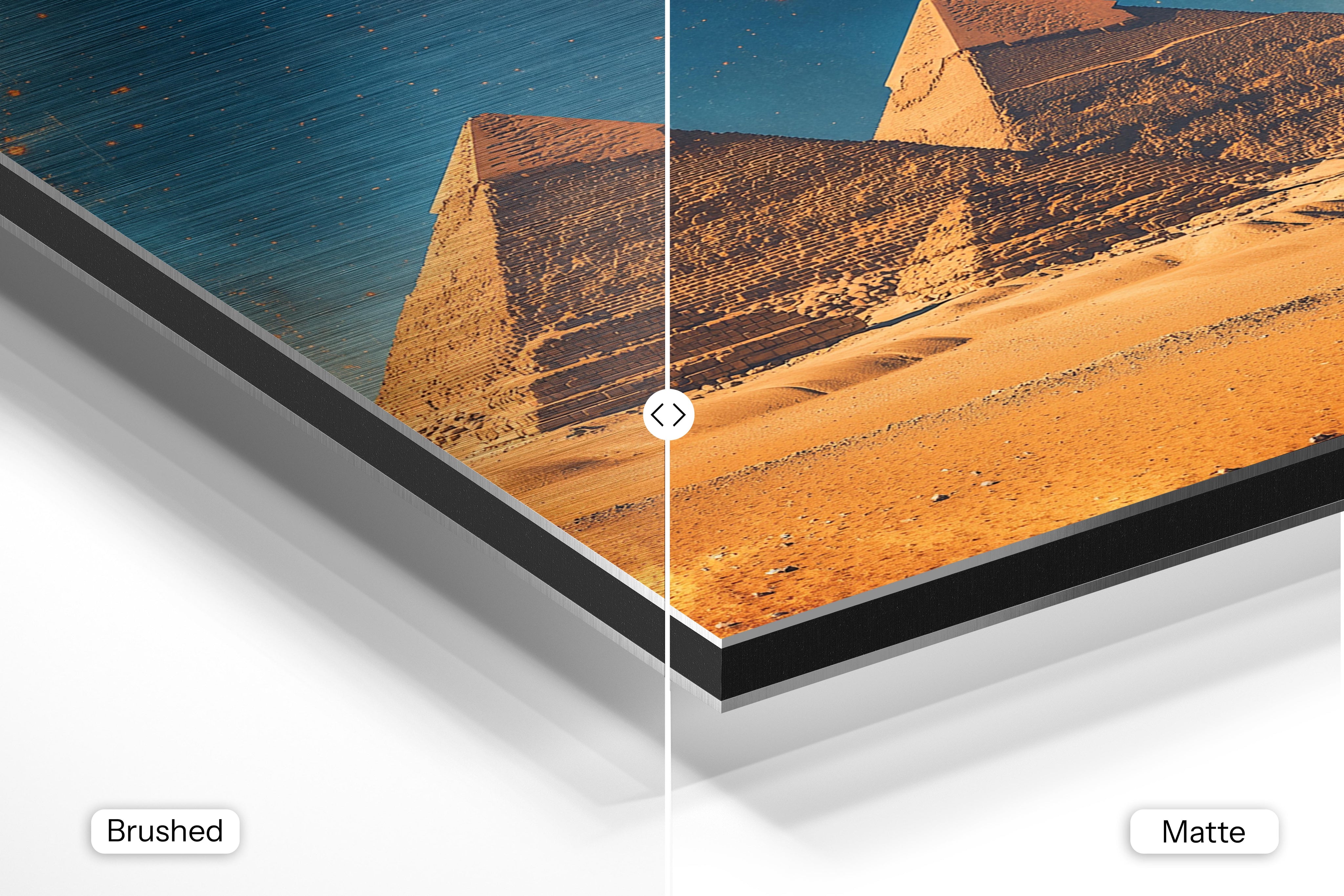 - Matte Aluminum offers a smooth, bright white surface that delivers crisp details and vibrant, true-to-life colors. With its non-reflective finish and subtle silky sheen, it’s perfect for photography, portraits, and colorful artwork—bringing a clean, polished look to any interior.