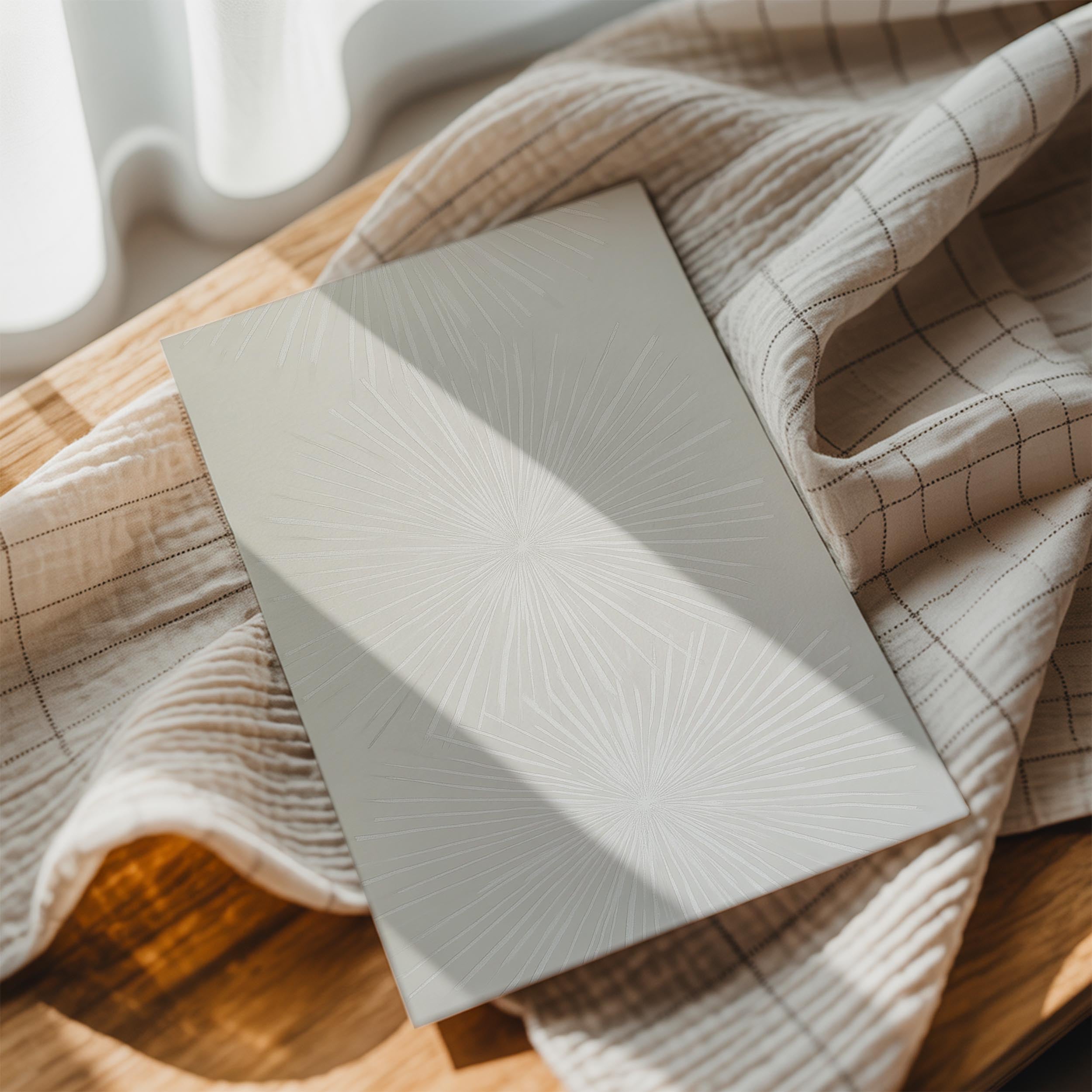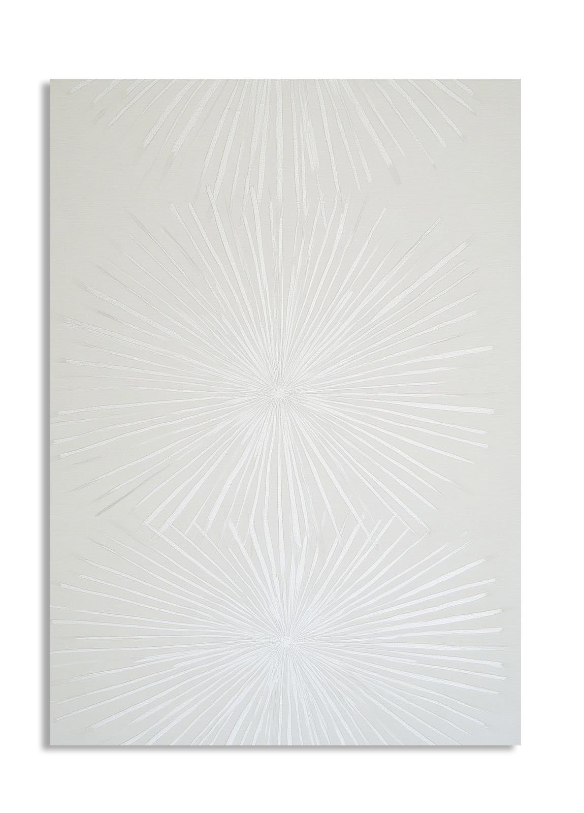 Depicting radiant white starburst-like patterns, this minimalist artwork conveys an uplifting energy. Its subtle yet striking design is well-suited for bright, airy spaces, offering a sense of calm and renewal. Ideal for settings that embrace clean, simple decor.