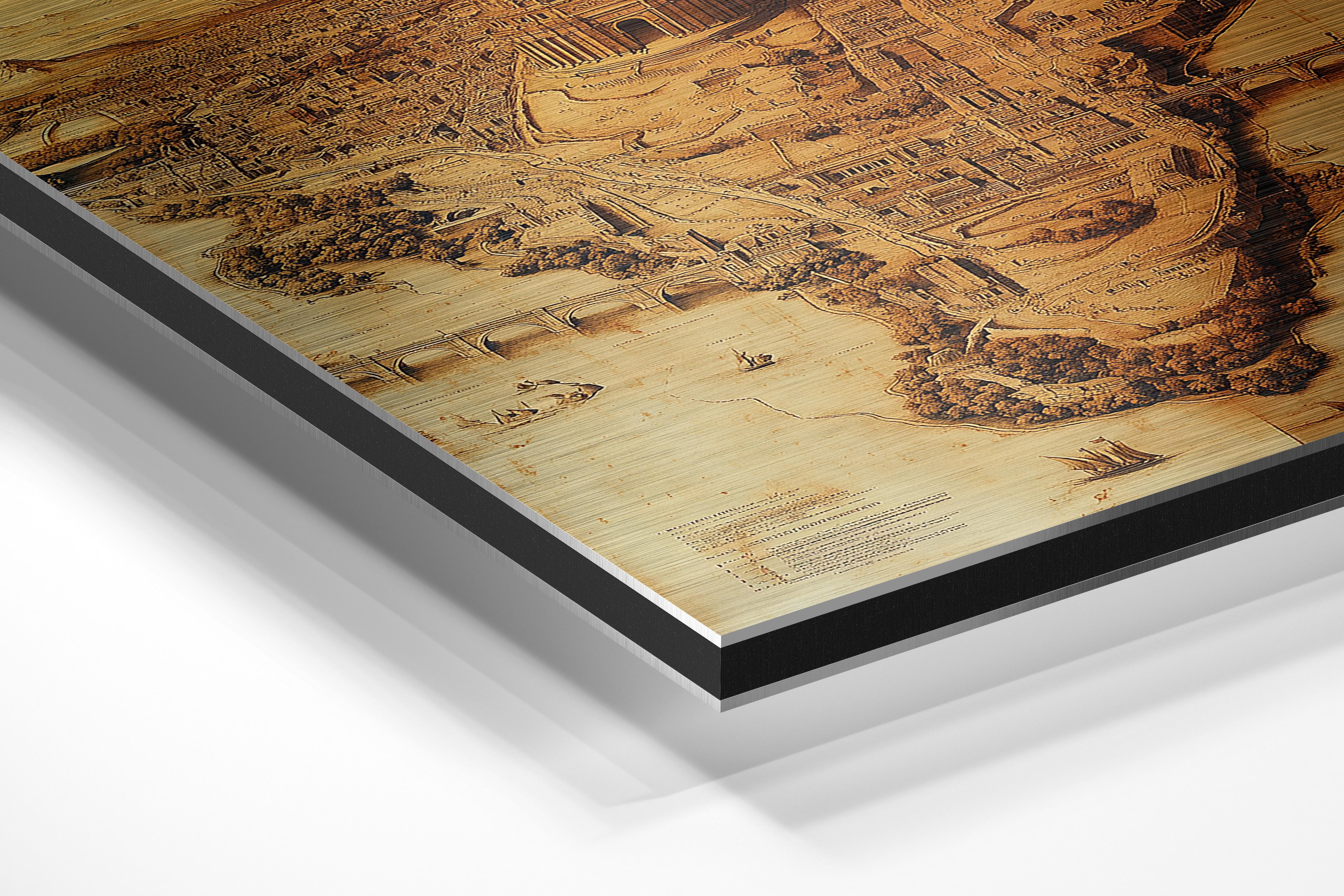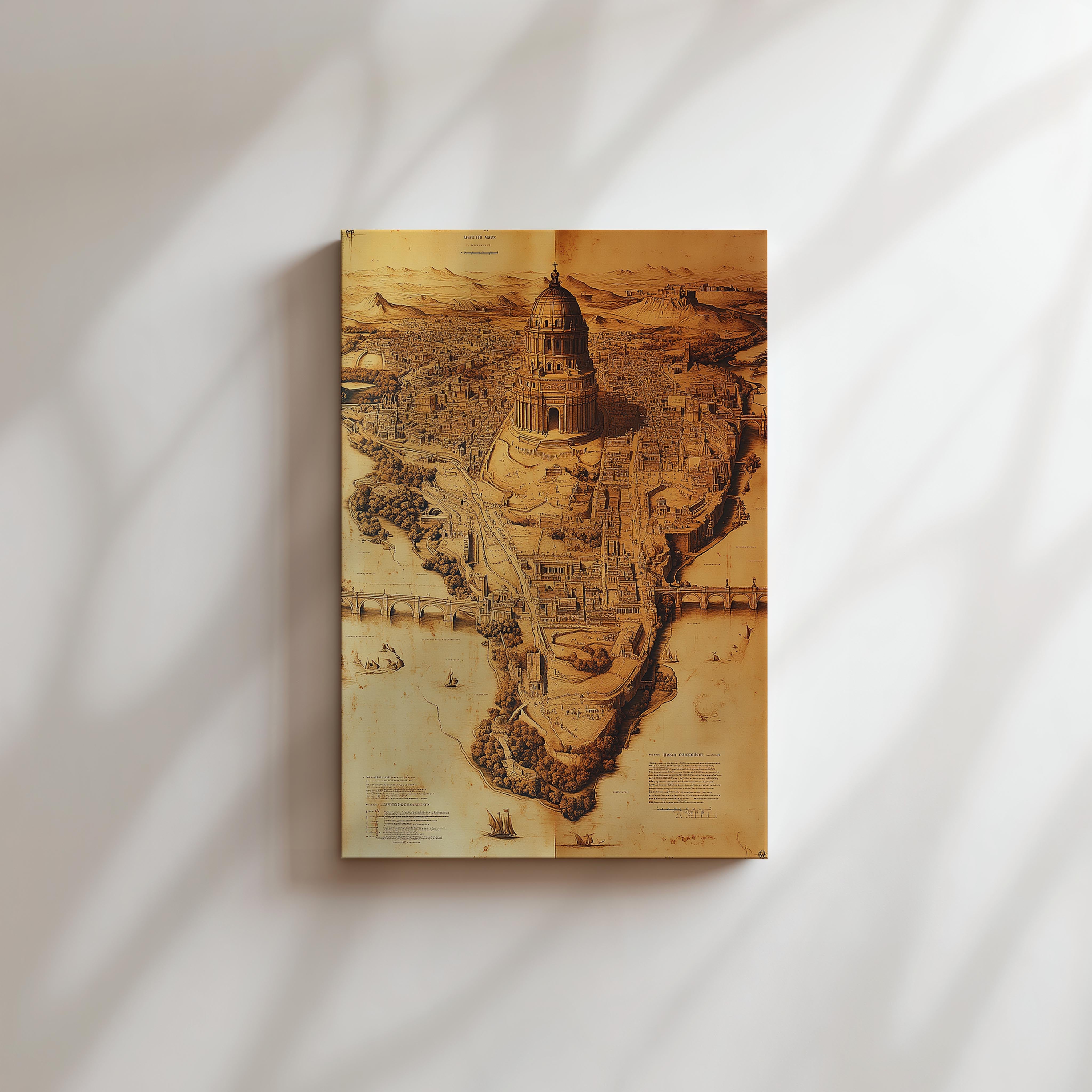 This detailed sepia-toned map of a historical city reveals intricacies of architectural and urban design. Its artistic quality and historical appeal make it an exceptional addition to libraries, offices, or spaces celebrating vintage aesthetics and history. It’s a great conversation starter for history enthusiasts.