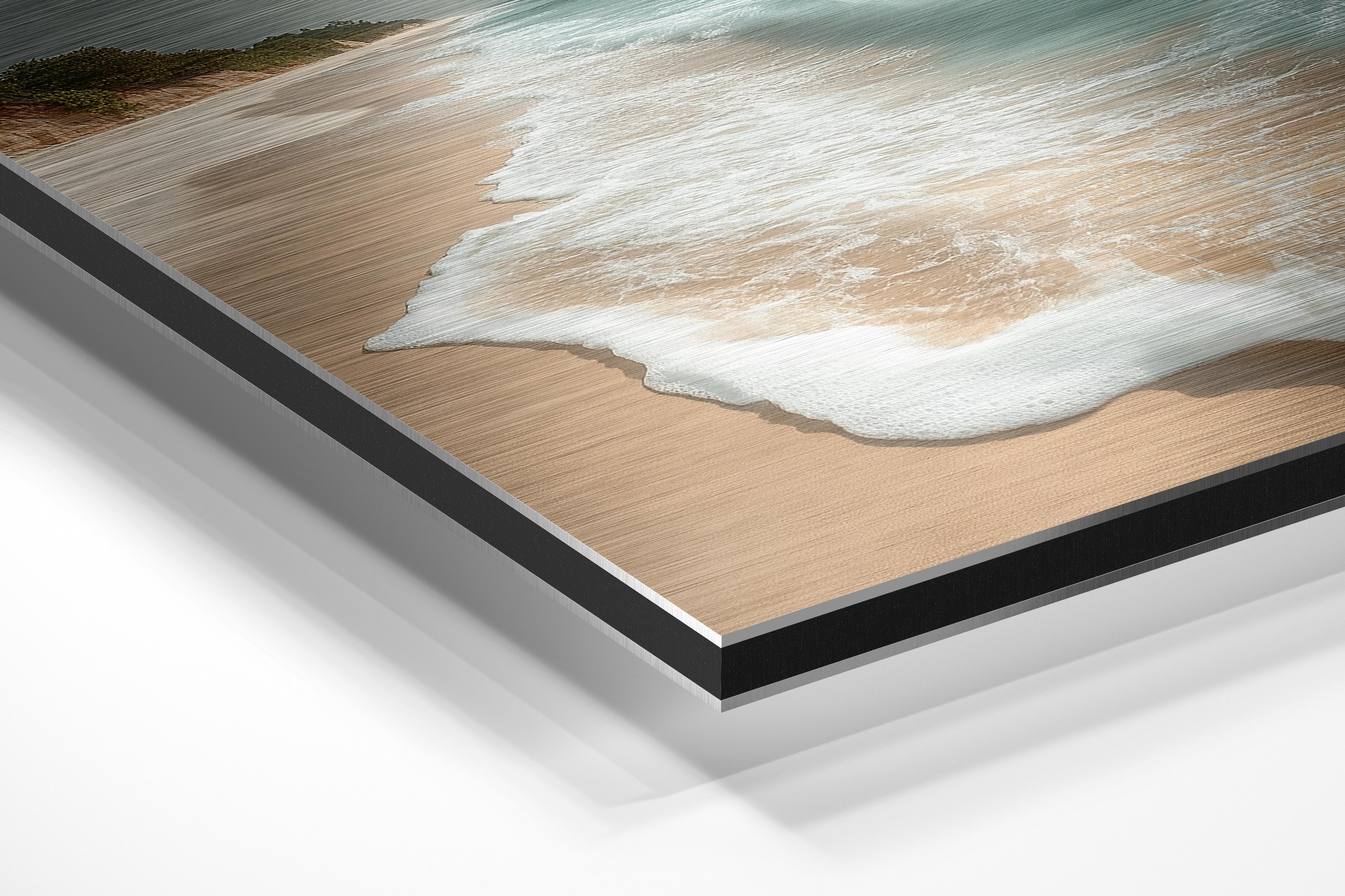 - Brushed Aluminum, on the other hand, features a raw metallic texture with visible brush strokes. Whites and highlights in your image let the silver surface show through, adding a dramatic, shimmering effect. Ideal for black-and-white images, minimalist designs, or abstract art, it creates a bold, industrial vibe with a modern edge.