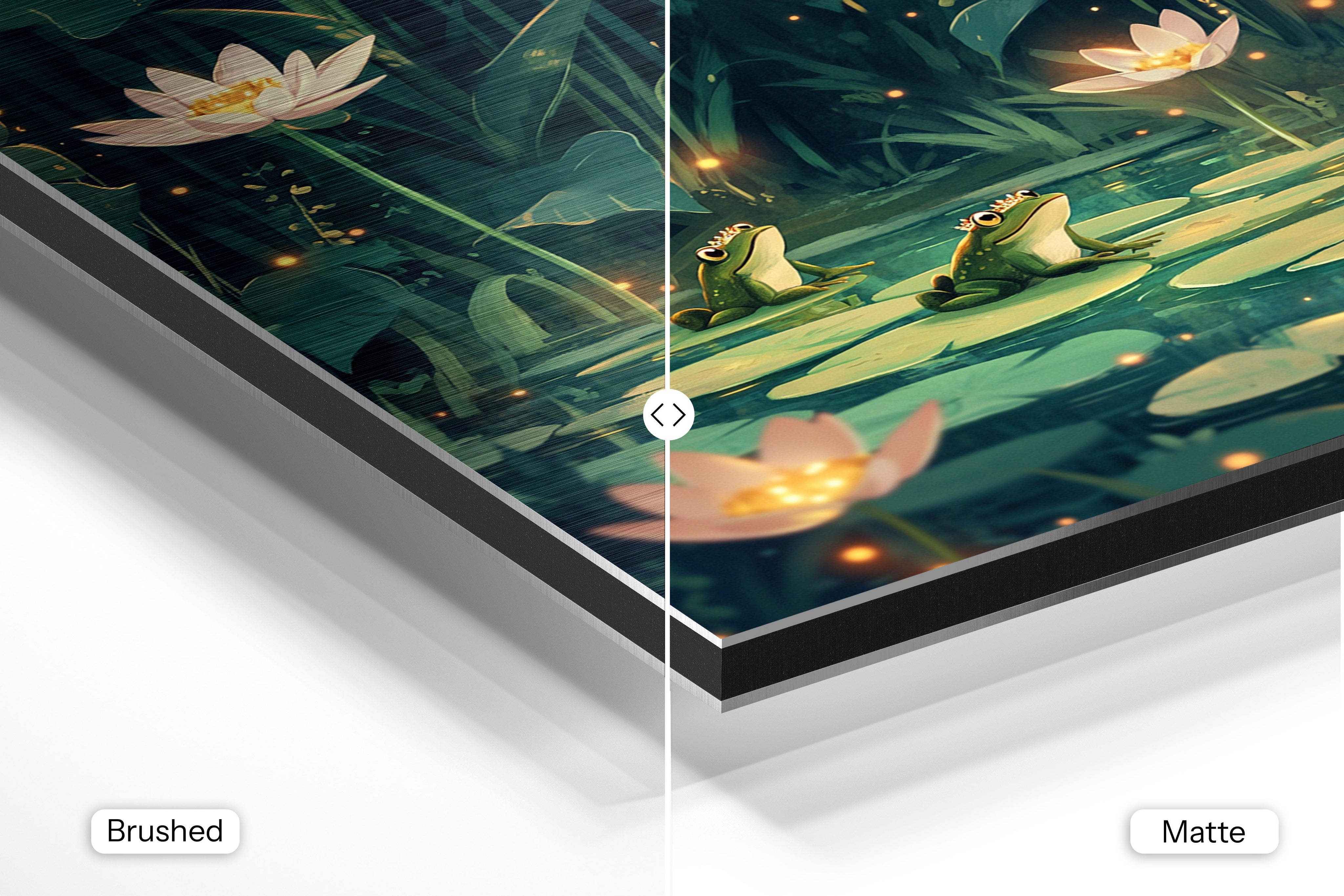 - Matte Aluminum offers a smooth, bright white surface that delivers crisp details and vibrant, true-to-life colors. With its non-reflective finish and subtle silky sheen, it’s perfect for photography, portraits, and colorful artwork—bringing a clean, polished look to any interior.