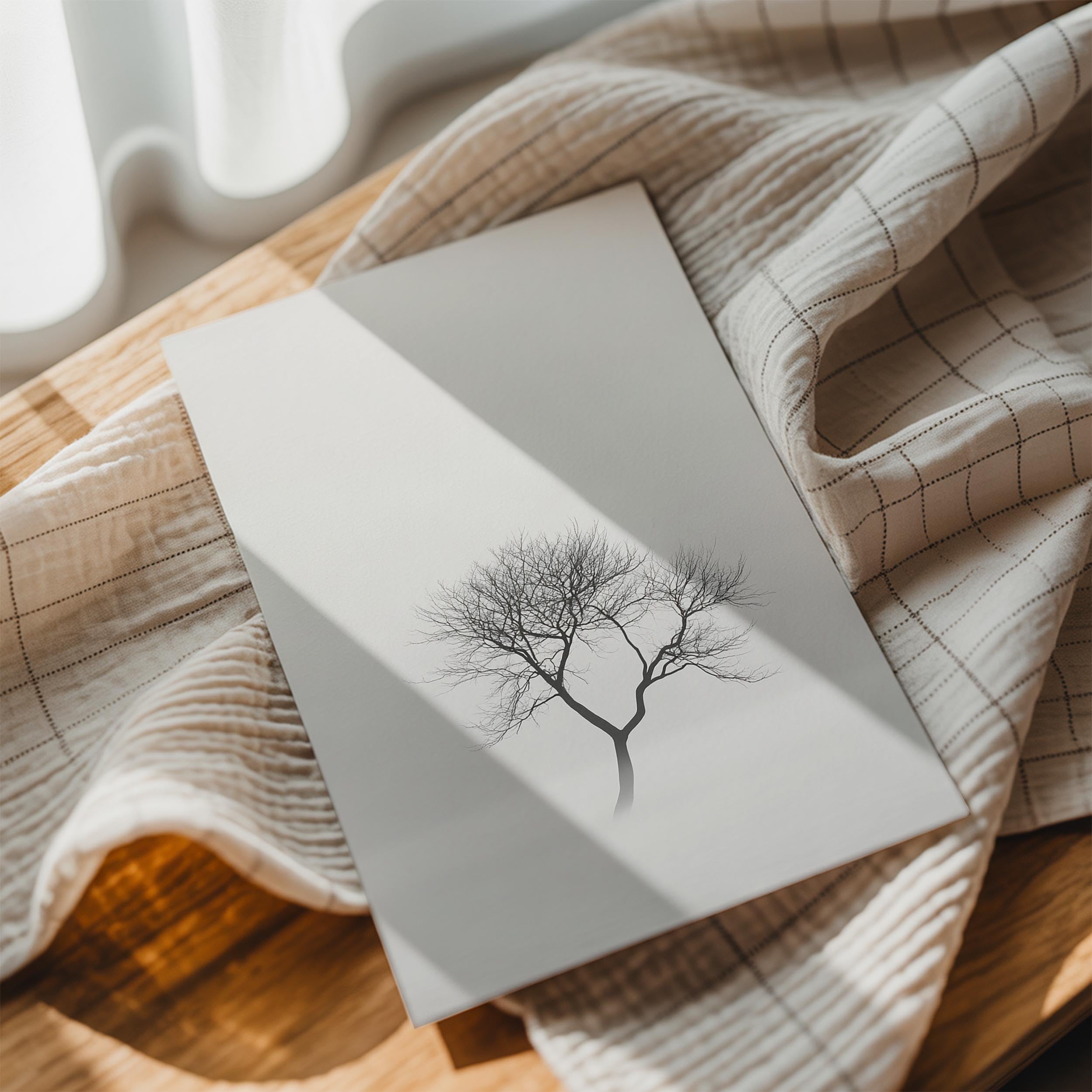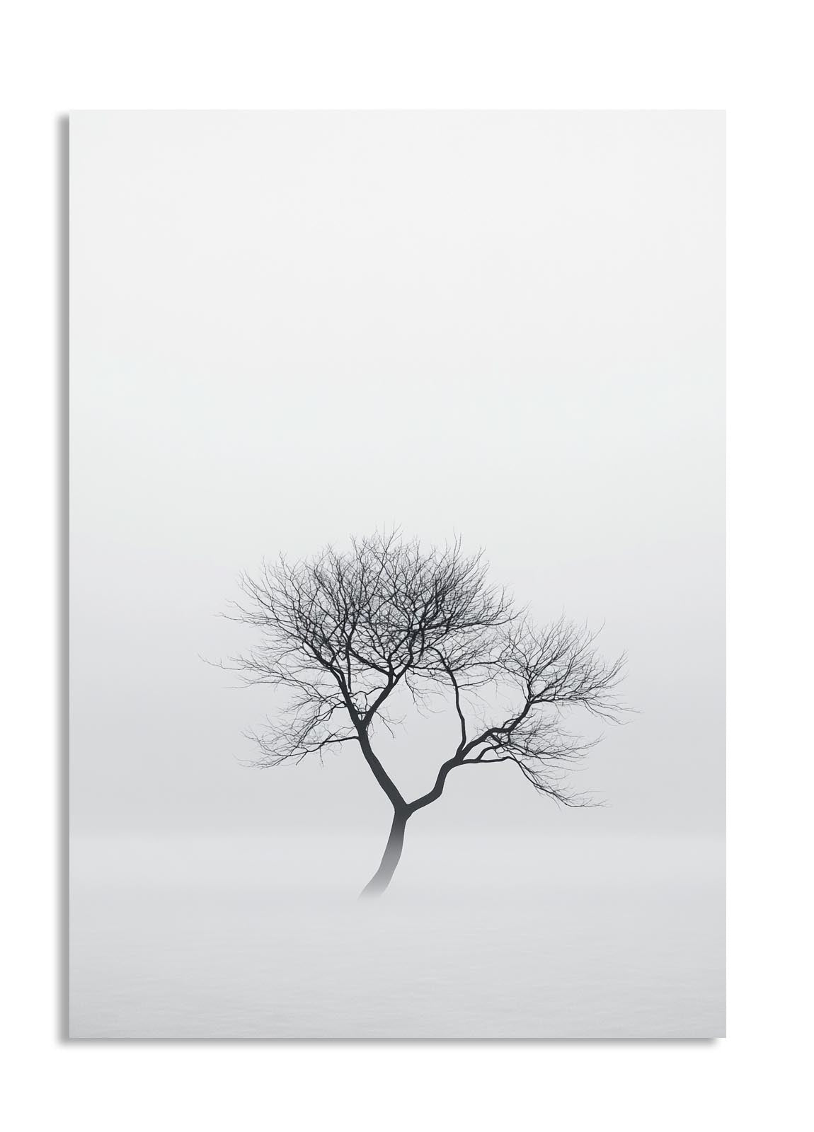 A hauntingly beautiful depiction of a solitary, windswept tree emerging from an endless mist. Its elegantly curved trunk and delicate, spindly branches create a sense of movement and resilience. The surrounding fog softens the composition, adding a dreamlike, almost surreal atmosphere. This piece is perfect for minimalist interiors, meditation rooms, or serene bedrooms, as it conveys a feeling of tranquility and introspection. The monochrome aesthetic ensures versatility, making it a striking addition to modern and nature-inspired spaces alike.