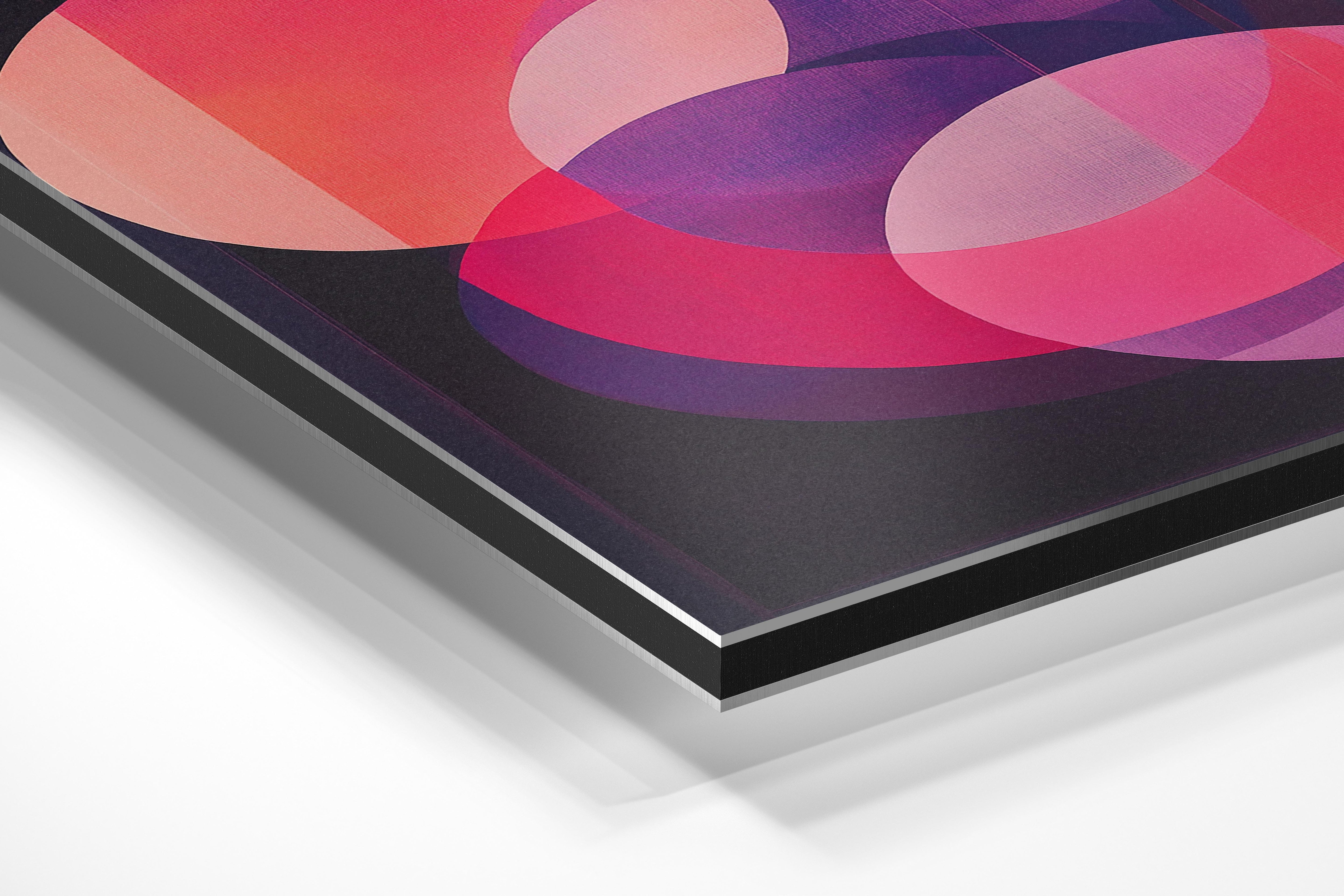 This abstract composition features bold, overlapping circles in vivid shades of pink, red, and purple. The interplay of colors creates a mesmerizing sense of depth and movement. Its radiant hues and layered geometry give it a modern, playful vibe. Perfect for contemporary interiors, it works well as a centerpiece in living rooms or office spaces, bringing energy and visual interest to the environment. A captivating choice for those who appreciate abstract art.