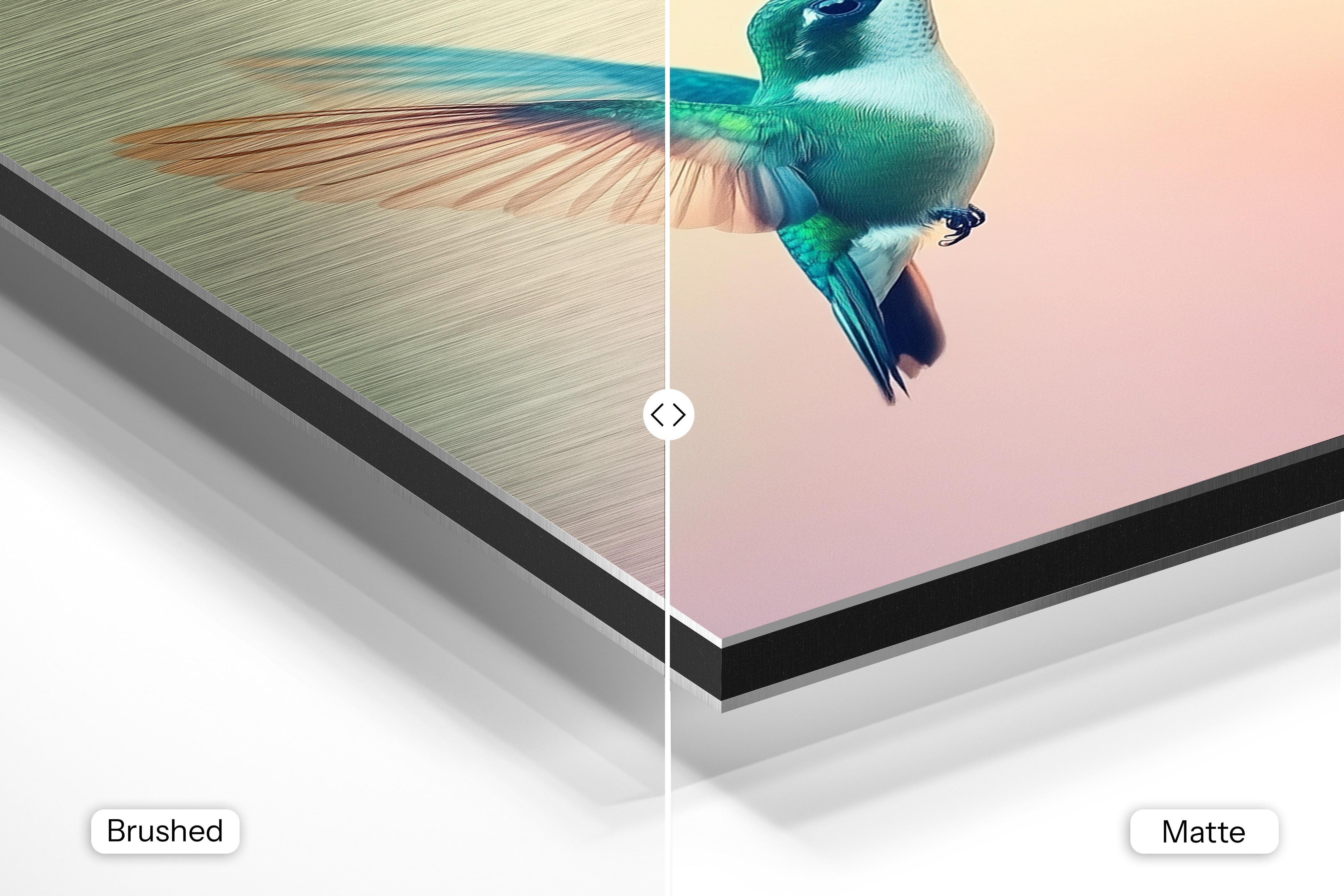 - Matte Aluminum offers a smooth, bright white surface that delivers crisp details and vibrant, true-to-life colors. With its non-reflective finish and subtle silky sheen, it’s perfect for photography, portraits, and colorful artwork—bringing a clean, polished look to any interior.