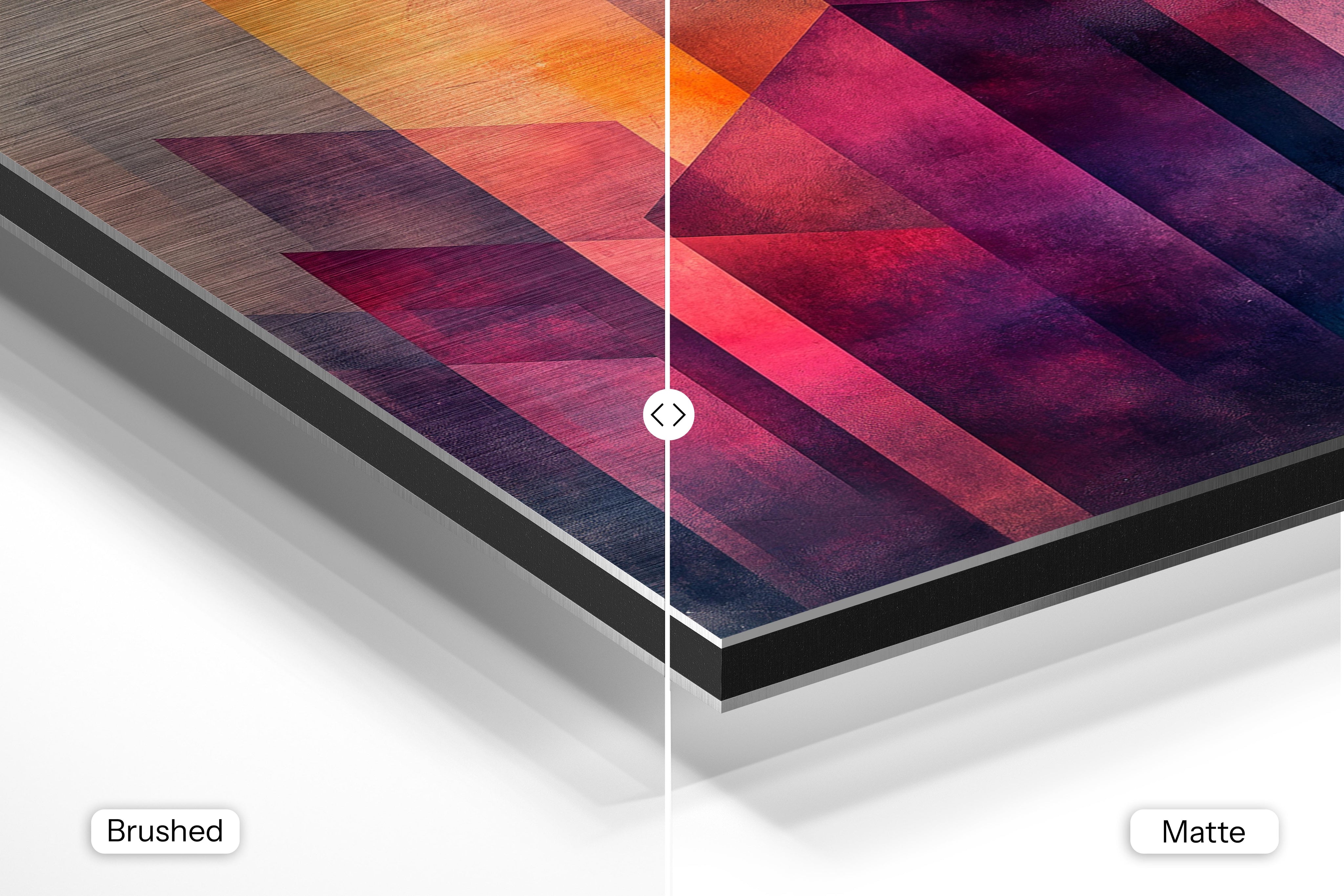 - Matte Aluminum offers a smooth, bright white surface that delivers crisp details and vibrant, true-to-life colors. With its non-reflective finish and subtle silky sheen, it’s perfect for photography, portraits, and colorful artwork—bringing a clean, polished look to any interior.