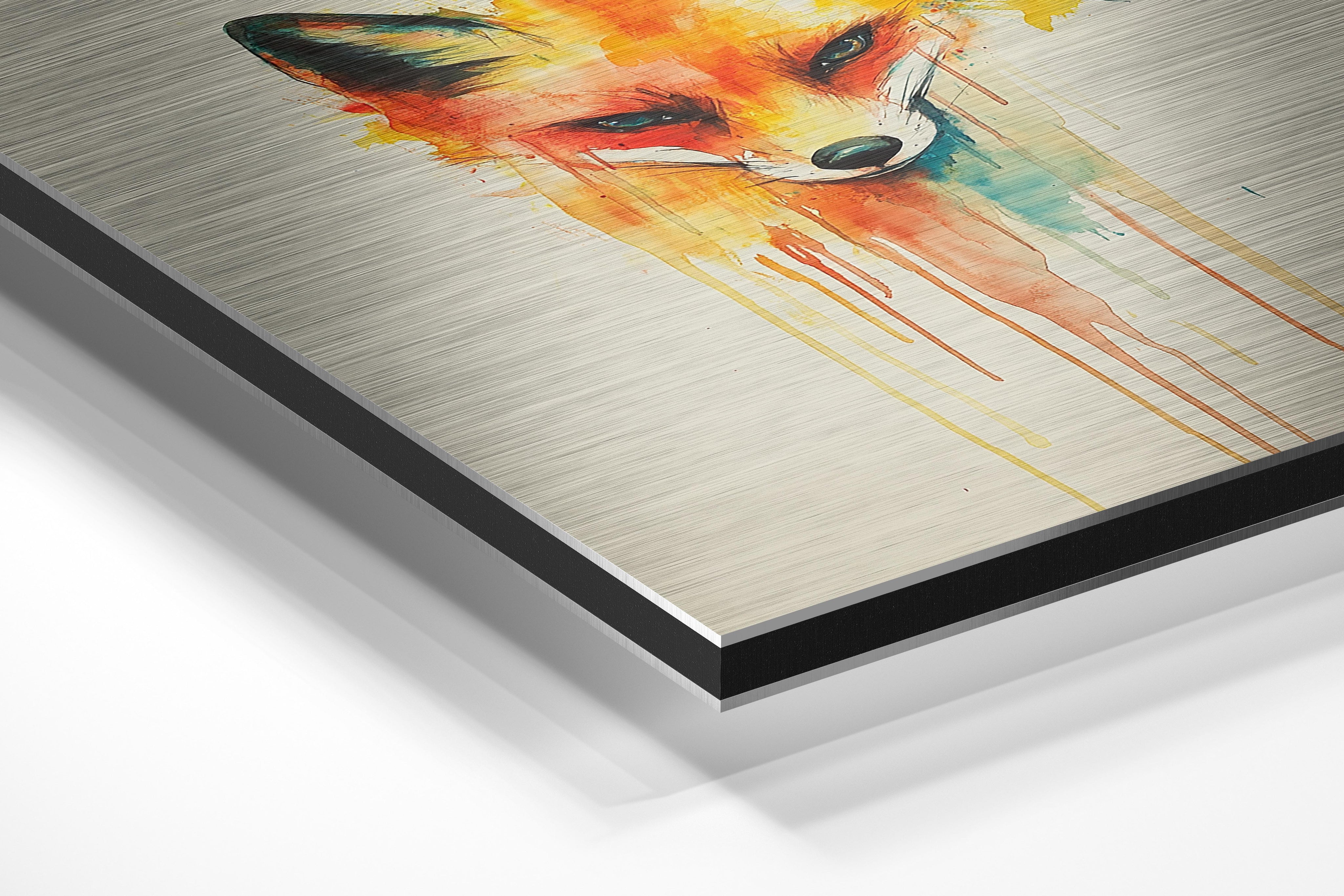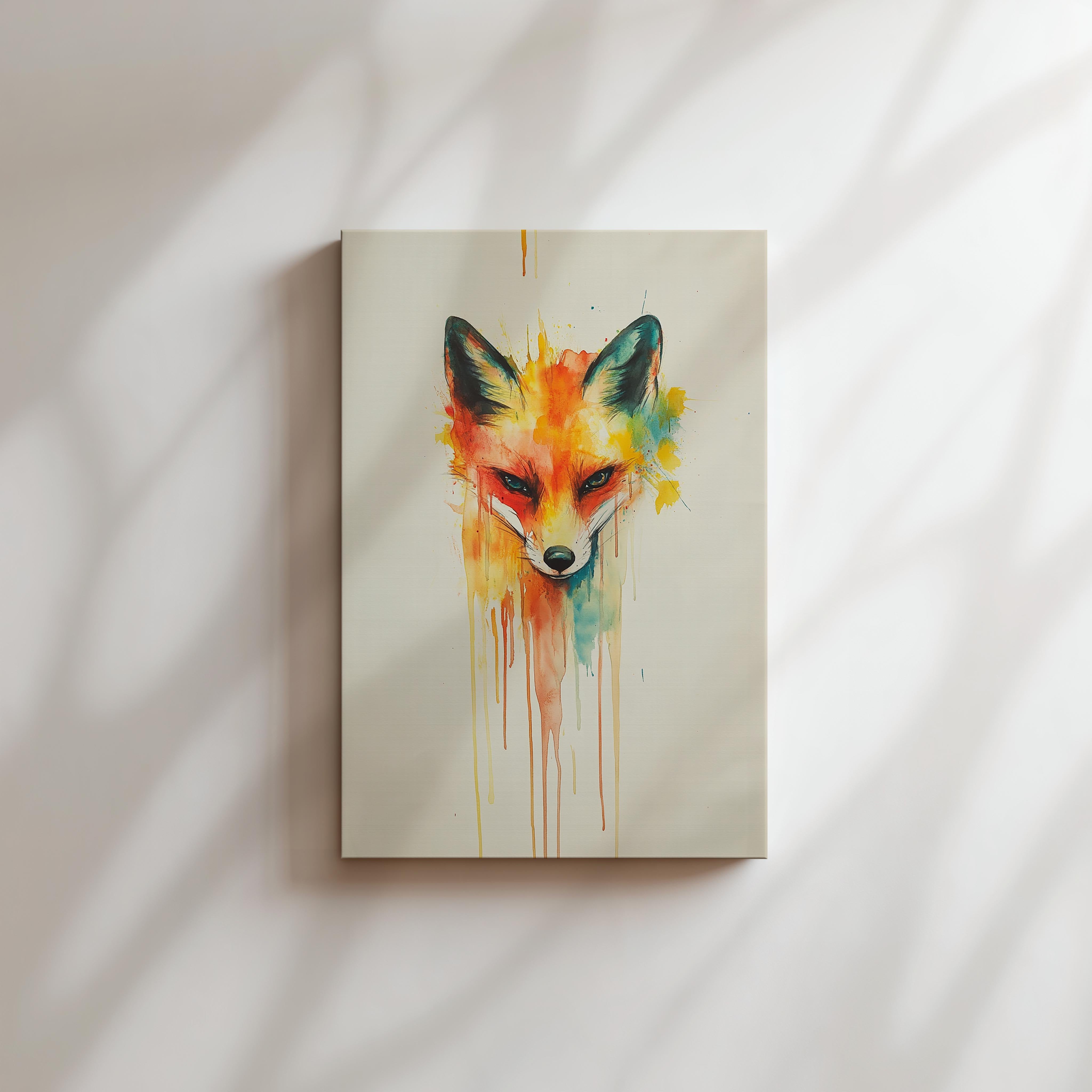 This expressive watercolor painting of a fox features rich, warm hues of red, orange, and yellow, with fluid paint drips that add a dynamic sense of movement. The piercing gaze of the fox gives it a charismatic yet enigmatic presence. The artistic brushwork makes it a perfect choice for lovers of bohemian, nature-inspired, or artistic interiors. Ideal for creative workspaces, nature-themed rooms, or as a statement piece in a modern, eclectic home.