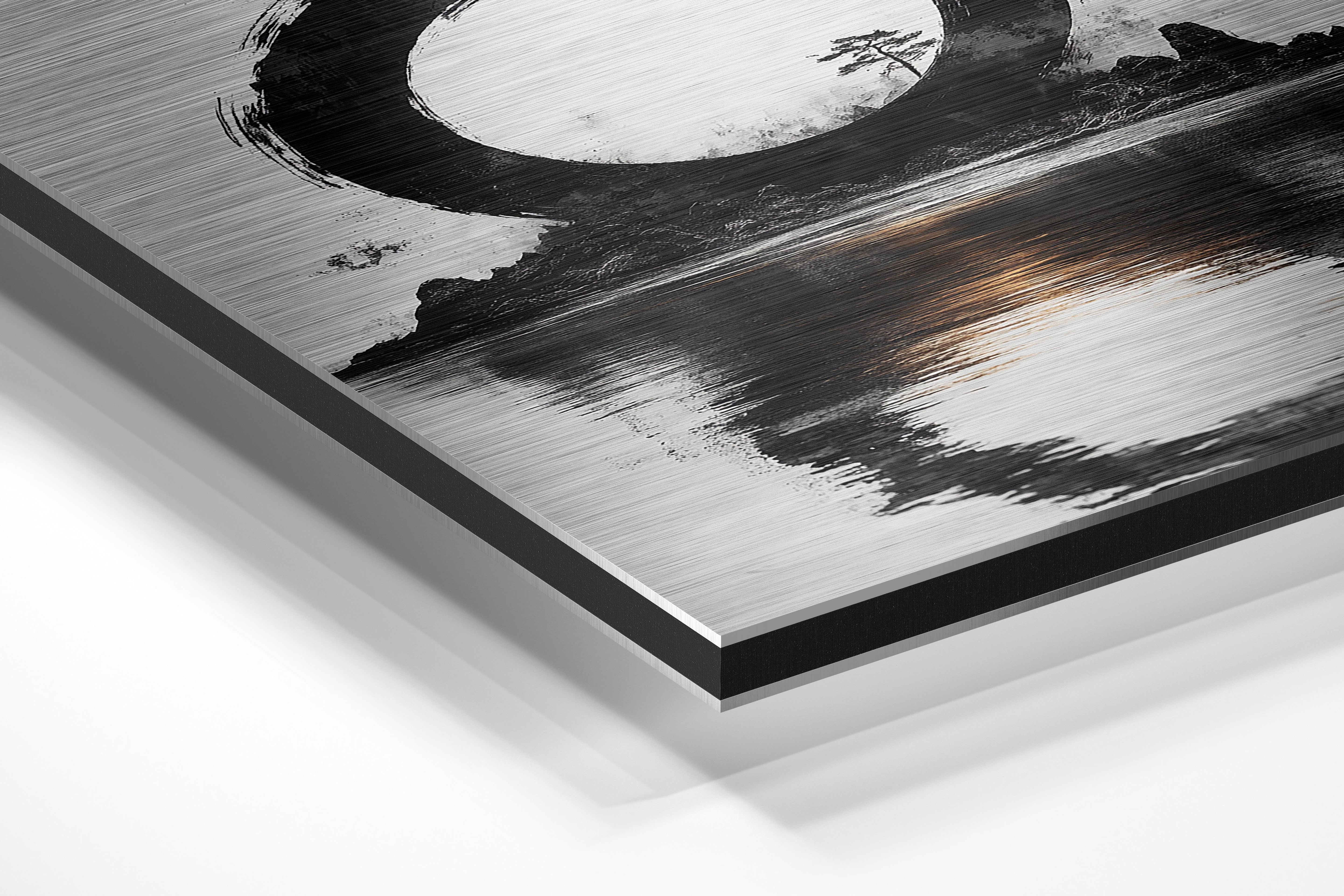 - Brushed Aluminum, on the other hand, features a raw metallic texture with visible brush strokes. Whites and highlights in your image let the silver surface show through, adding a dramatic, shimmering effect. Ideal for black-and-white images, minimalist designs, or abstract art, it creates a bold, industrial vibe with a modern edge.