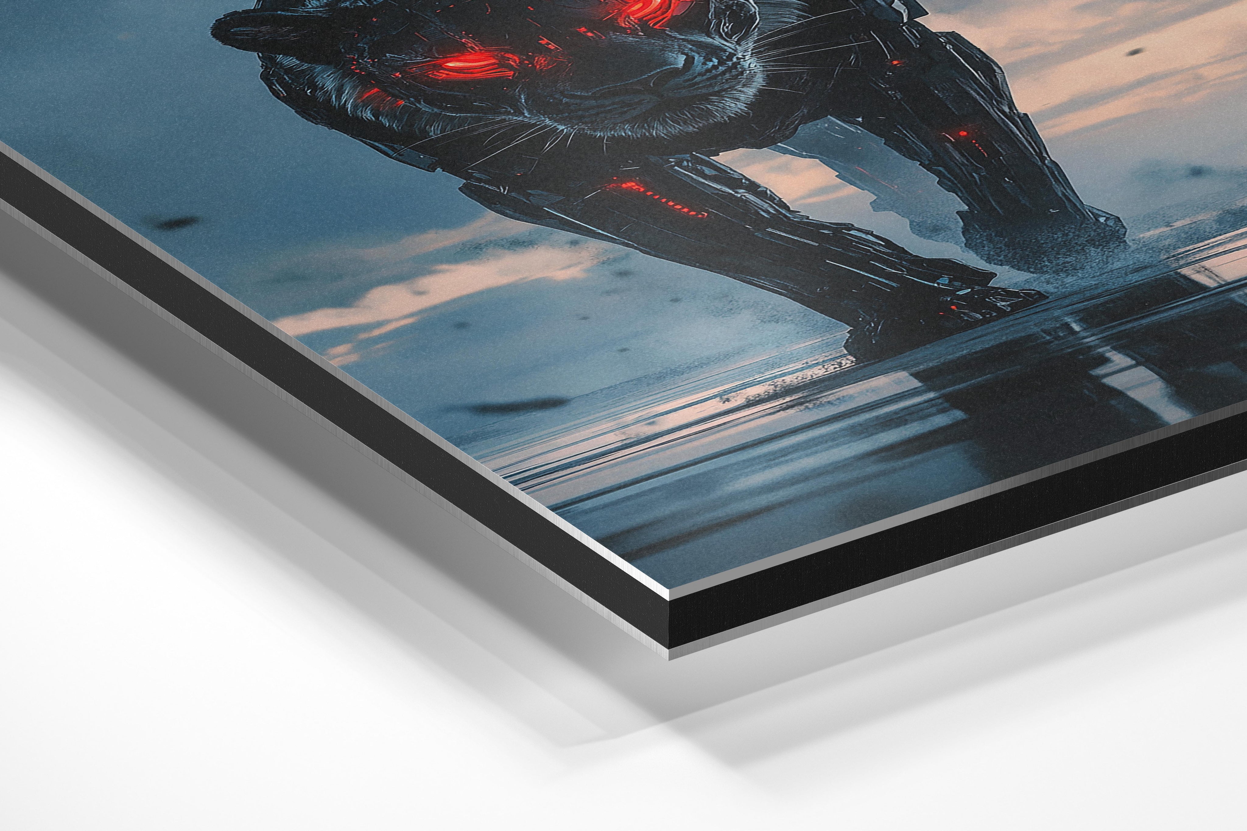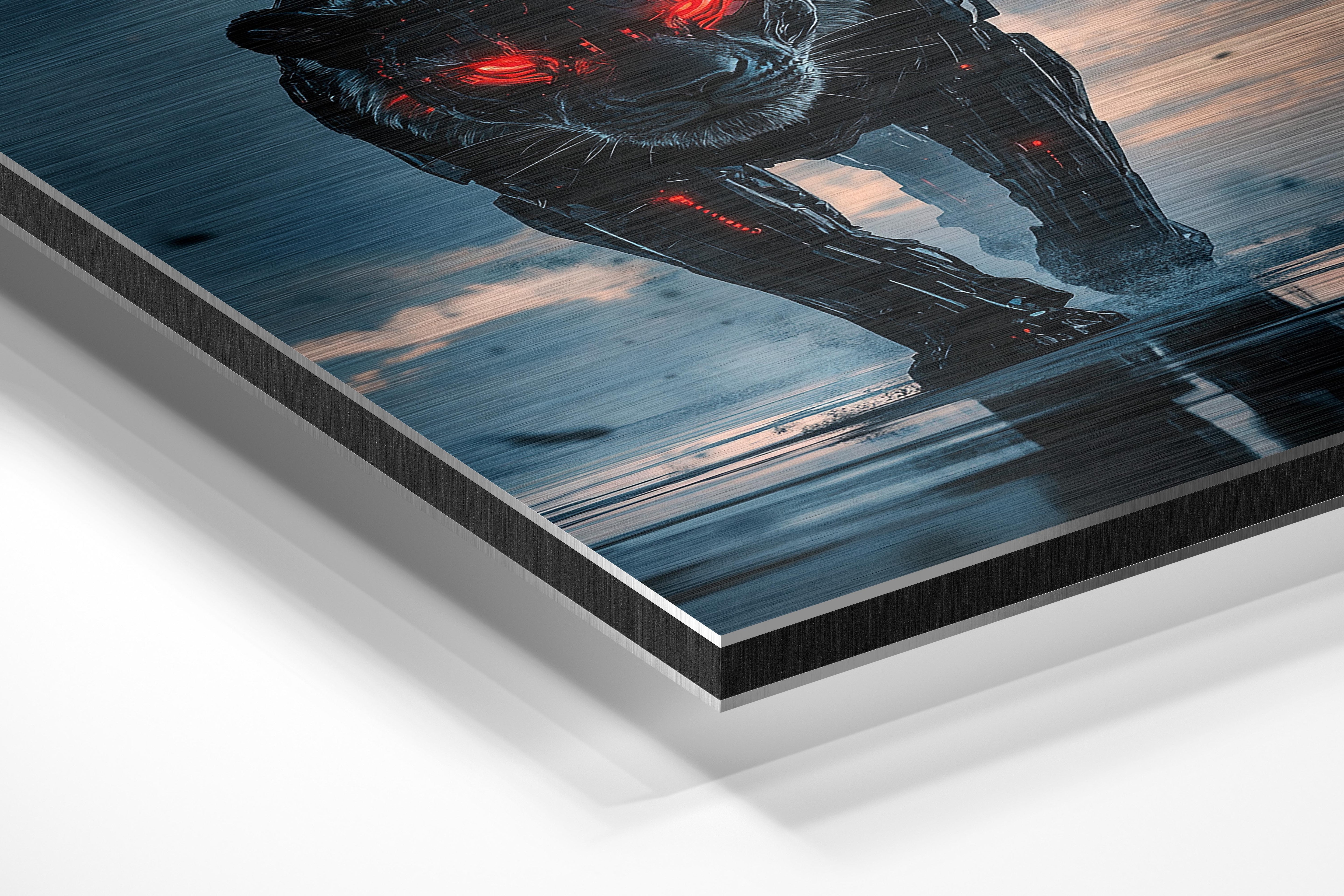 A sleek and powerful panther augmented with cutting-edge mechanical enhancements. This image captures the fusion of nature and technology, showcasing a futuristic vision of wildlife. The glowing red eyes and metallic features highlight its strength and adaptability, making it an excellent choice for sci-fi themes or creative projects. The reflective surface and dynamic posture add a sense of motion and intensity. Perfect for branding, speculative storytelling, or artistic explorations, this image invites viewers to consider the possibilities of technological evolution.
